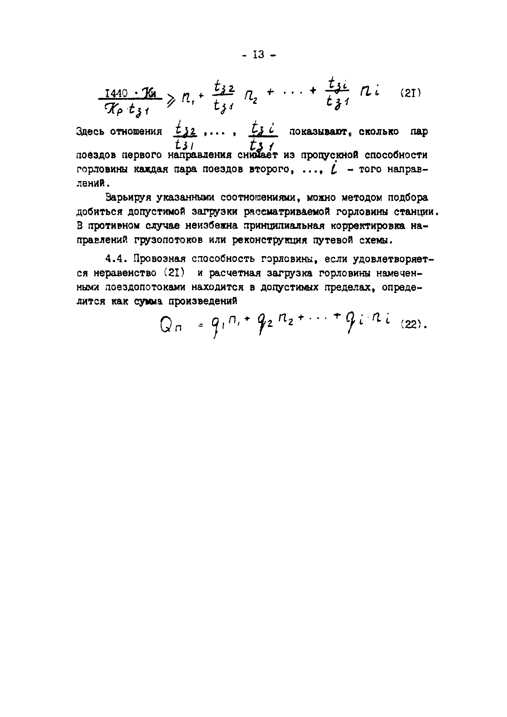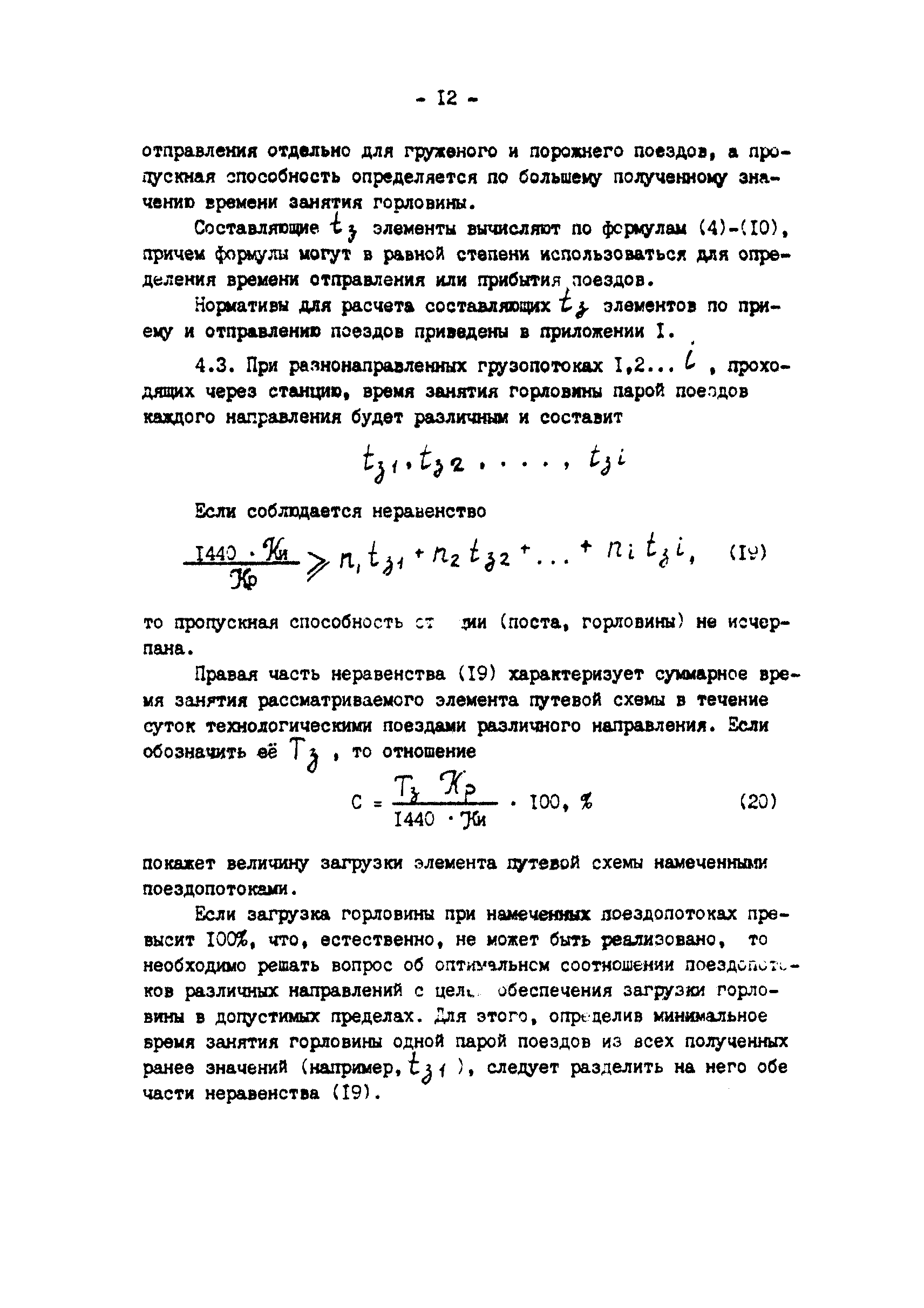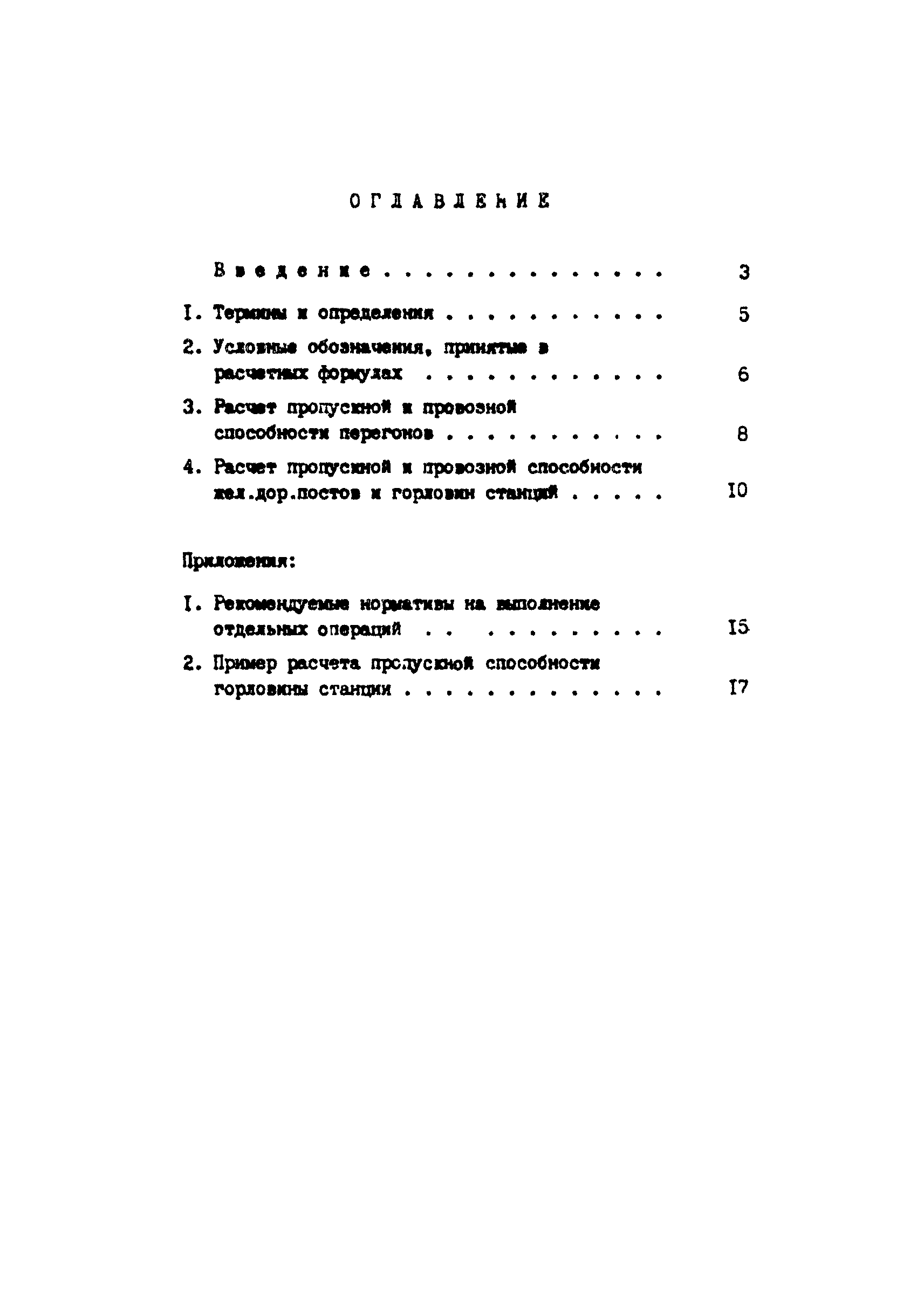 | Оглавление: | Введение 1. Термины и определения 2. Условные обозначения, принятые в расчетных формулах 3. Расчет пропускной и провозной способности перегонов 4. Расчет пропускной и провозной способности жел. дор. постов и горловин станций Приложение 1. Рекомендуемые нормативы на выполнение отдельных операций Приложение 2. Пример расчета пропускной способности горловины станции |
