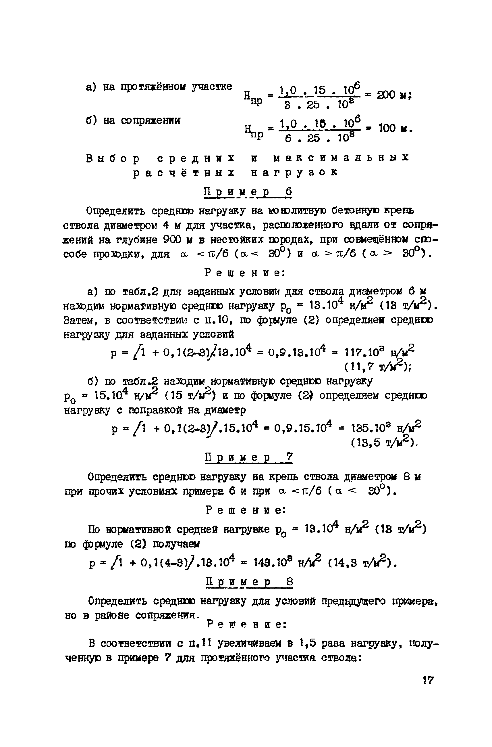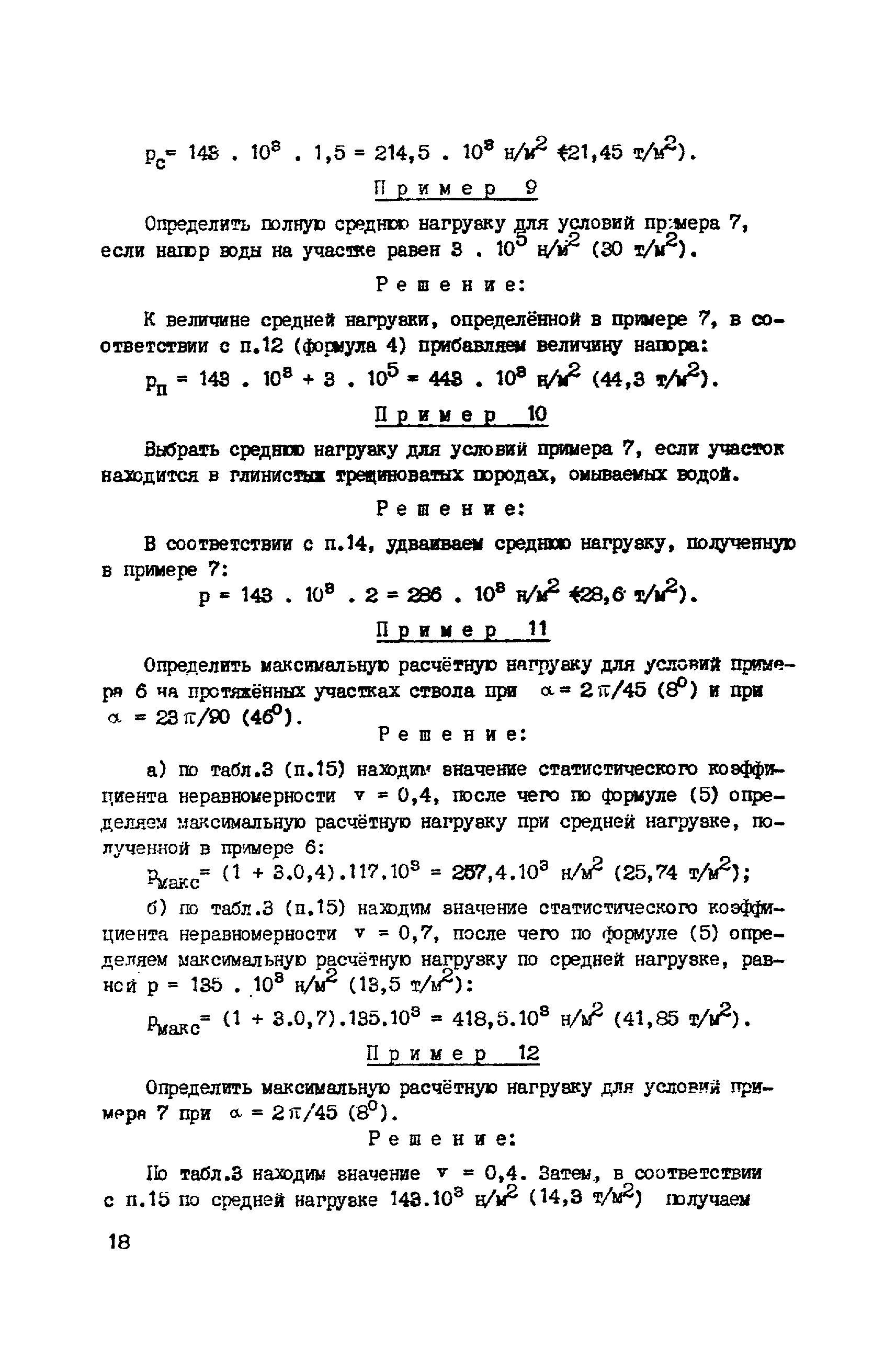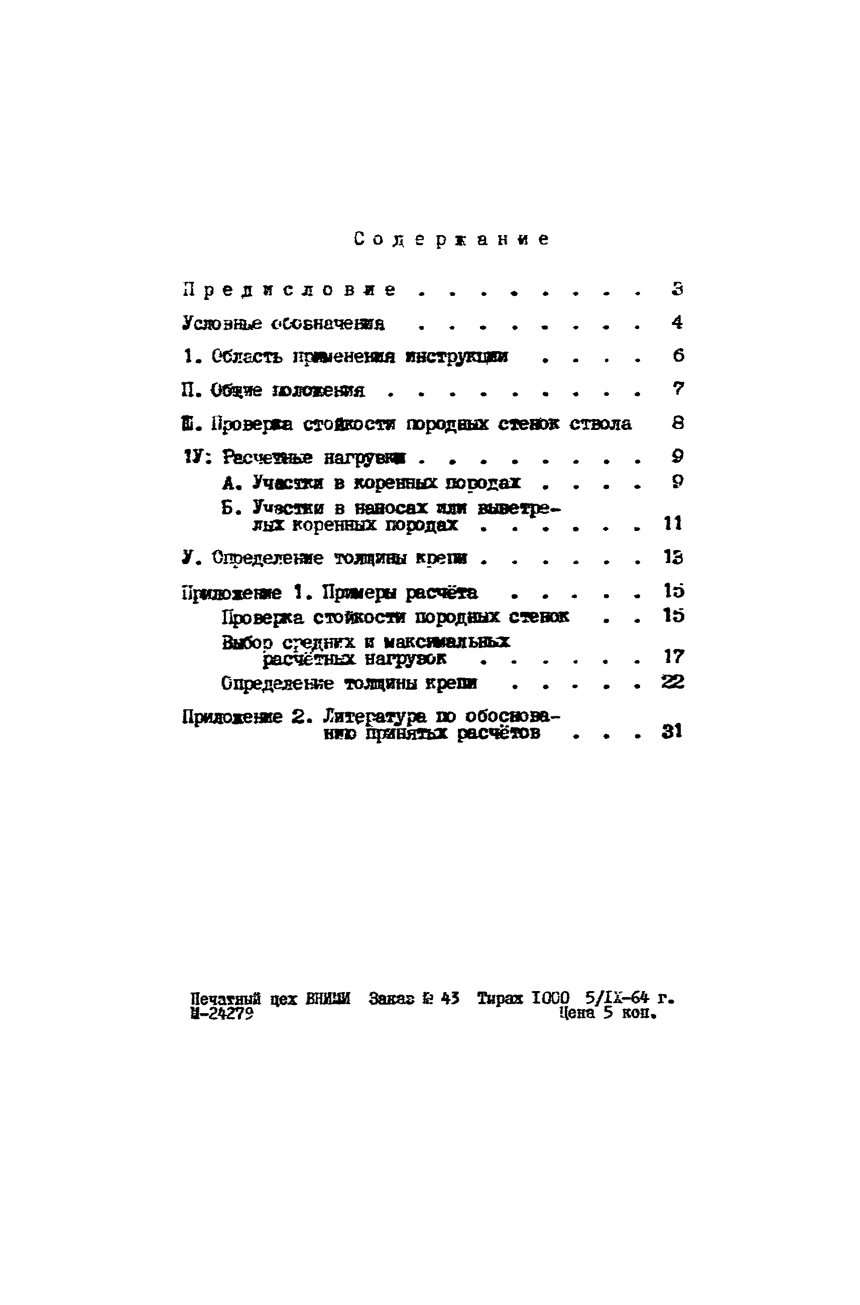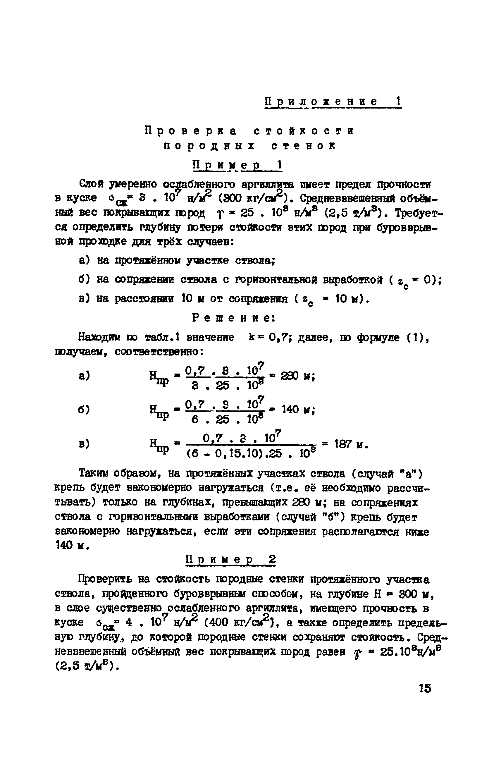 | Оглавление: | Условные обозначения I. Область применения II. Общие положения III. Проверка стойкости породных стенок ствола IV. Расчетные нагрузки А. Участки в коренных породах Б. Участки в наносах или выветнелых корневых породах V. Определение толщины крепи Приложение 1. Примеры расчёта Приложение 2. Литература по обоснованию принятых расчётов |