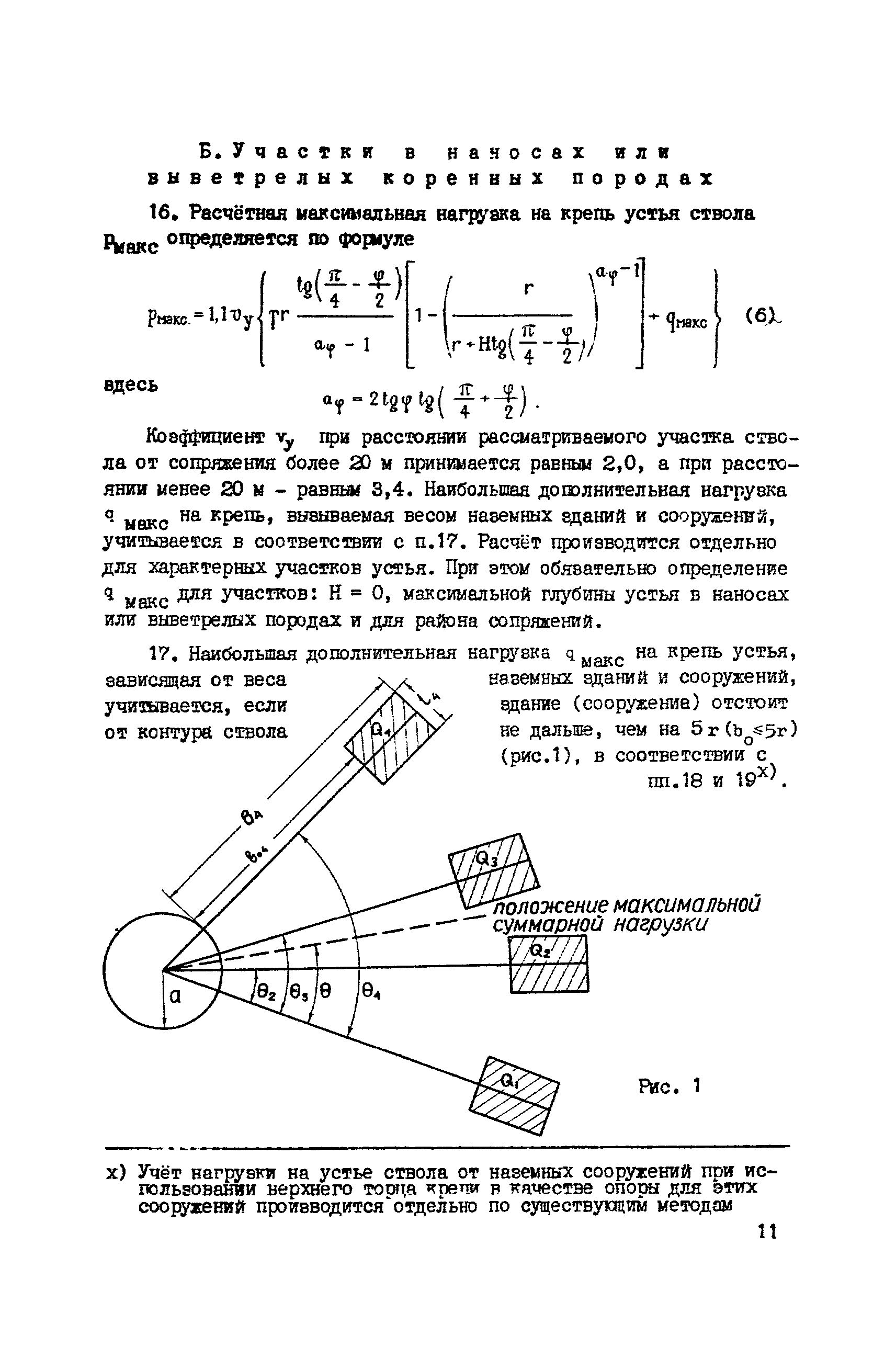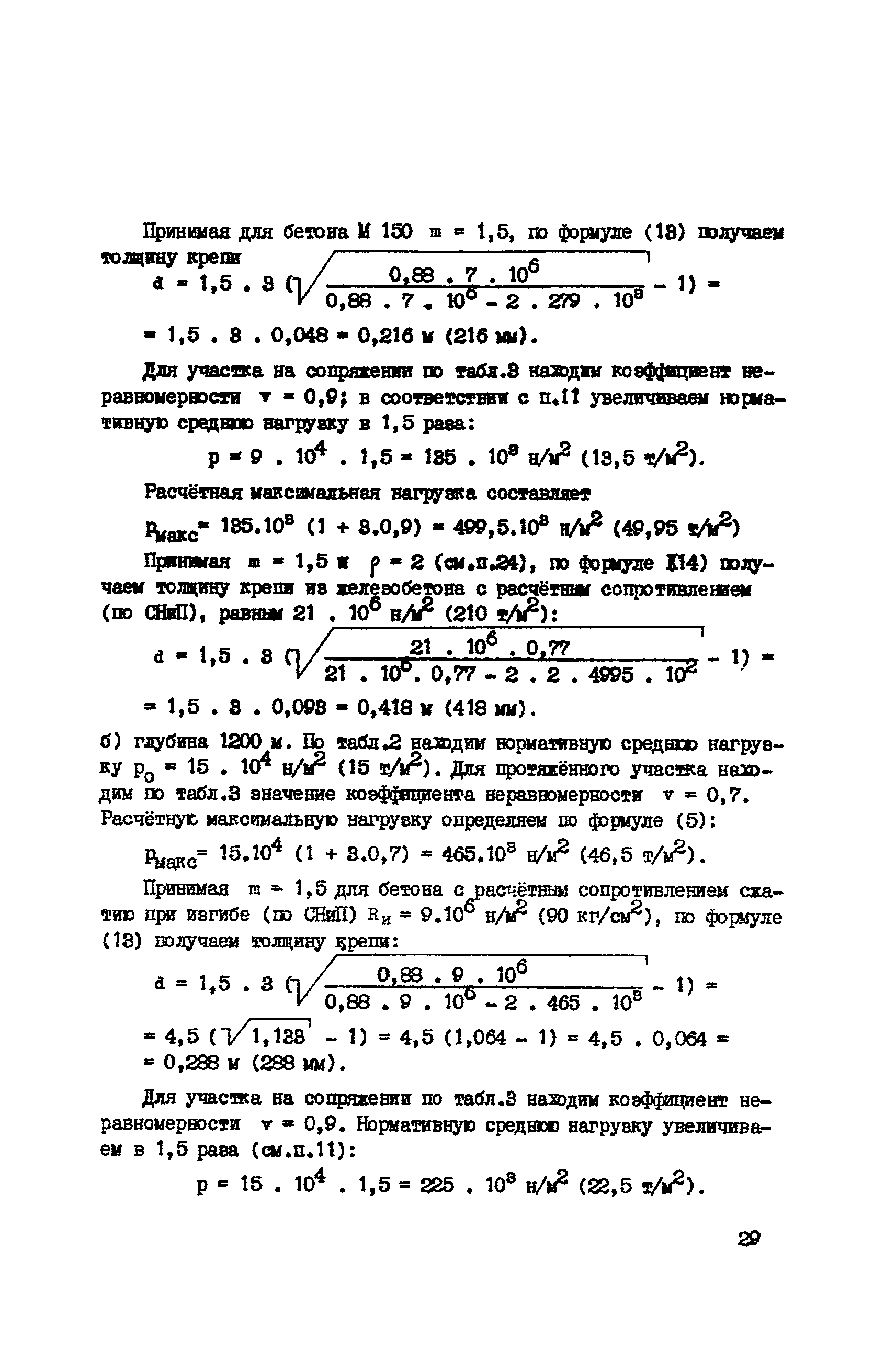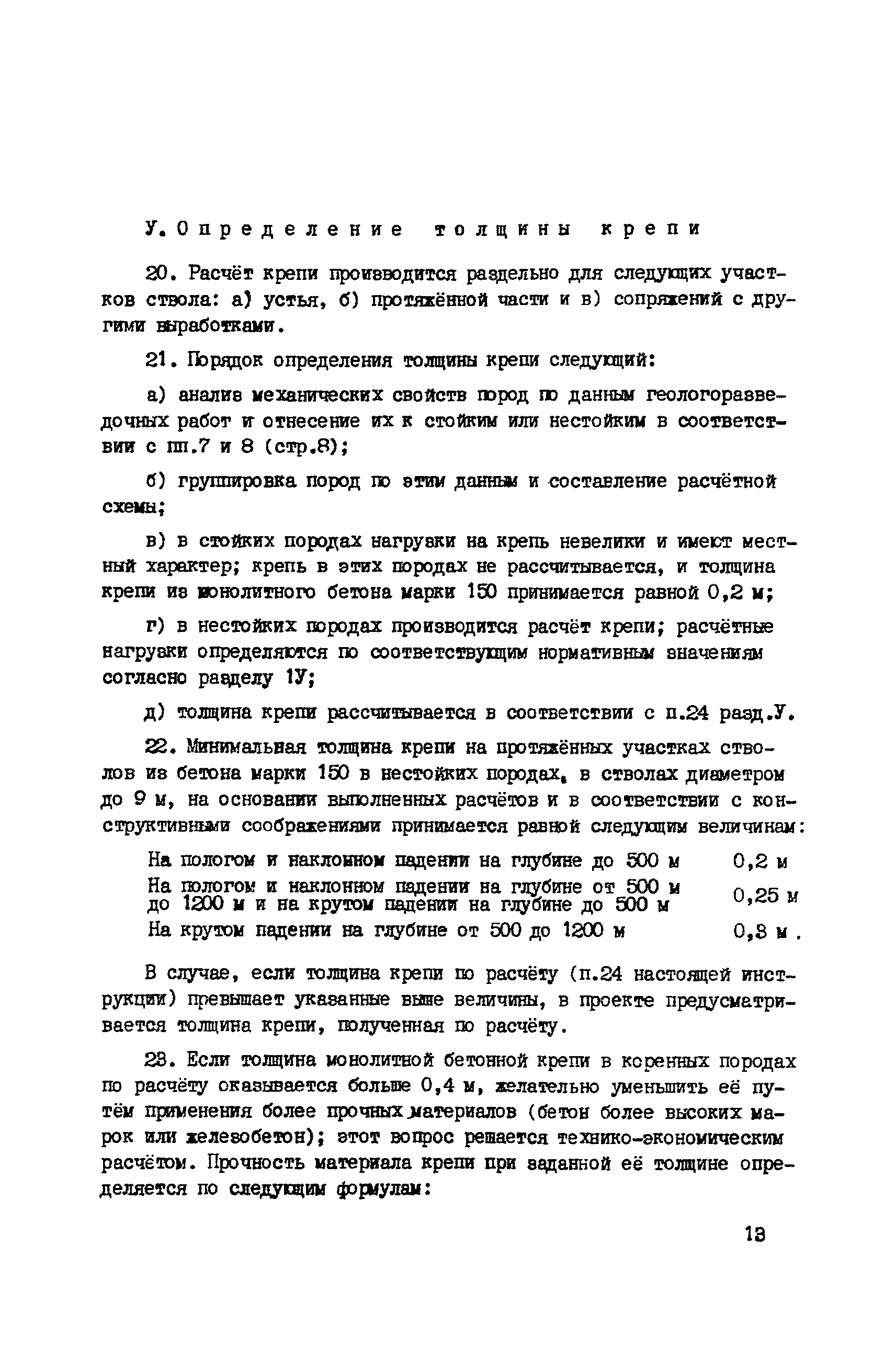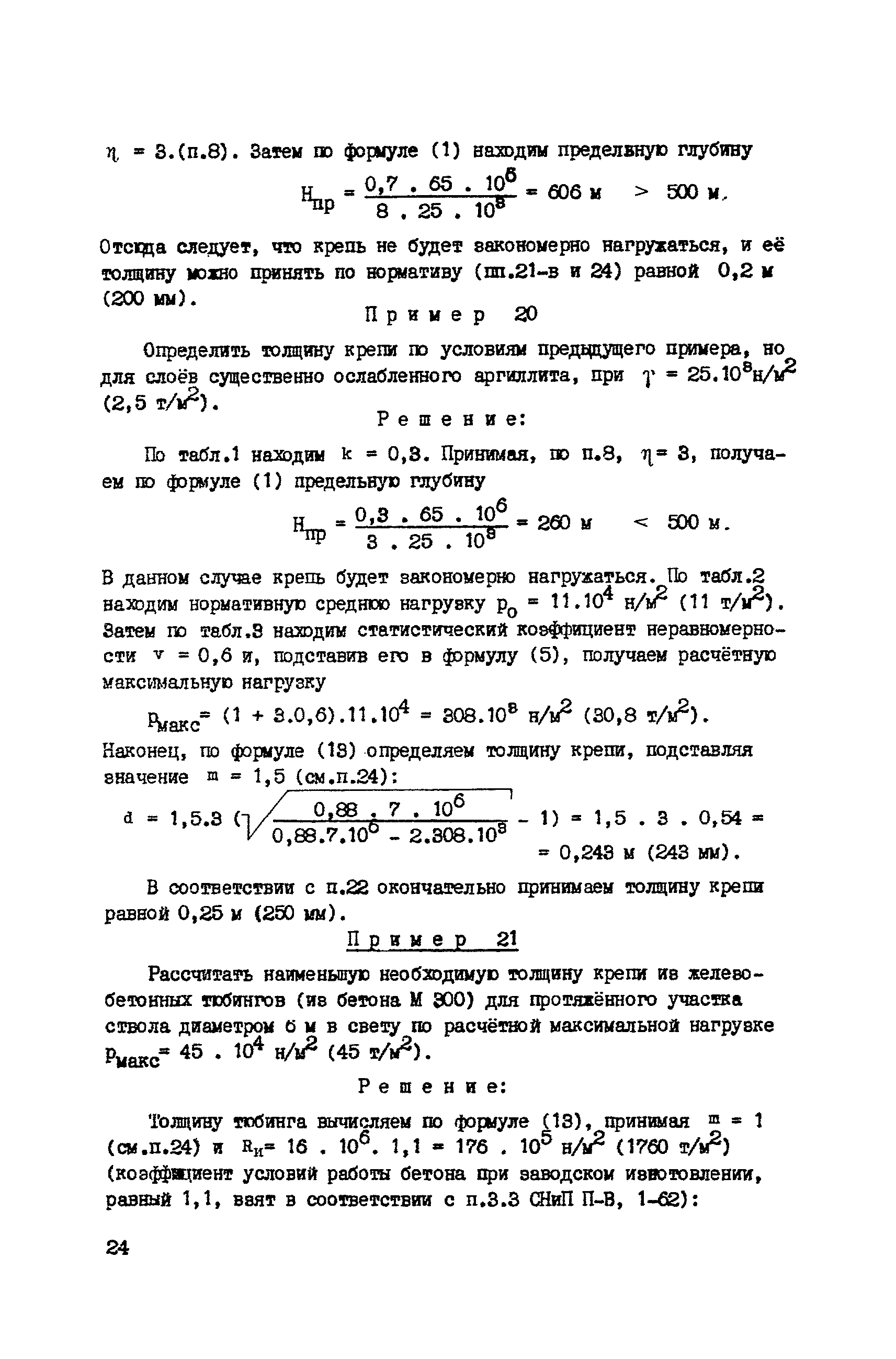 | Оглавление: | Условные обозначения I. Область применения II. Общие положения III. Проверка стойкости породных стенок ствола IV. Расчетные нагрузки А. Участки в коренных породах Б. Участки в наносах или выветнелых корневых породах V. Определение толщины крепи Приложение 1. Примеры расчёта Приложение 2. Литература по обоснованию принятых расчётов |