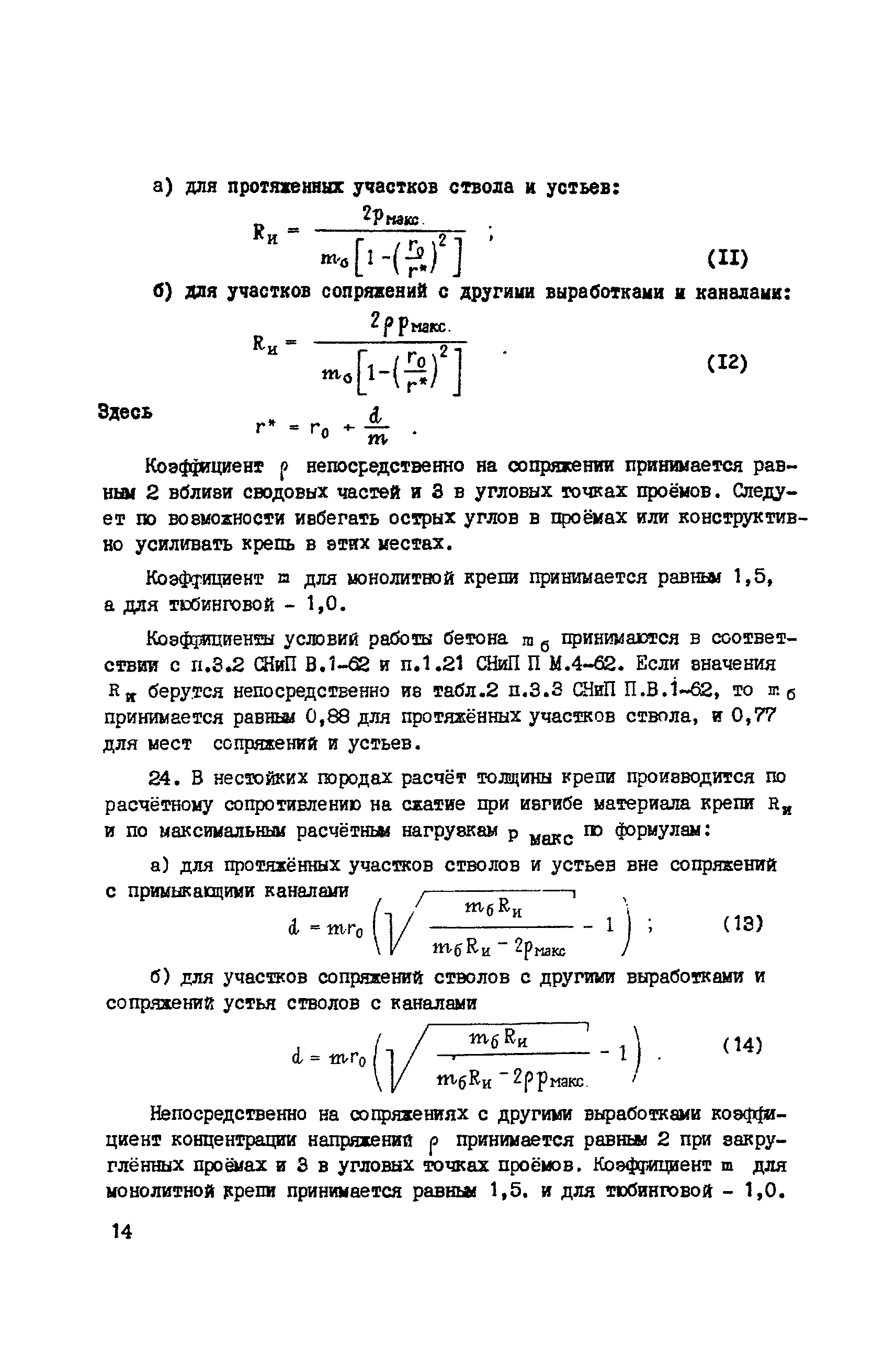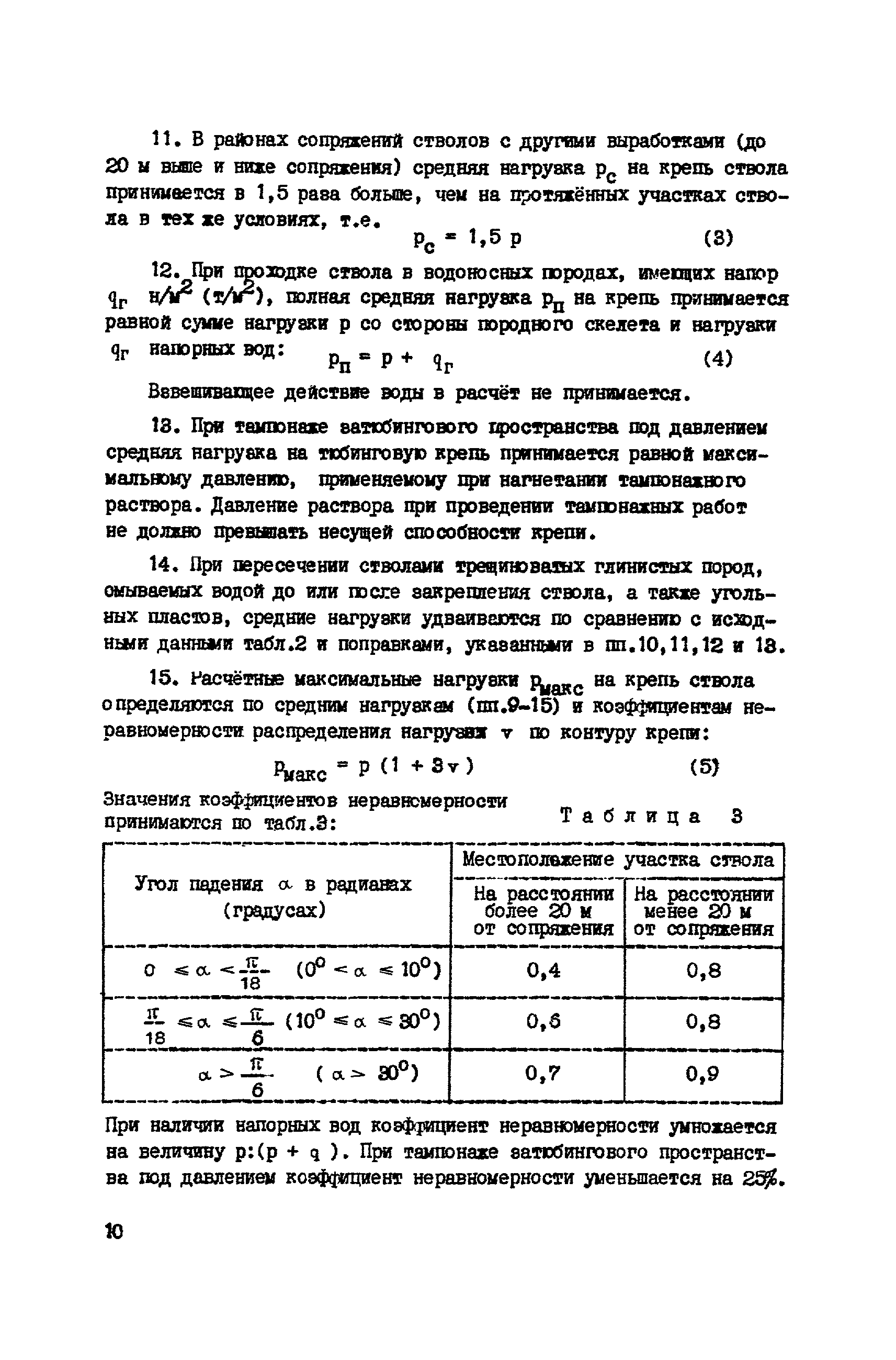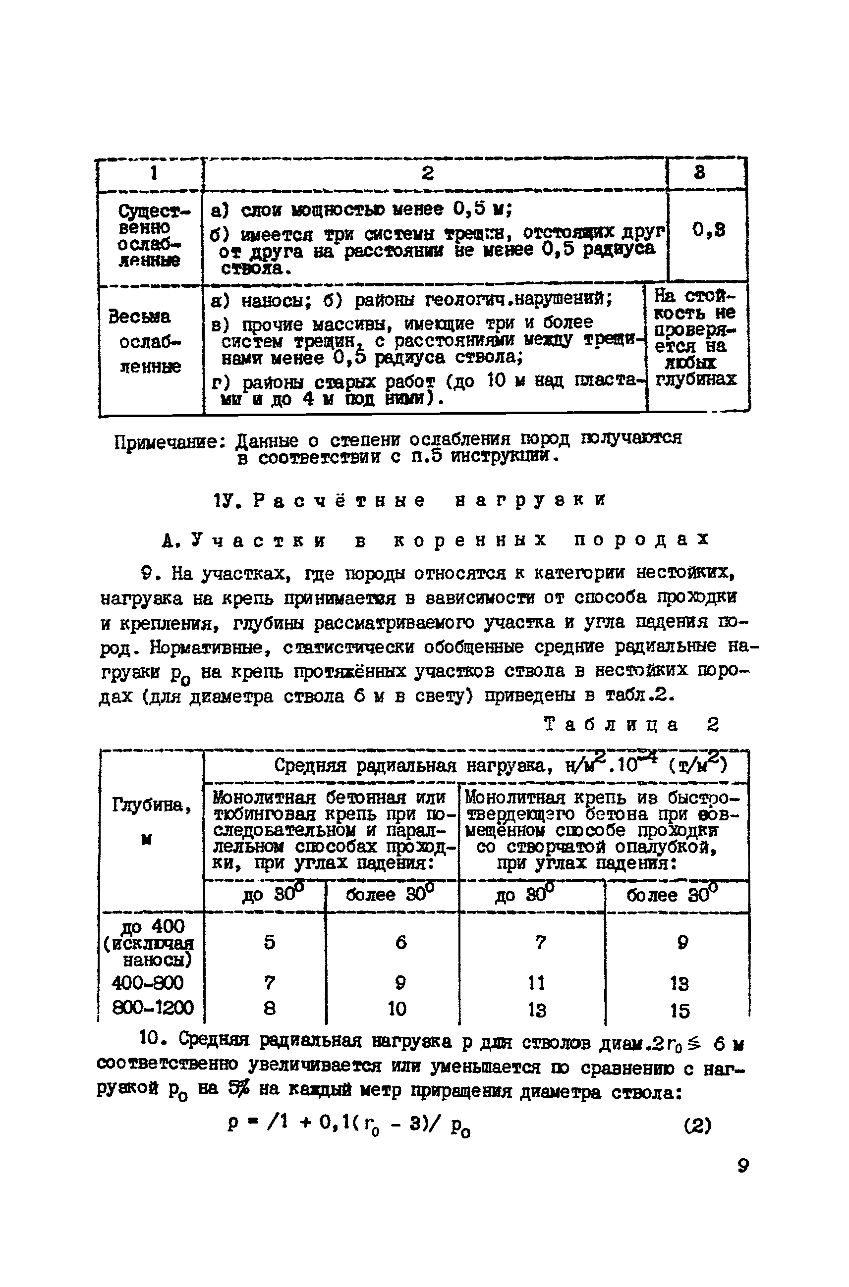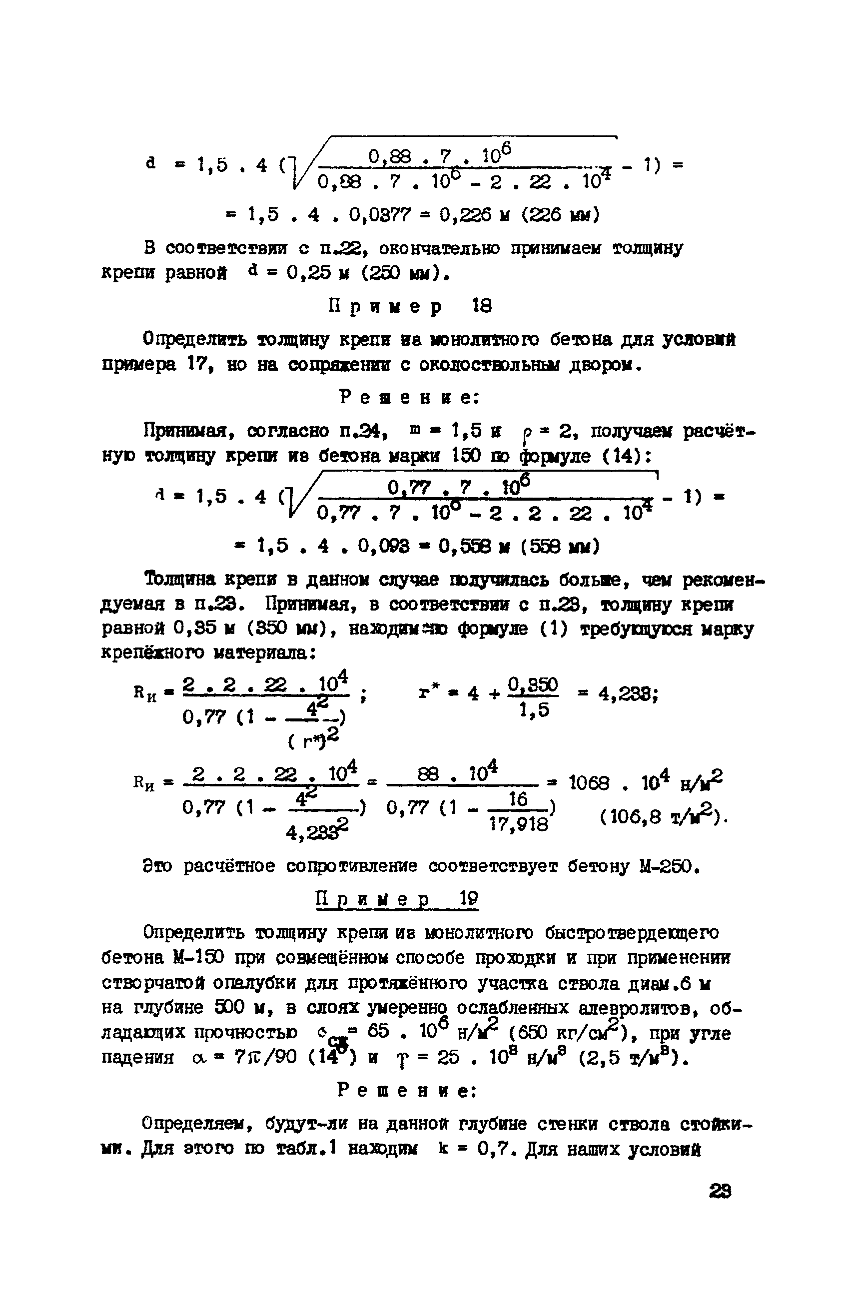 | Оглавление: | Условные обозначения I. Область применения II. Общие положения III. Проверка стойкости породных стенок ствола IV. Расчетные нагрузки А. Участки в коренных породах Б. Участки в наносах или выветнелых корневых породах V. Определение толщины крепи Приложение 1. Примеры расчёта Приложение 2. Литература по обоснованию принятых расчётов |