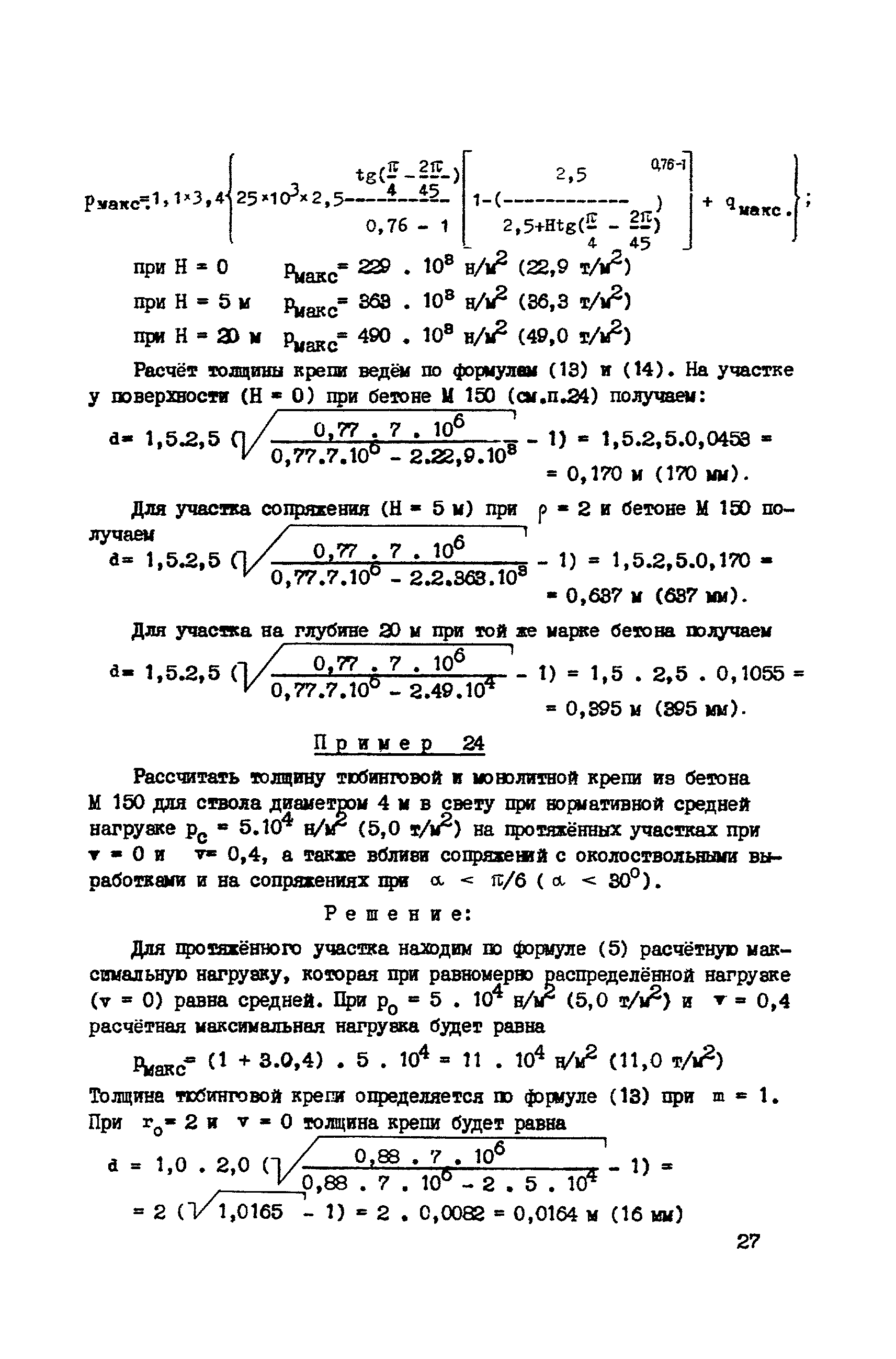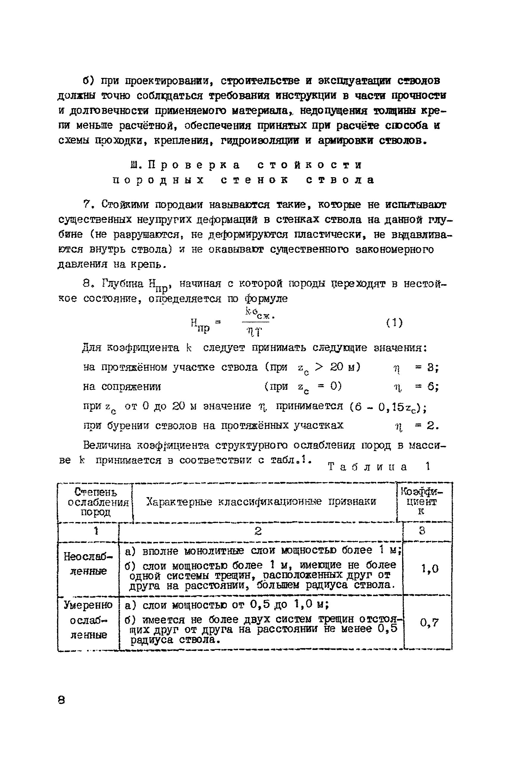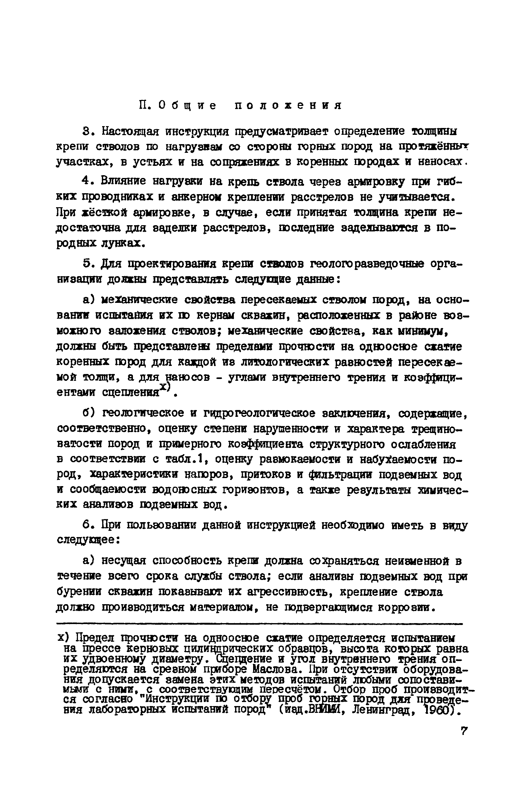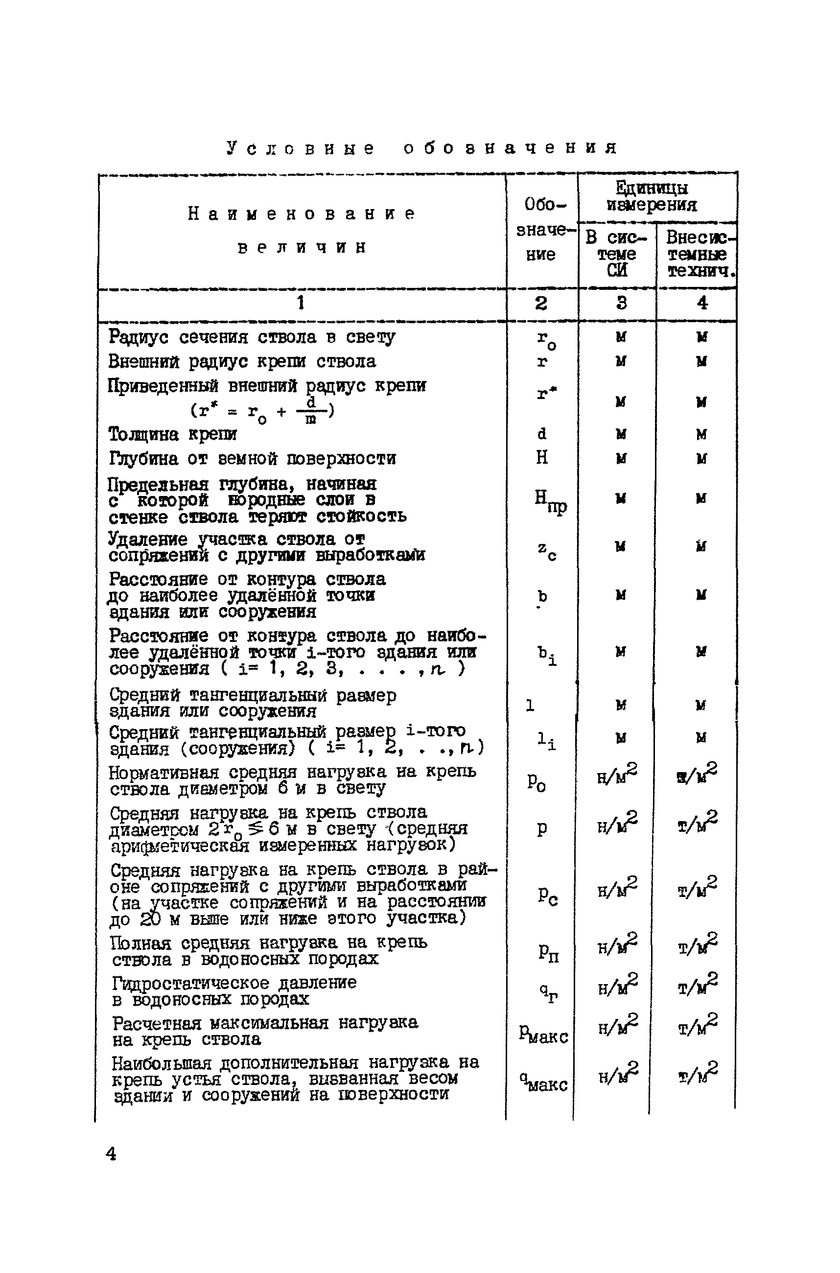 | Оглавление: | Условные обозначения I. Область применения II. Общие положения III. Проверка стойкости породных стенок ствола IV. Расчетные нагрузки А. Участки в коренных породах Б. Участки в наносах или выветнелых корневых породах V. Определение толщины крепи Приложение 1. Примеры расчёта Приложение 2. Литература по обоснованию принятых расчётов |