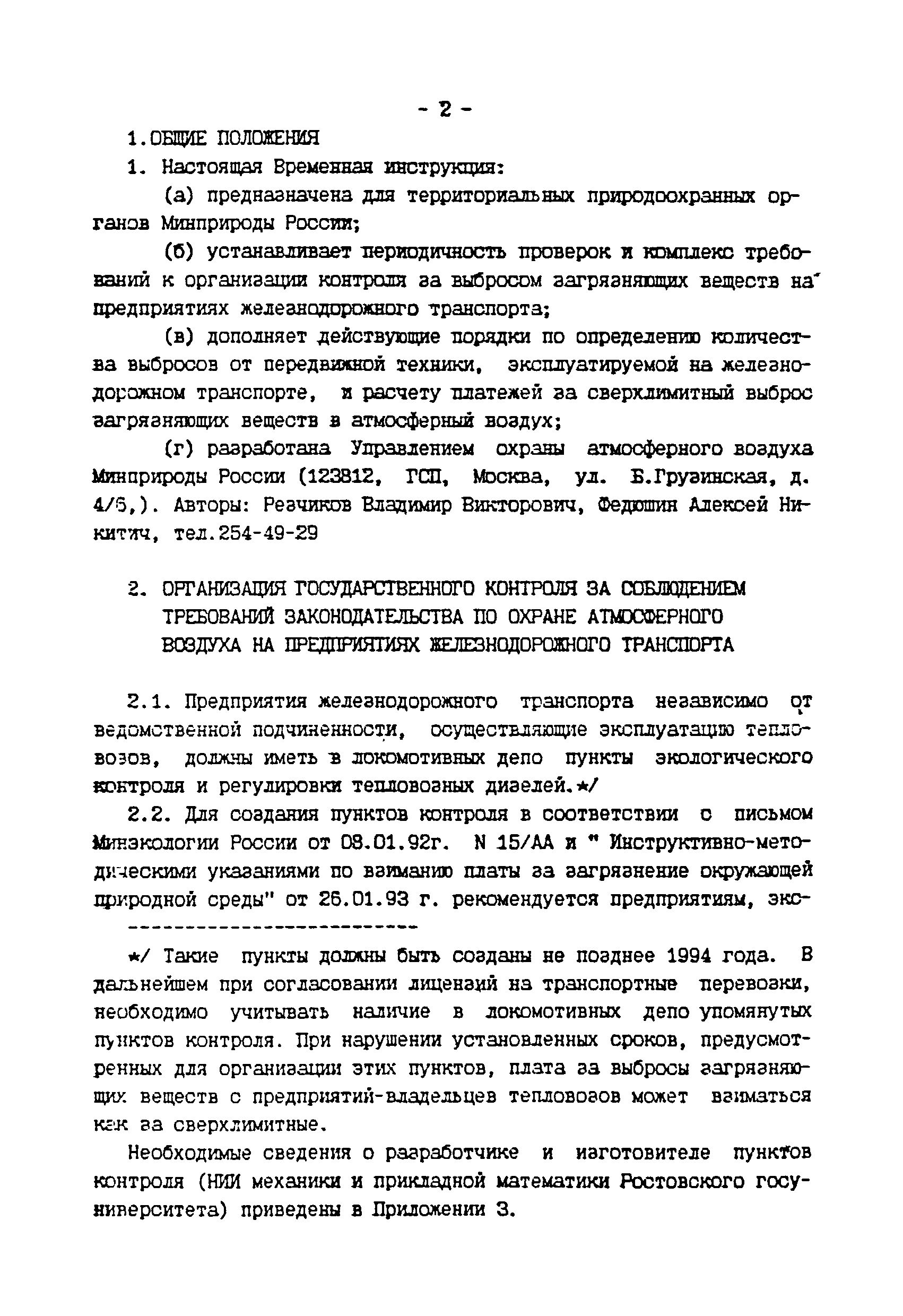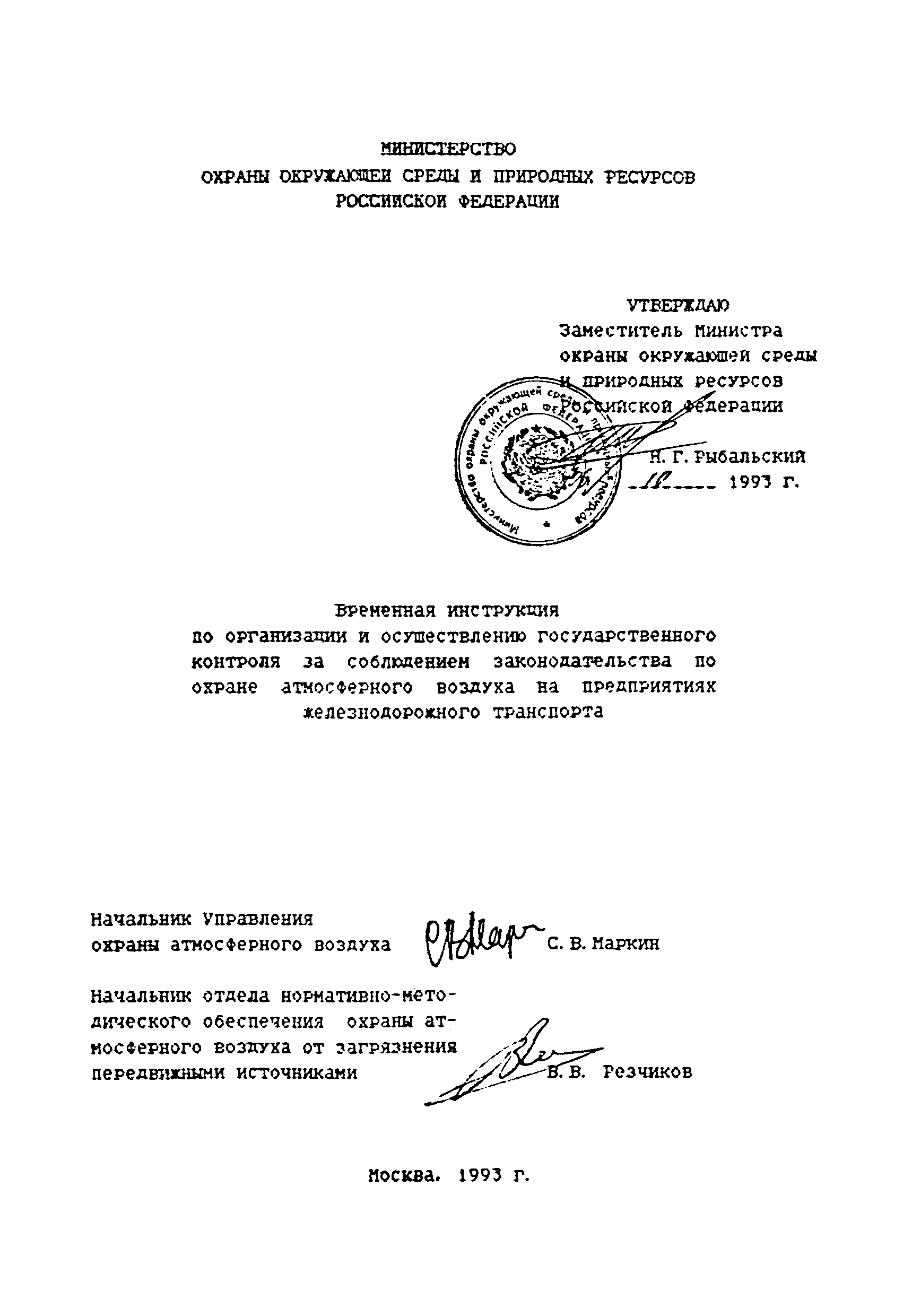 | Название рус.: | Временная инструкция по организации и осуществлению государственного контроля за соблюдением законодательства по охране атмосферного воздуха на предприятиях железнодорожного транспорта |