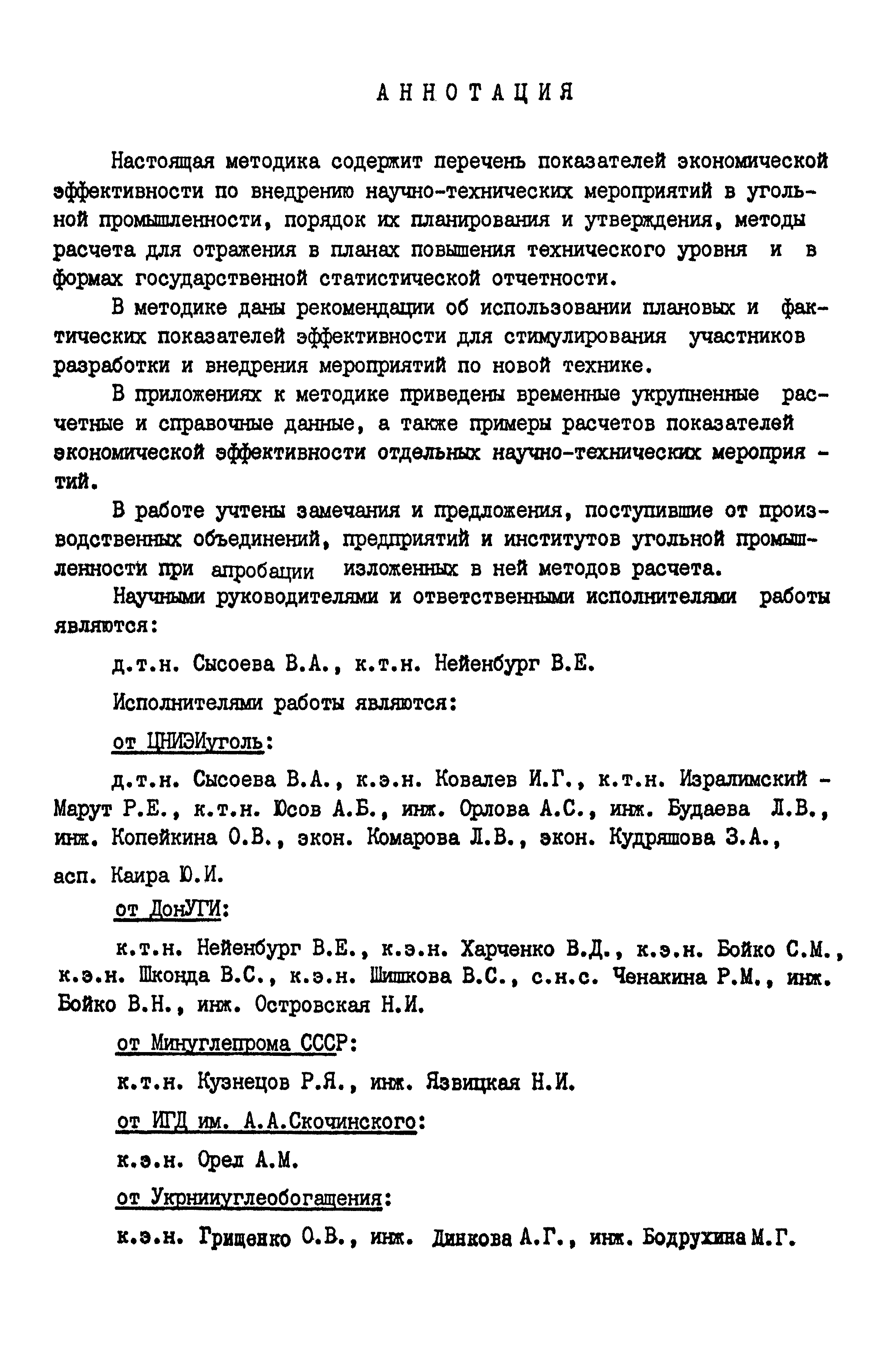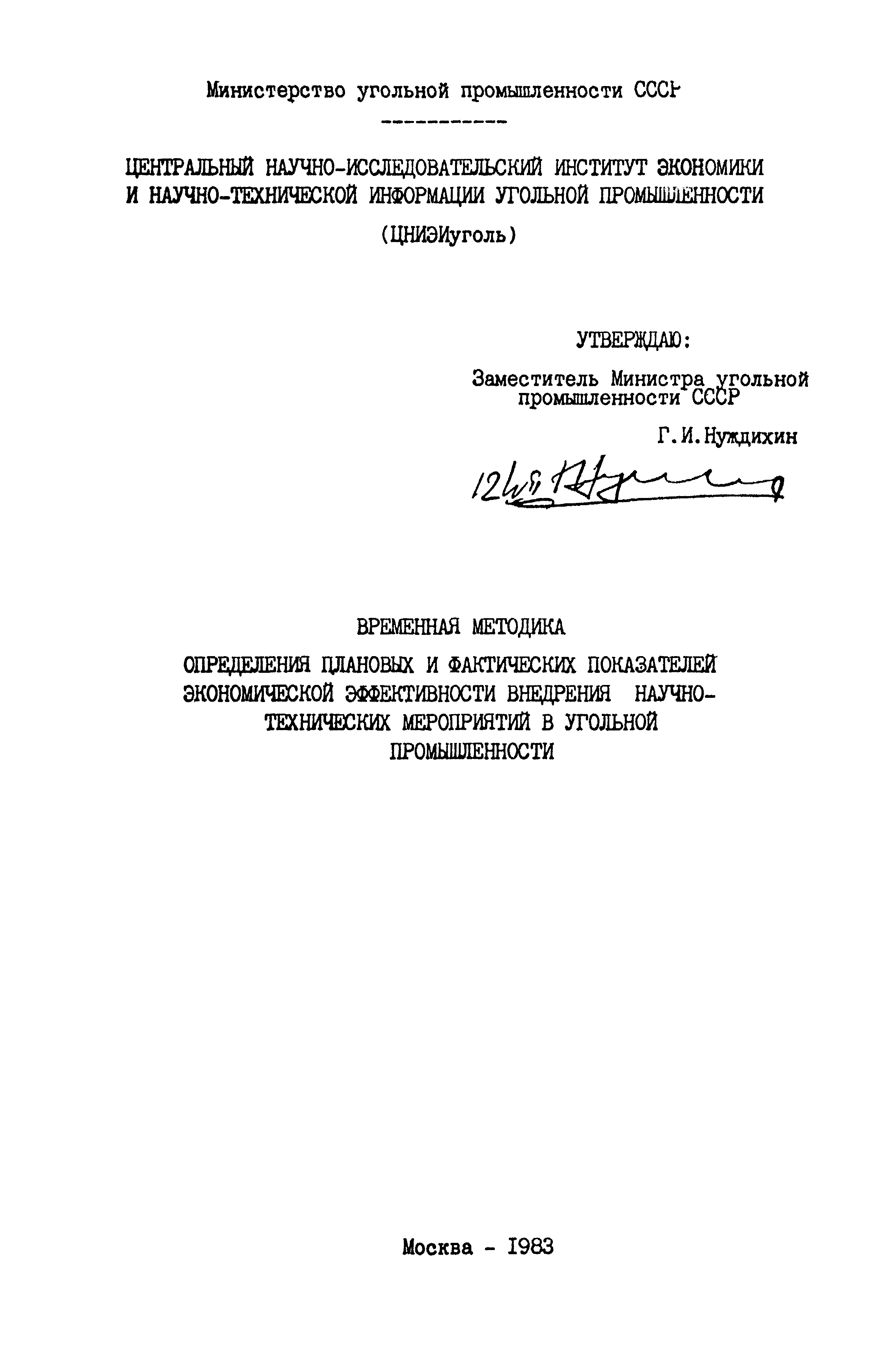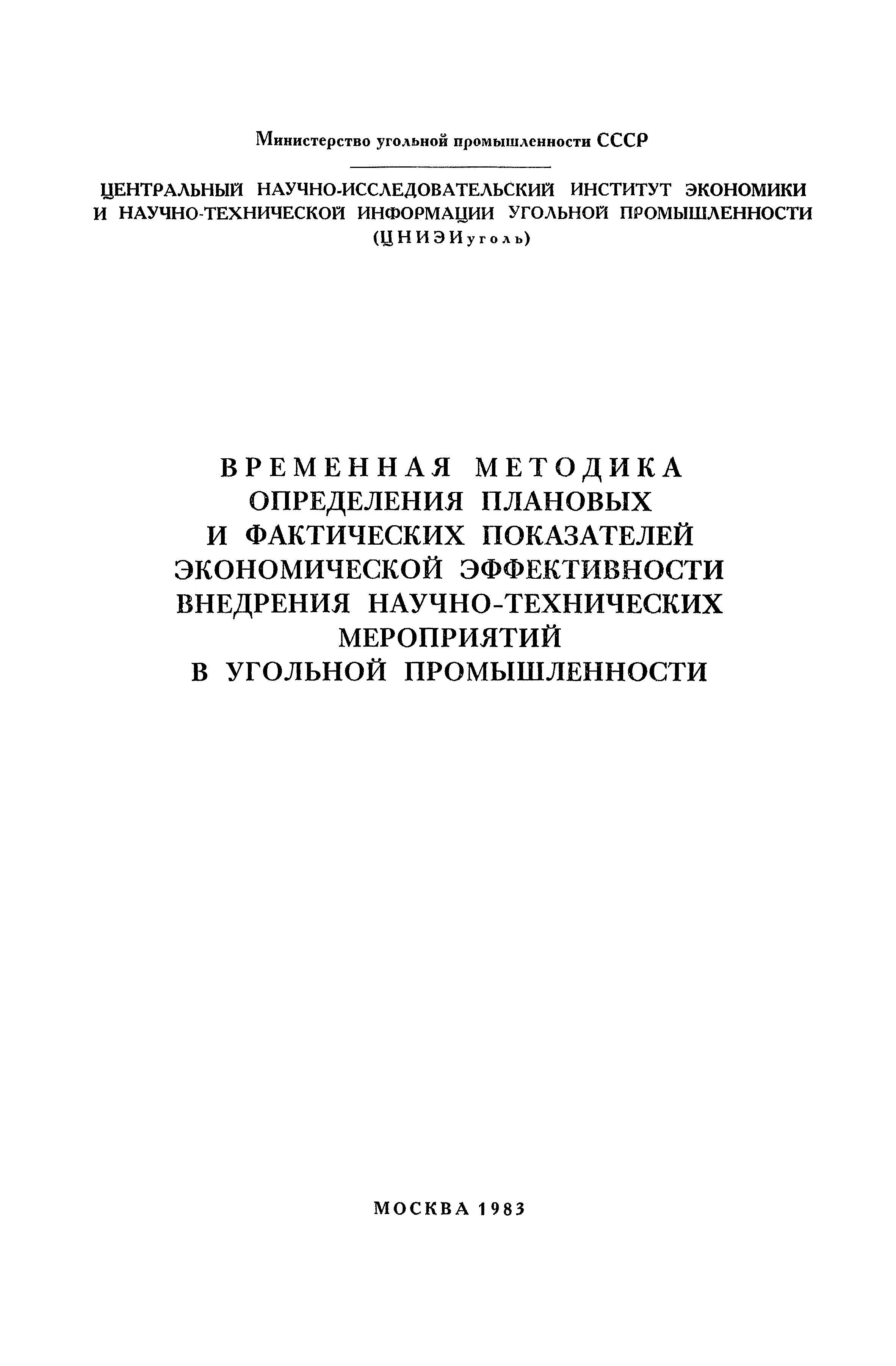 | Название рус.: | Временная методика определения плановых и фактических показателей экономической эффективности внедрения научно-технических мероприятий в угольной промышленности |