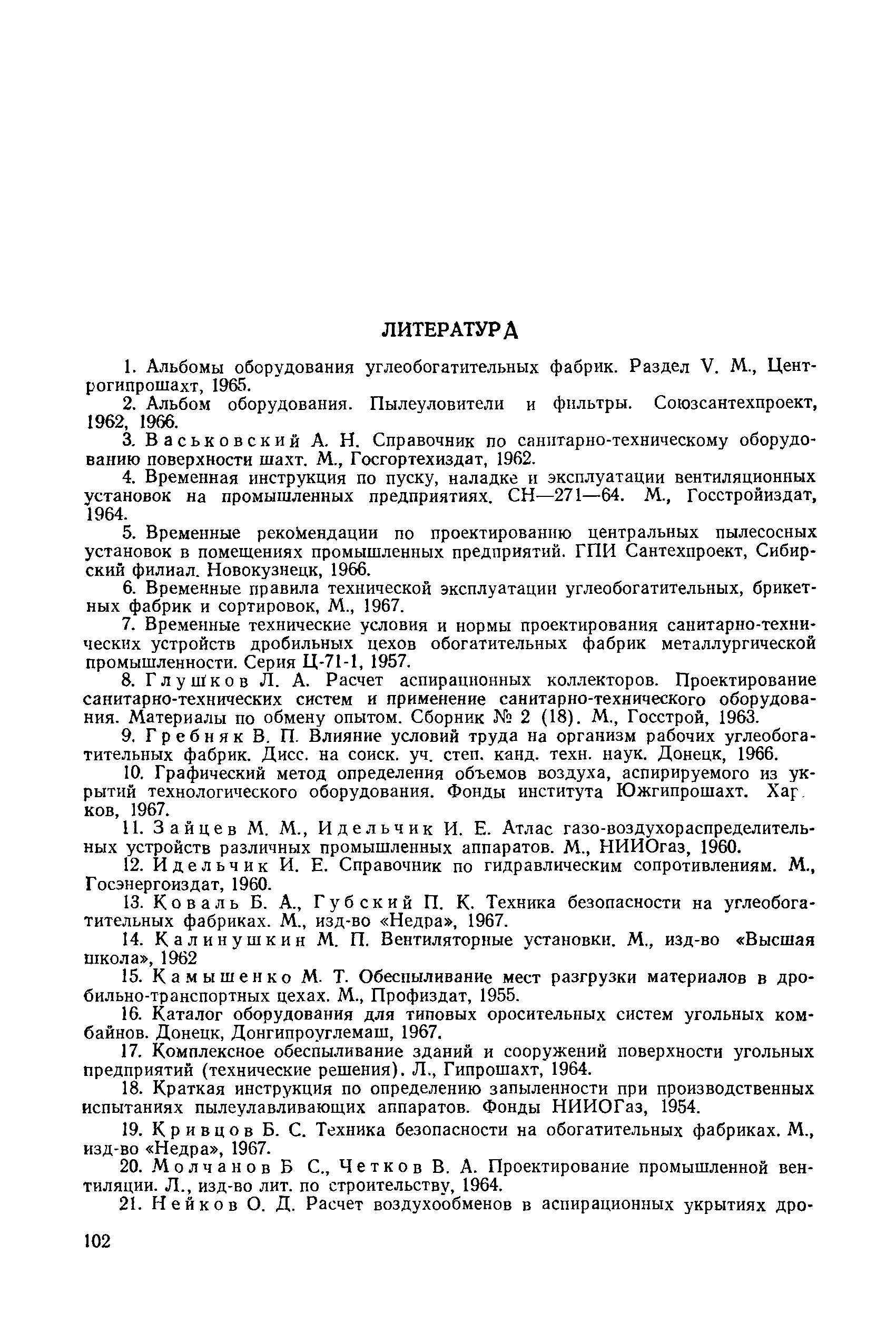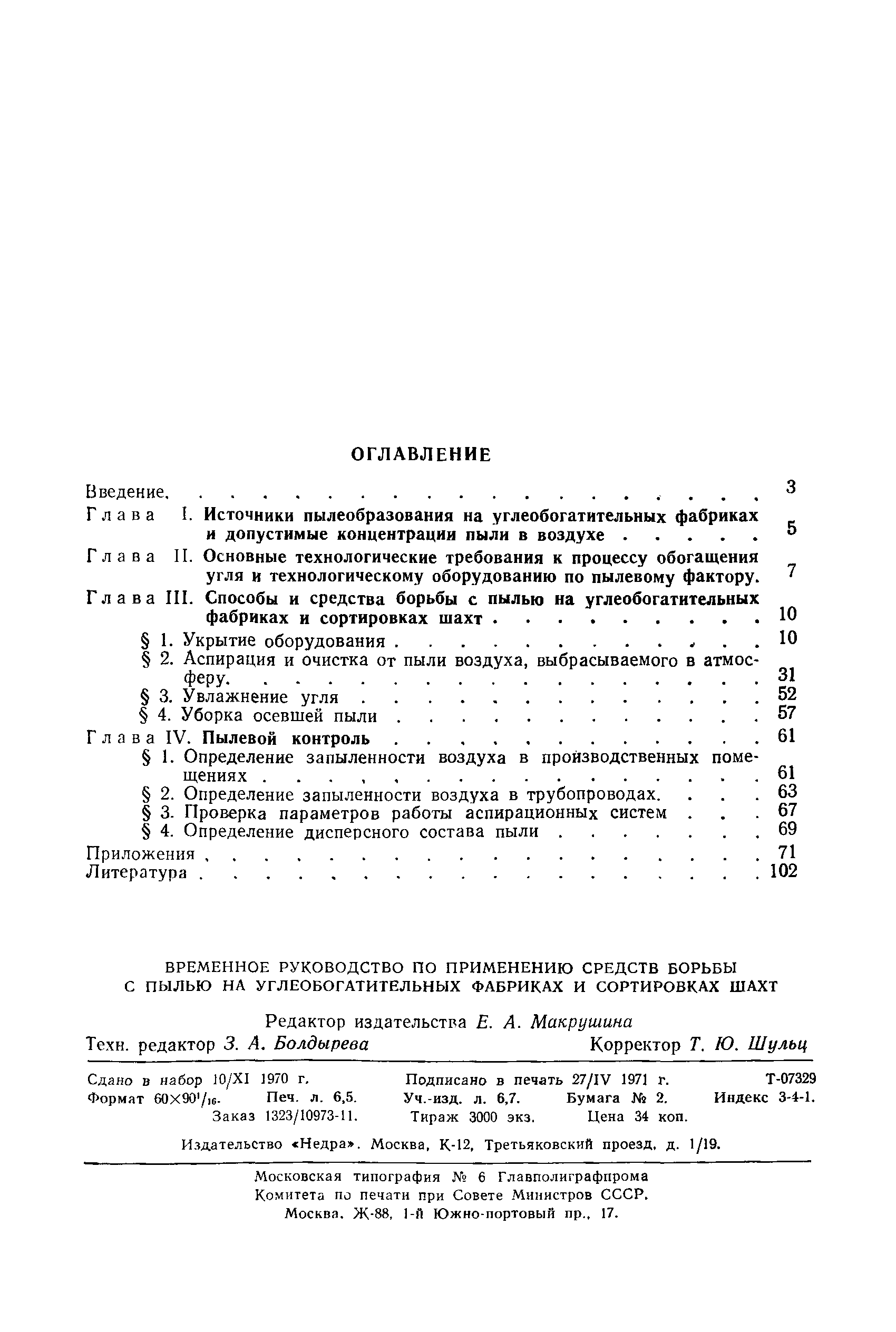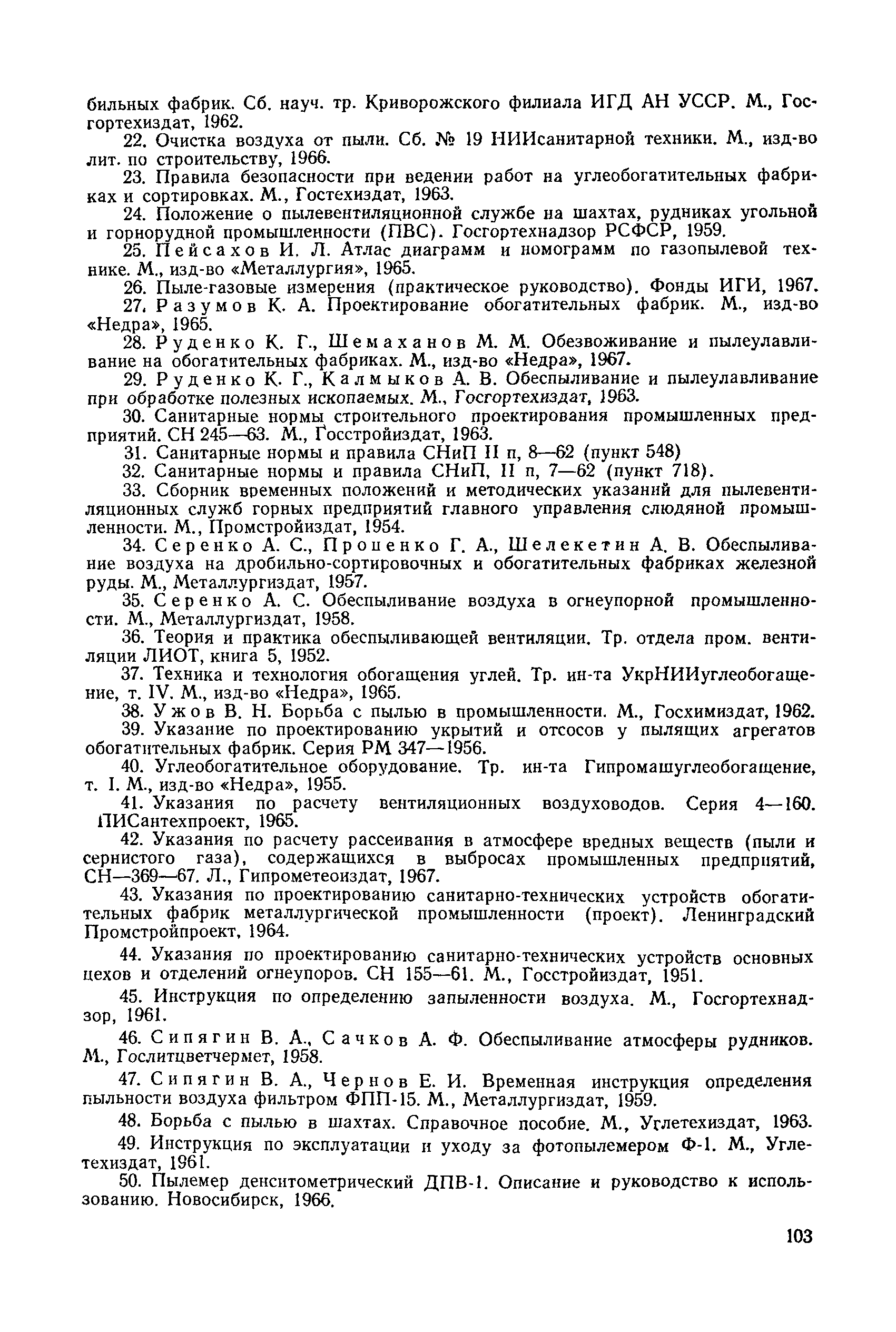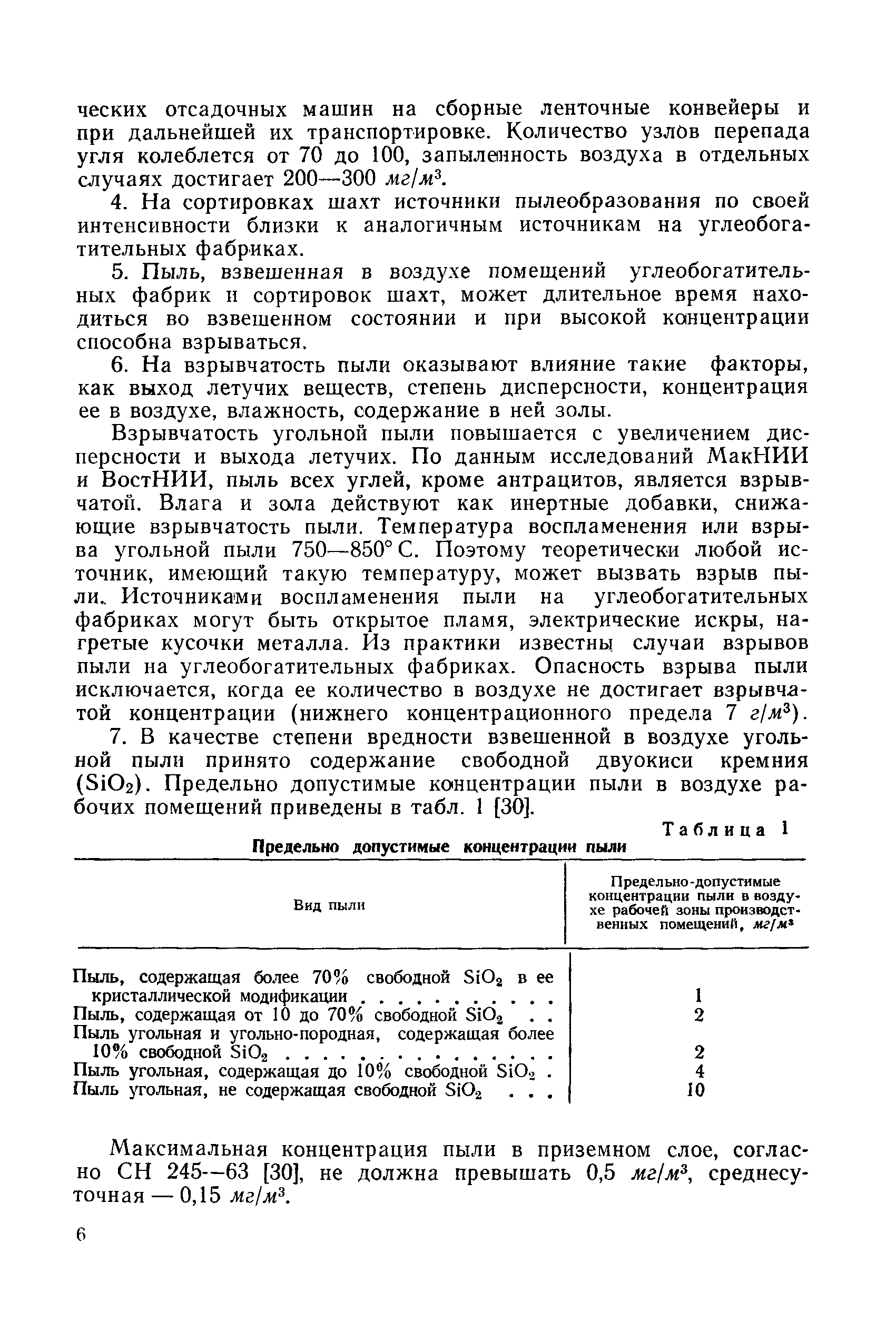 | Оглавление: | Введение Глава I. Источники пылеобразования на углеобогатительных фабриках и допустимые концентрации пыли в воздухе Глава II. Основные технологические требования к процессу обогащения угля и технологическому оборудованию по пылевому фактору Глава III. Способы и средства борьбы с пылью на углеобогатительных фабриках и сортировка шахт 1. Укрытие оборудования 2. Аспирация и очистка от пыли воздуха, выбрасываемого в атмосферу 3. Увлажнение угля 4. Уборка осевшей пыли Глава IV. Пылевой контроль 1. Определение запыленности воздуха в производственных помещениях 2. Определение запыленности воздуха в трубопроводах 3. Проверка параметров работы аспирационных систем 4. Определение дисперсного состава пыли Приложение I. Устройства для предотвращения пыления (желоб с диффузором) Приложение II. Расчет объемов аспирации по методике, разработанной лабораторией охраны труда Приложение III. Ориентировочные величины площадей неплотностей Приложение IV. Основные технические данные рекомендуемых пылеуловителей Приложение V. Краткая методика отбора проб воздуха на запыленность в помещении с помощью фильтров АВА-В-18 Приложение VI. Краткая методика отбора проб воздуха на запыленность в трубопроводах Литература |