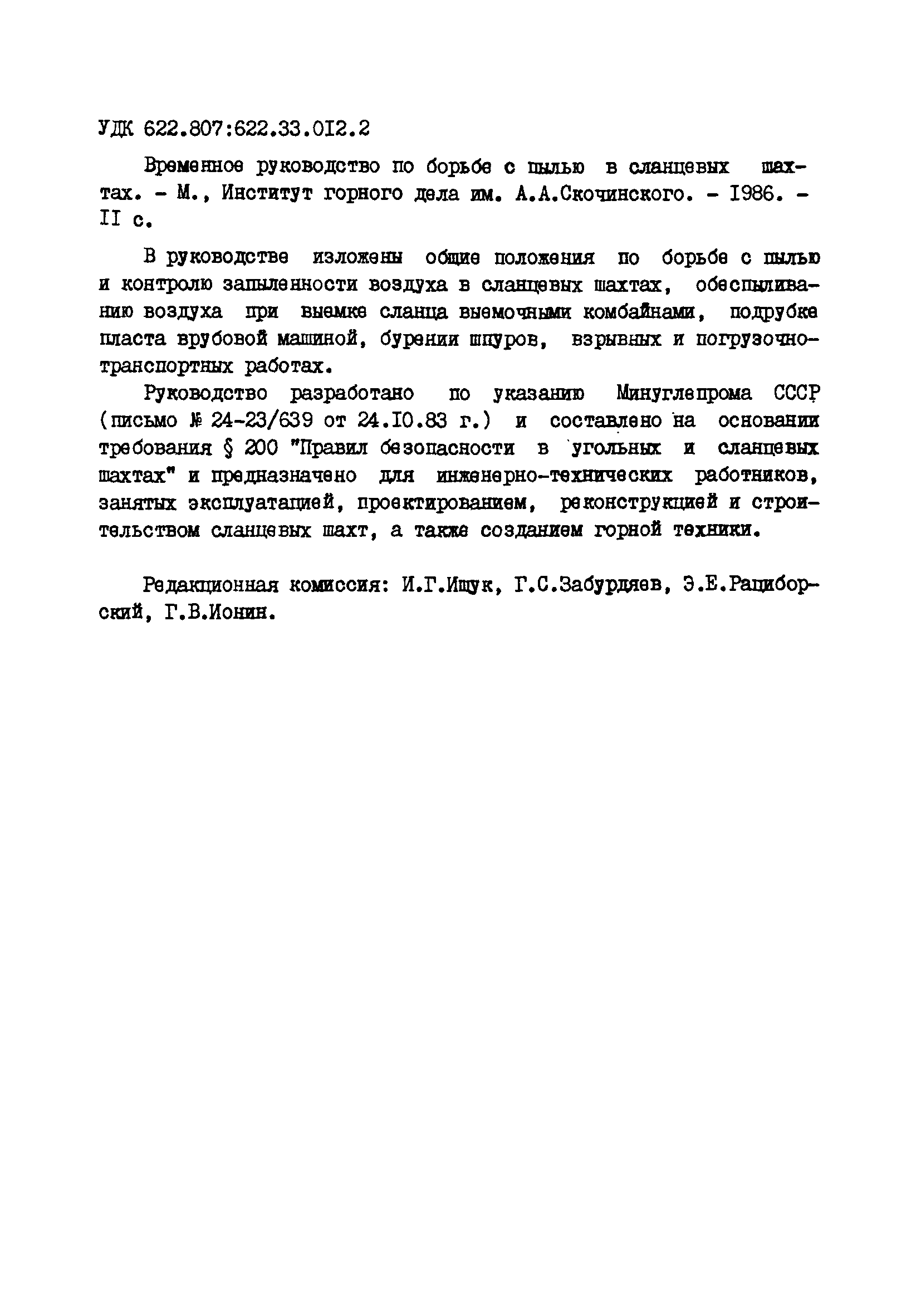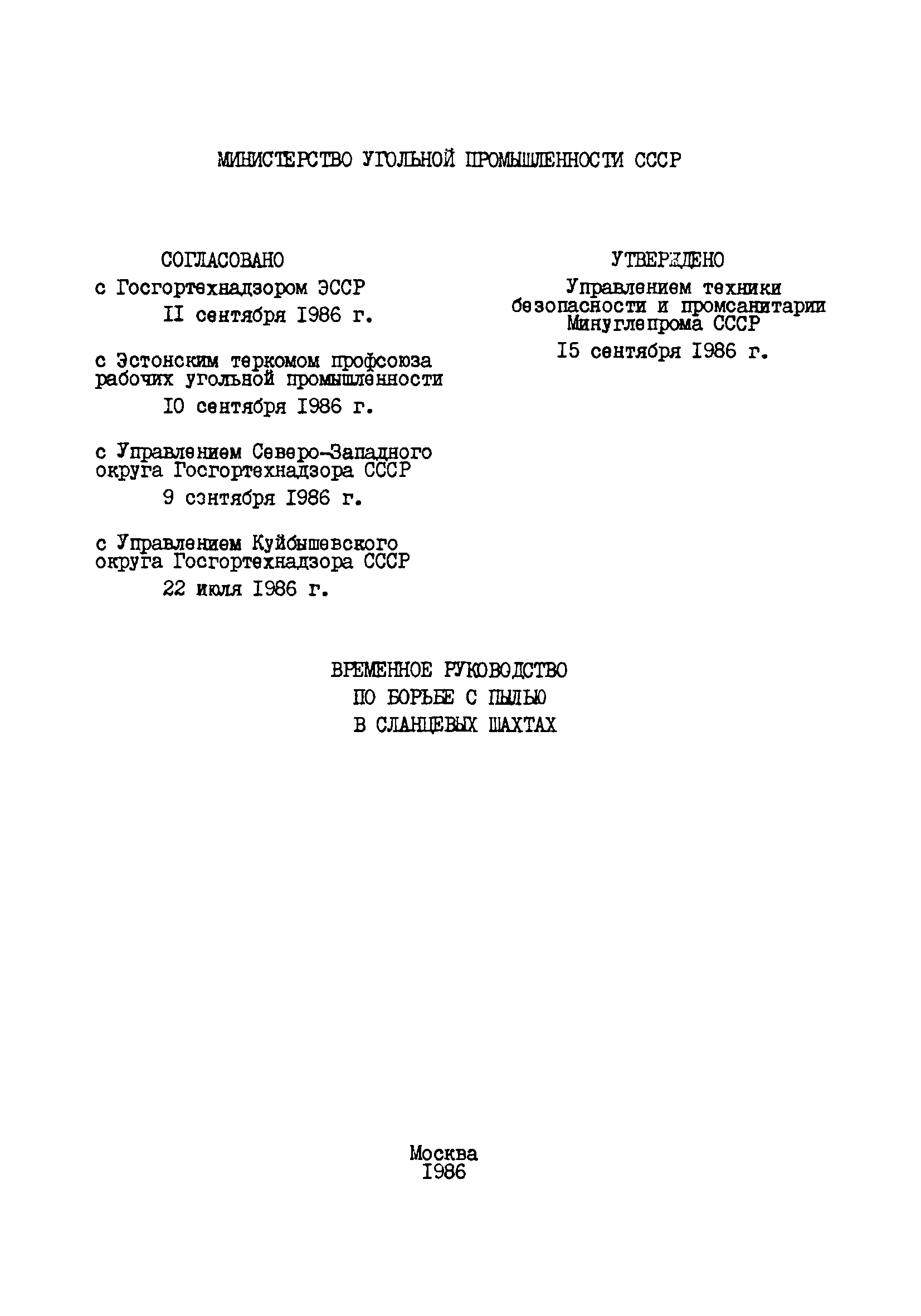 | Утверждён: | 15.09.1986 Управление техники безопасности и промсанитарии Минуглепрома СССР
