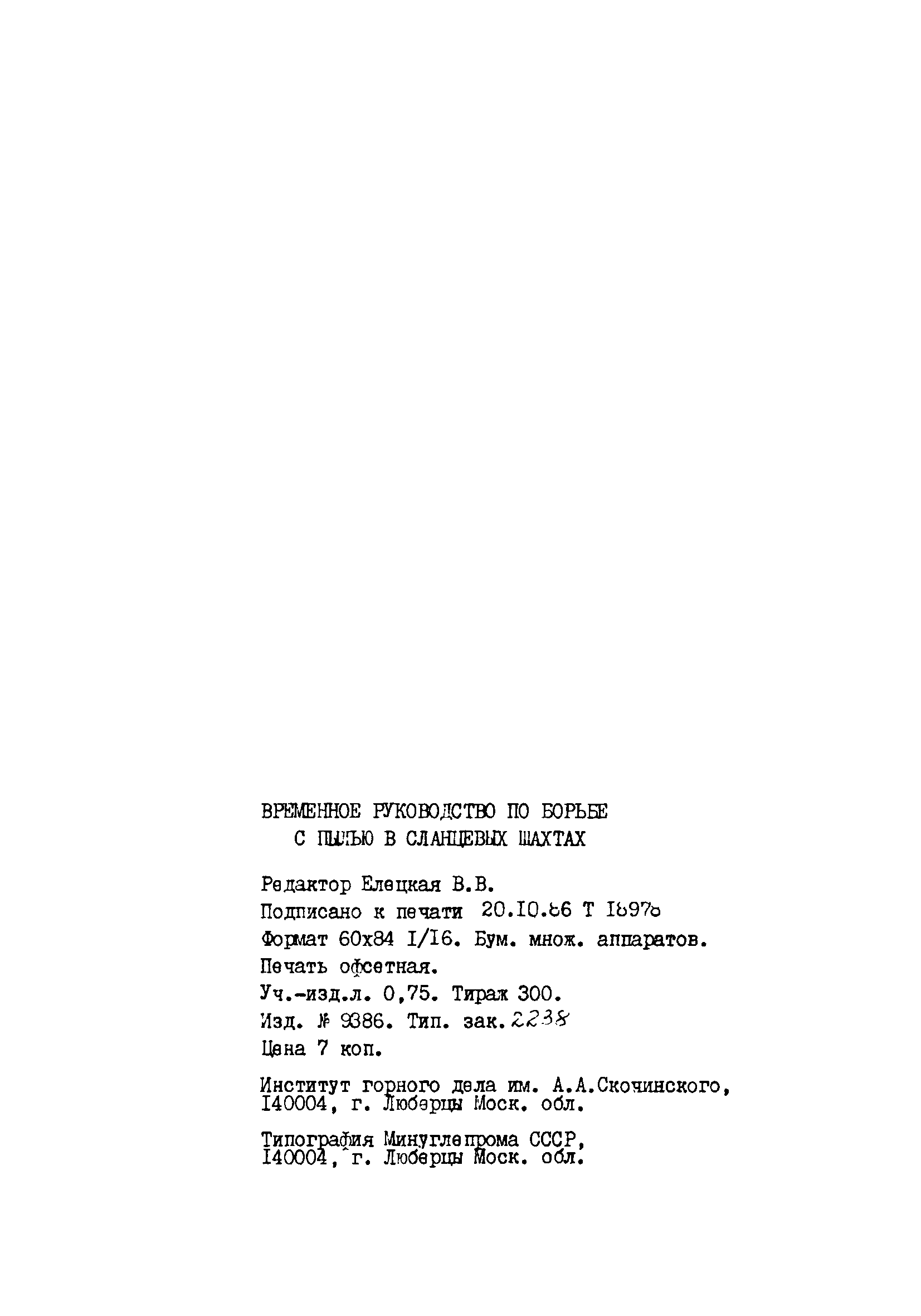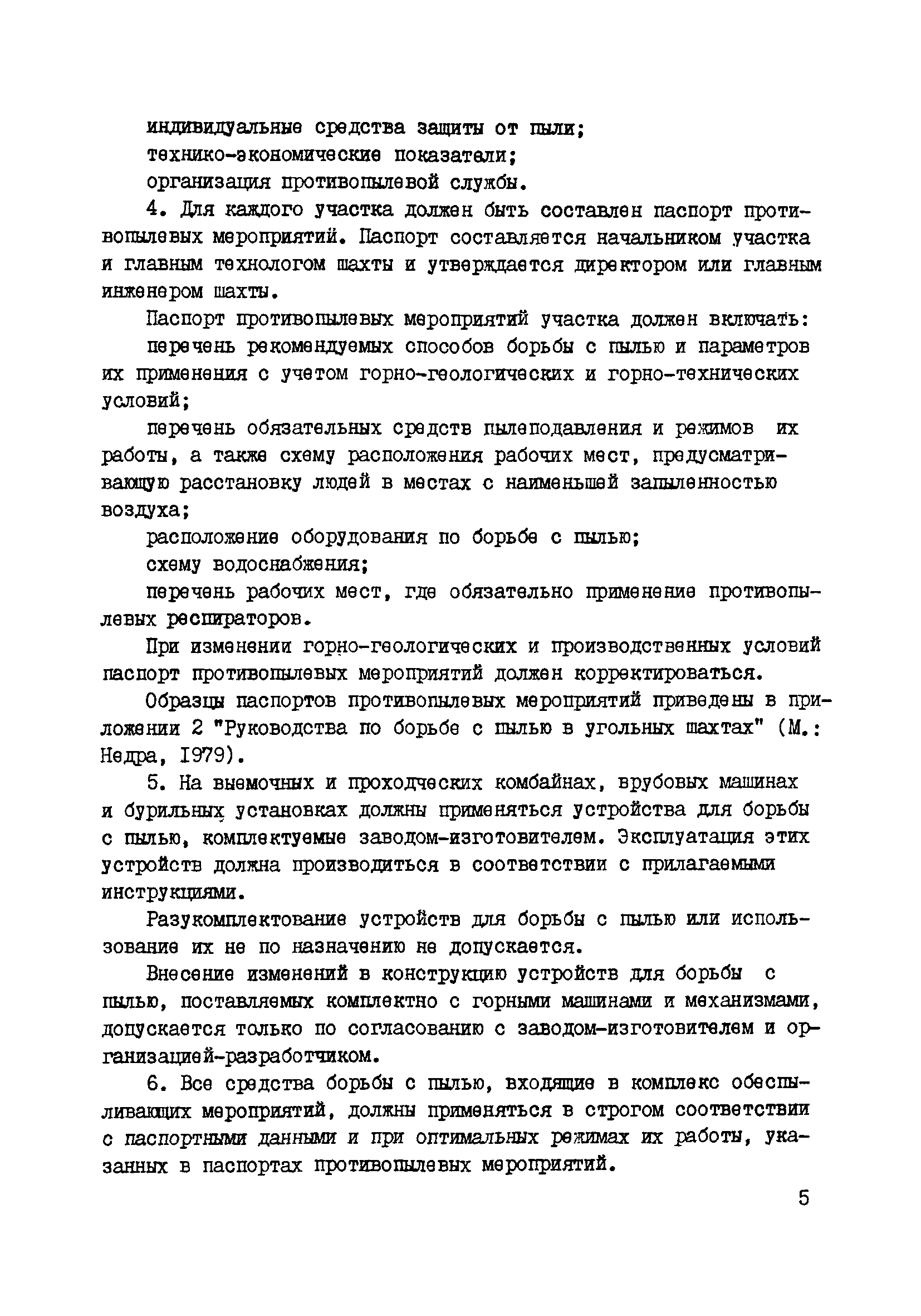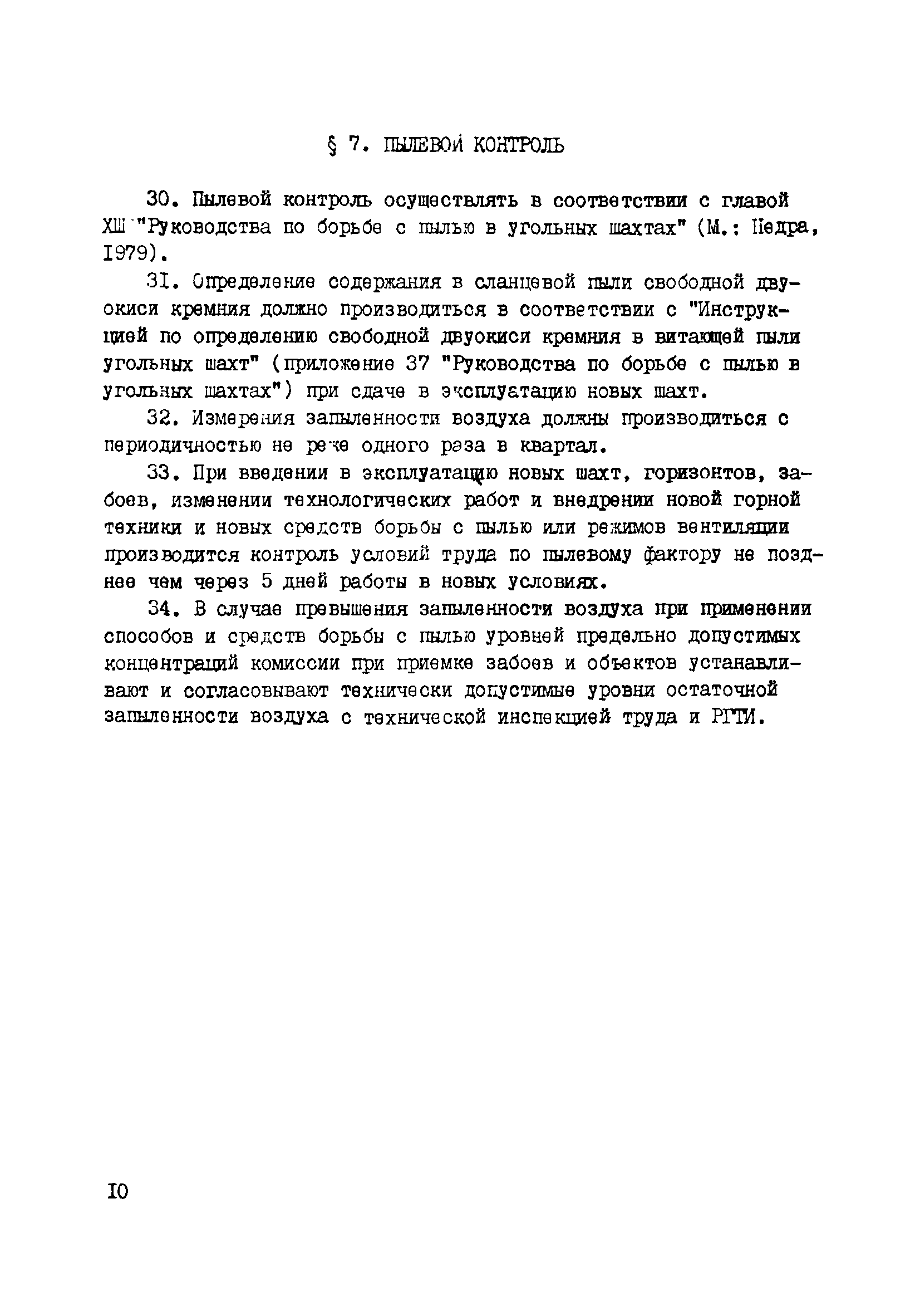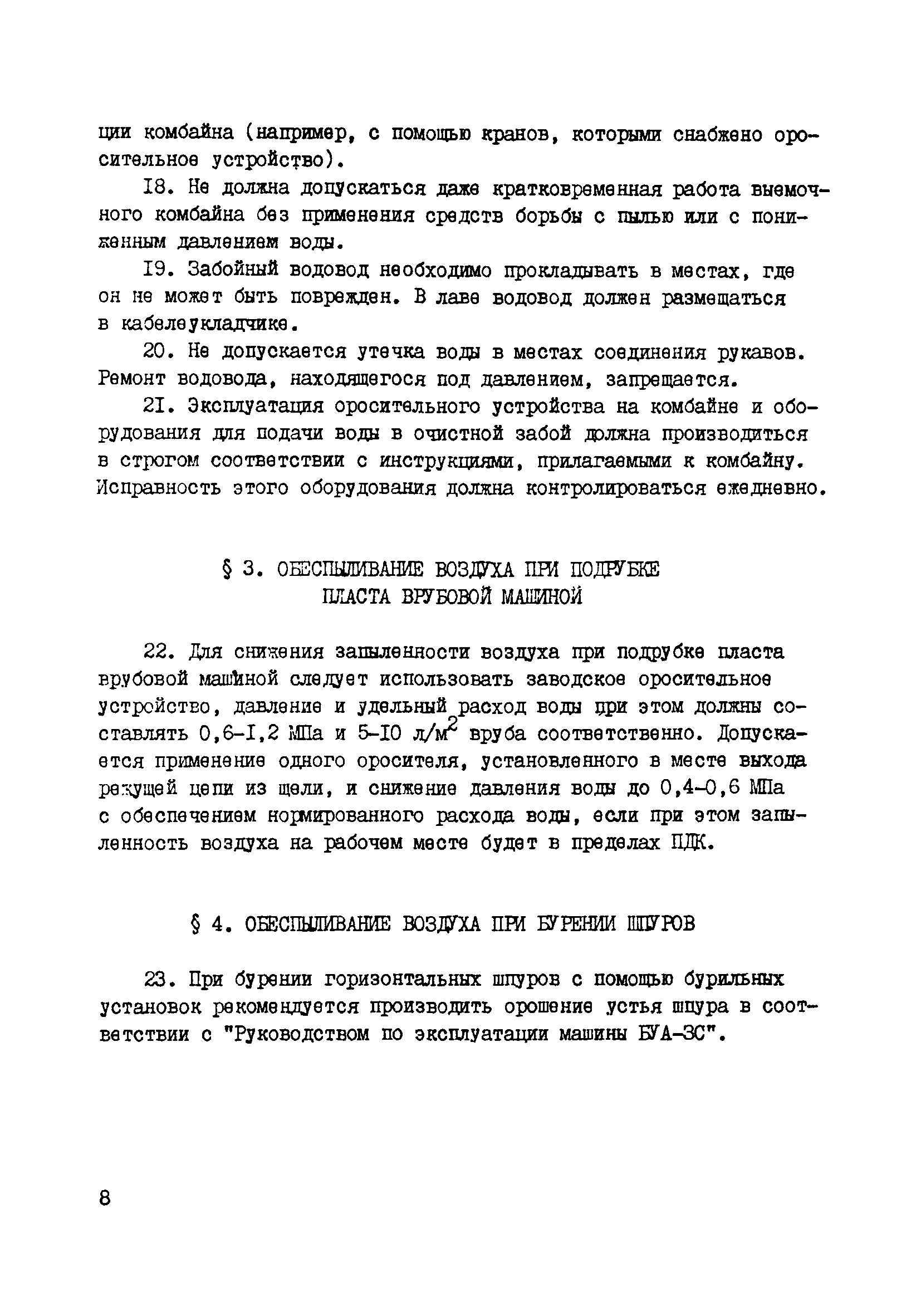 | Оглавление: | Введение 1. Общие положения 2. Обеспыливание воздуха при выемке сланца выемочными комбайнами 3. Обеспыливание воздуха при подрубке пласта врубовой машиной 4. Обеспыливание воздуха при бурении шпуров 5. Обеспыливание воздуха при взрывных работах 6. Обеспыливание воздуха при погрузочно-транспортных работах 7. Пылевой контроль |