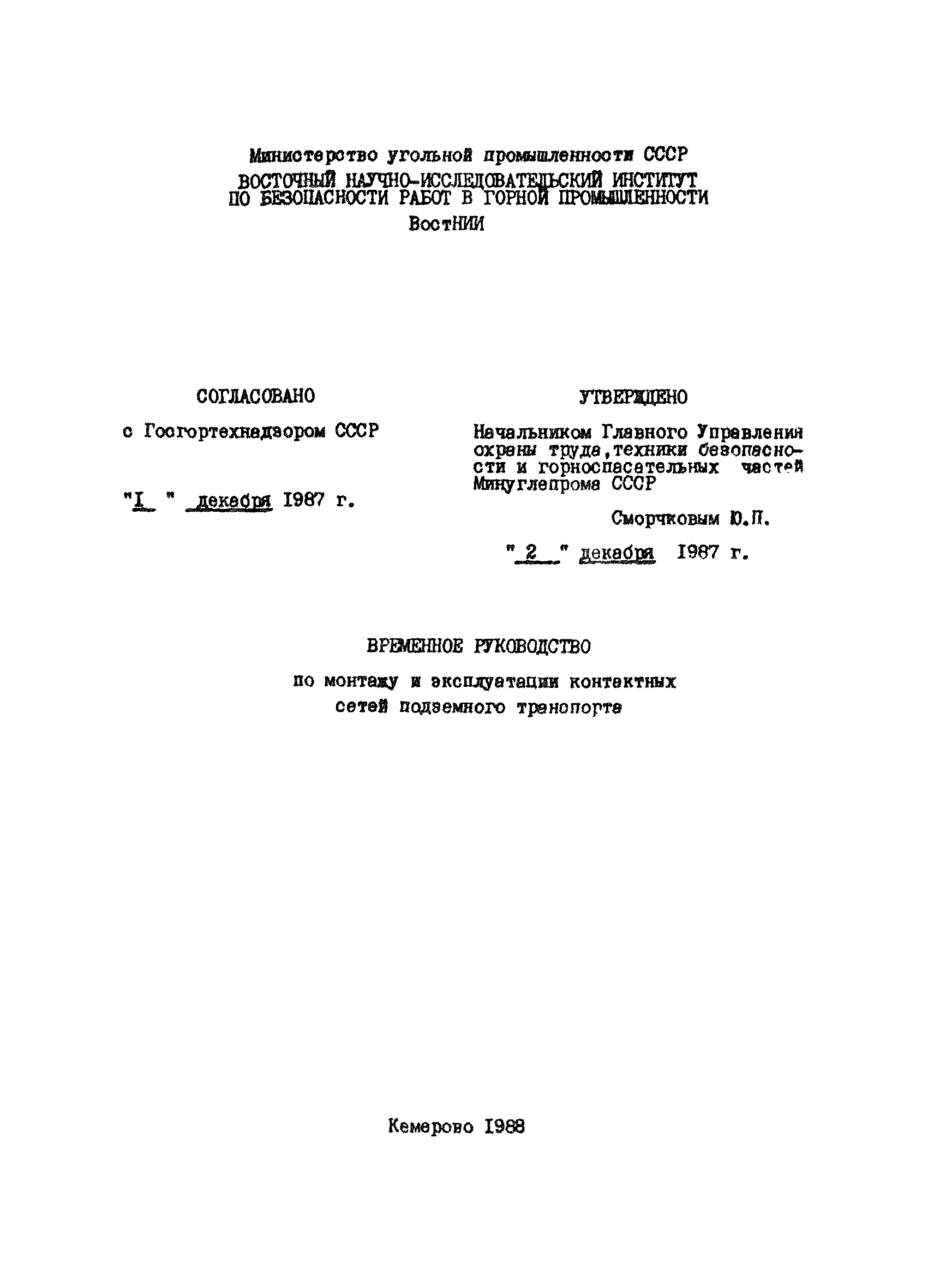| Утверждён: | 02.12.1987 Начальник Главного Управления охраны труда, техники безопасности и горноспасательных частей Минуглепрома СССР