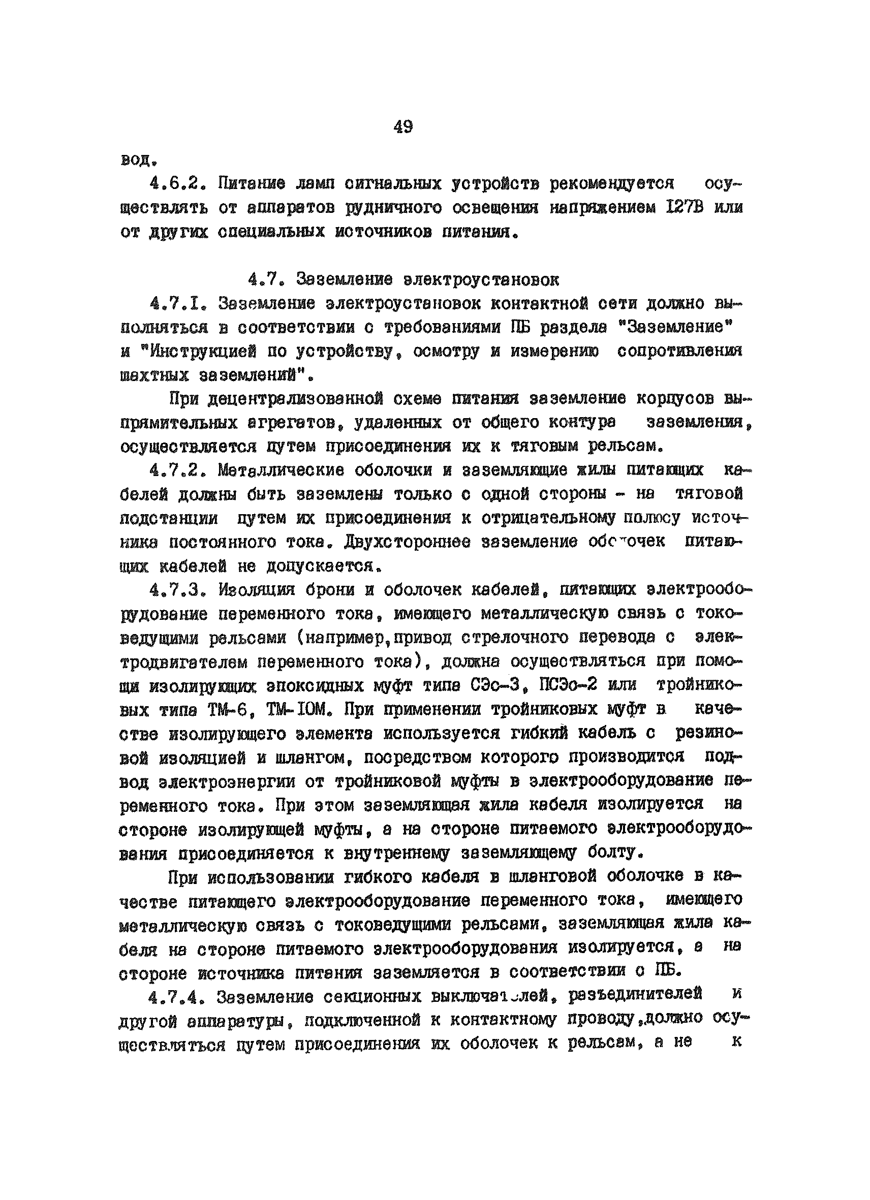 | Оглавление: | 1. Общие положения 2. Общие требования к схемам электроснабжения 3. Тяговые подстанции (общие сведения) 4. Правила устройств 4.1. Основные элементы сети 4.2. Подвеска контактного провода 4.3. Узлы секционирования 4.4. Питающие и отсасывающие пункты 4.5. Рельсовые линии 4.6. Правила монтажа сигнальных устройств 4.7. Заземление электроустановок 5. Защита от токов короткого замыкания 6. Контроль электрических параметров контактных сетей 7. Содержание и эксплуатация контактной сети 8. Правила безопасности Приложение 1. Основные технические данные элементов контактной сети Приложение 2. Расчет тока короткого замыкания Приложение 3. Упрощенные метод расчета токов короткого замыкания |