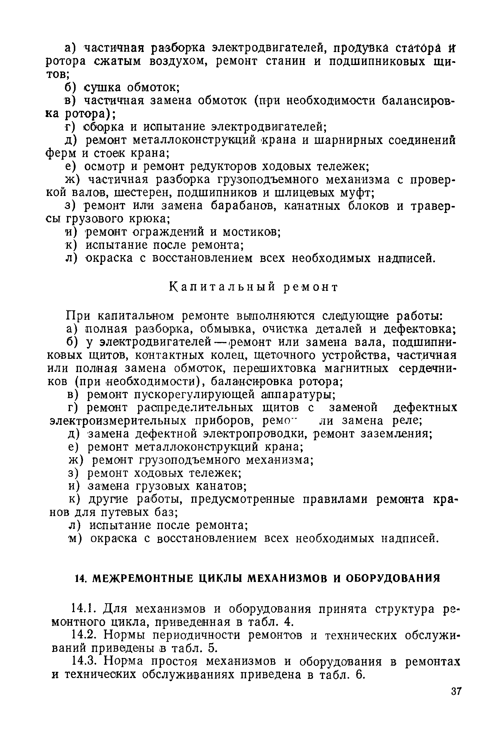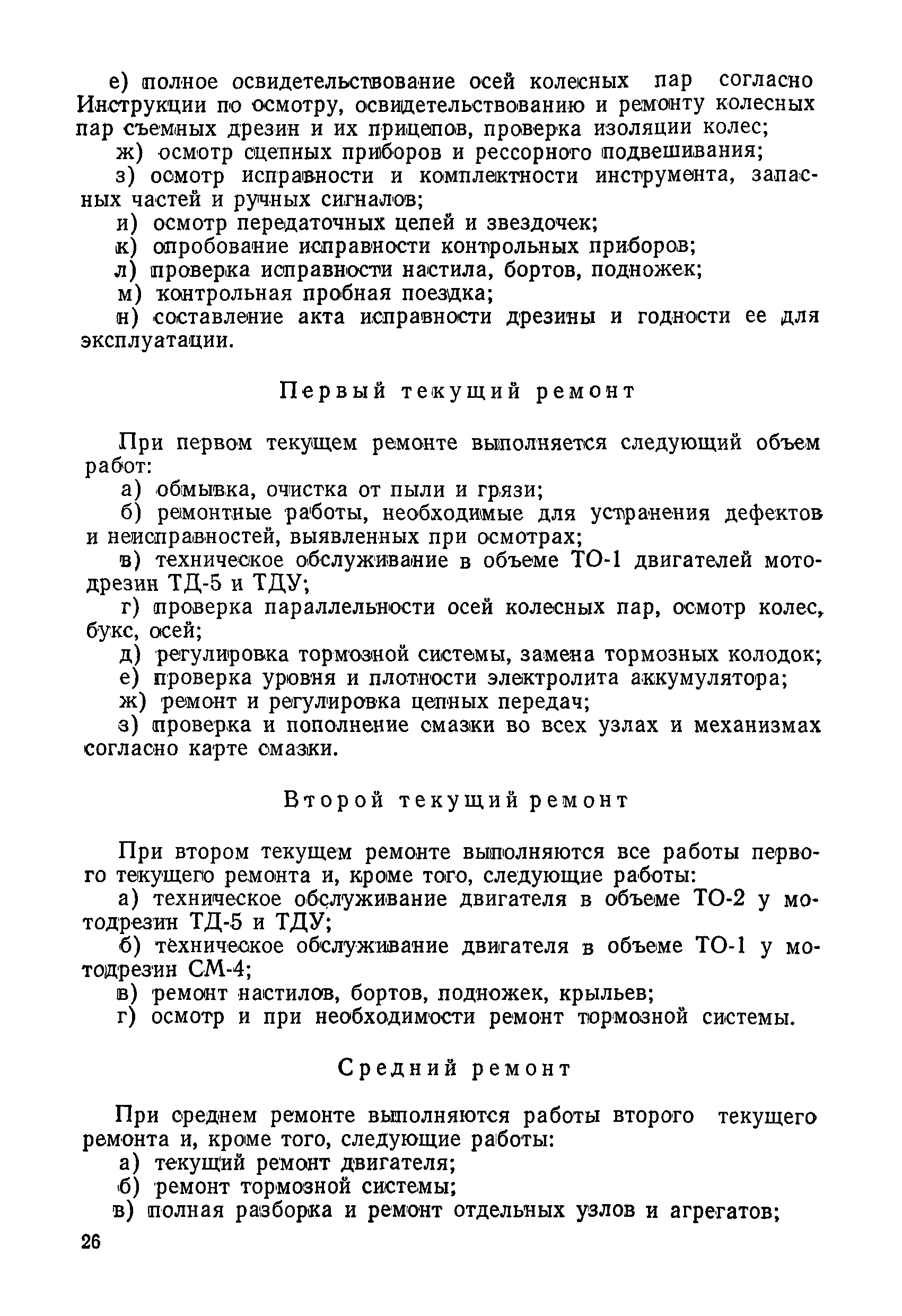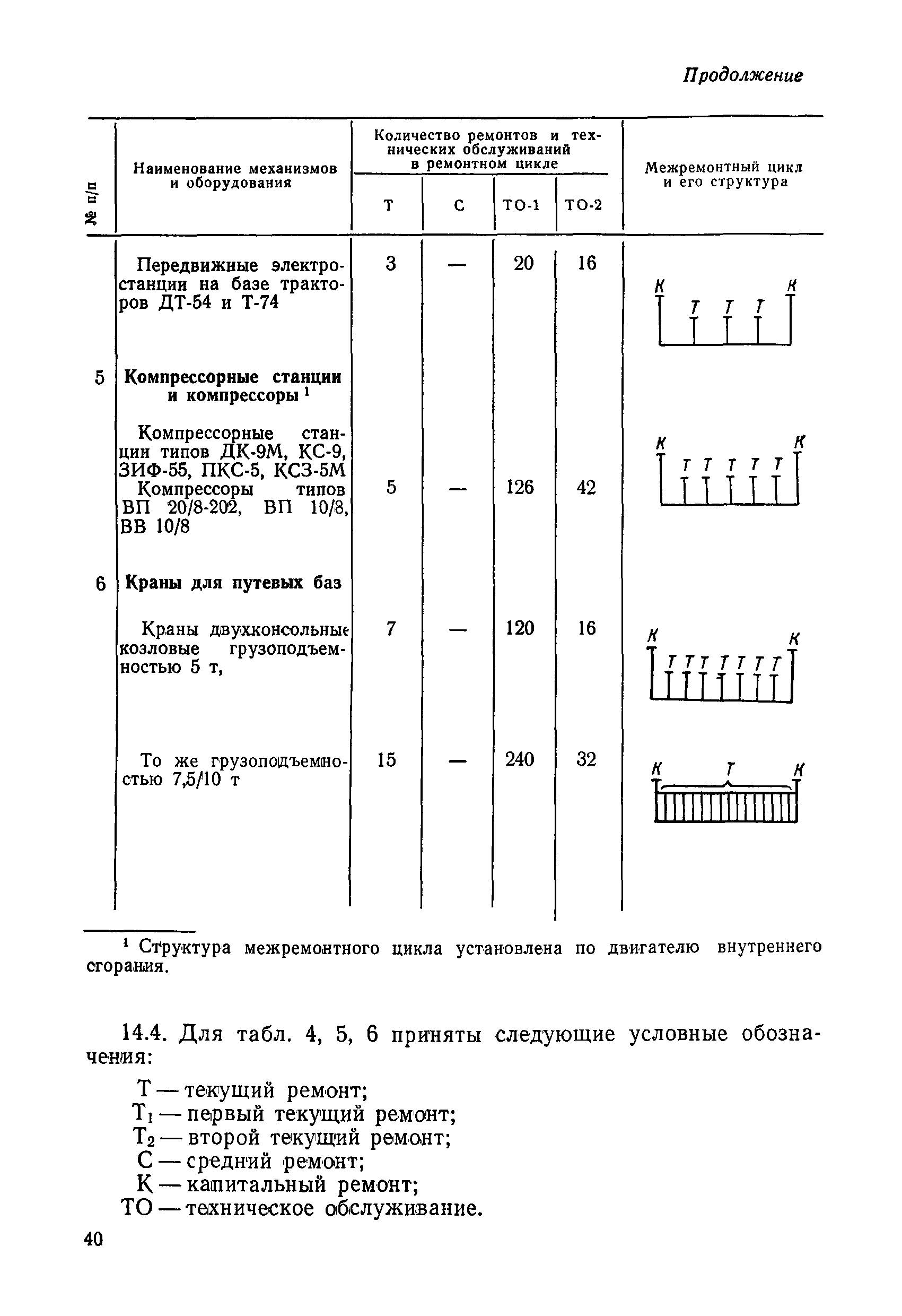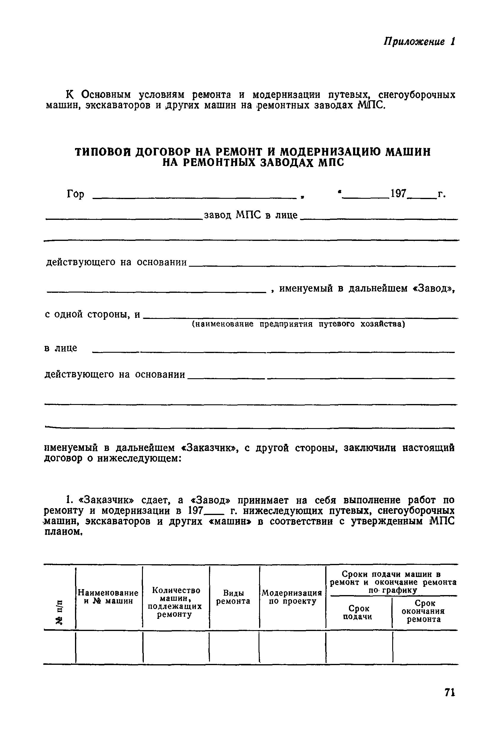 Положение устанавливает принципиальные основы технического обслуживания и ремонта путевых машин, механизмов и оборудования, направленные на улучшение показателей их использования. | | Оглавление: | 1. Общие положения 2. Основная техническая документация на путевые машины, механизмы и оборудование 3. Планирование ремонта путевых машин, механизмов и оборудования 4. Сдача путевых машин, механизмов, оборудования в ремонт и получение их из ремонта 5. Материалы, запасные части и изделия для ремонта 6. Модернизация путевых машин, механизмов и оборудования Часть I. Положение о планово-предупредительном ремонте путевых машин 7. Виды обслуживаний и ремонтов путевых машин Состав работ по техническому обслуживанию путевых машин Состав работ по ремонту путевых машин 8. Контроль-технический осмотр 9. Порядок хранения и консервации путевых машин 10. Межремонтные циклы путевых машин Часть II. Положение о планово-предупредительном ремонте механизмов и оборудования 11. Номенклатура механизмов и оборудования 12. Виды обслуживаний и ремонтов механизмов и оборудования 13. Состав работ по техническому обслуживанию (осмотру) и ремонту механизмов и оборудования 13.1. Съемные мотодрезины и прицепы к ним 13.2. Оборудование рельсосварочного производства 13.3. Оборудование для ремонта шпал 13.4. Энергосиловые установки 13.5. Компрессорные станции и компрессоры 13.6. Краны для путевых баз 14. Межремонтные циклы механизмов и оборудования Приложение 1. Перечень действующих правил ремонта путевых машин, механизмов и оборудования Приложение 2. Перечень технической документации, требования которой при ремонте и техническом обслуживании обязательны Приложение 3. Формы документации | | Разработан: | Министерство путей сообщения СССР