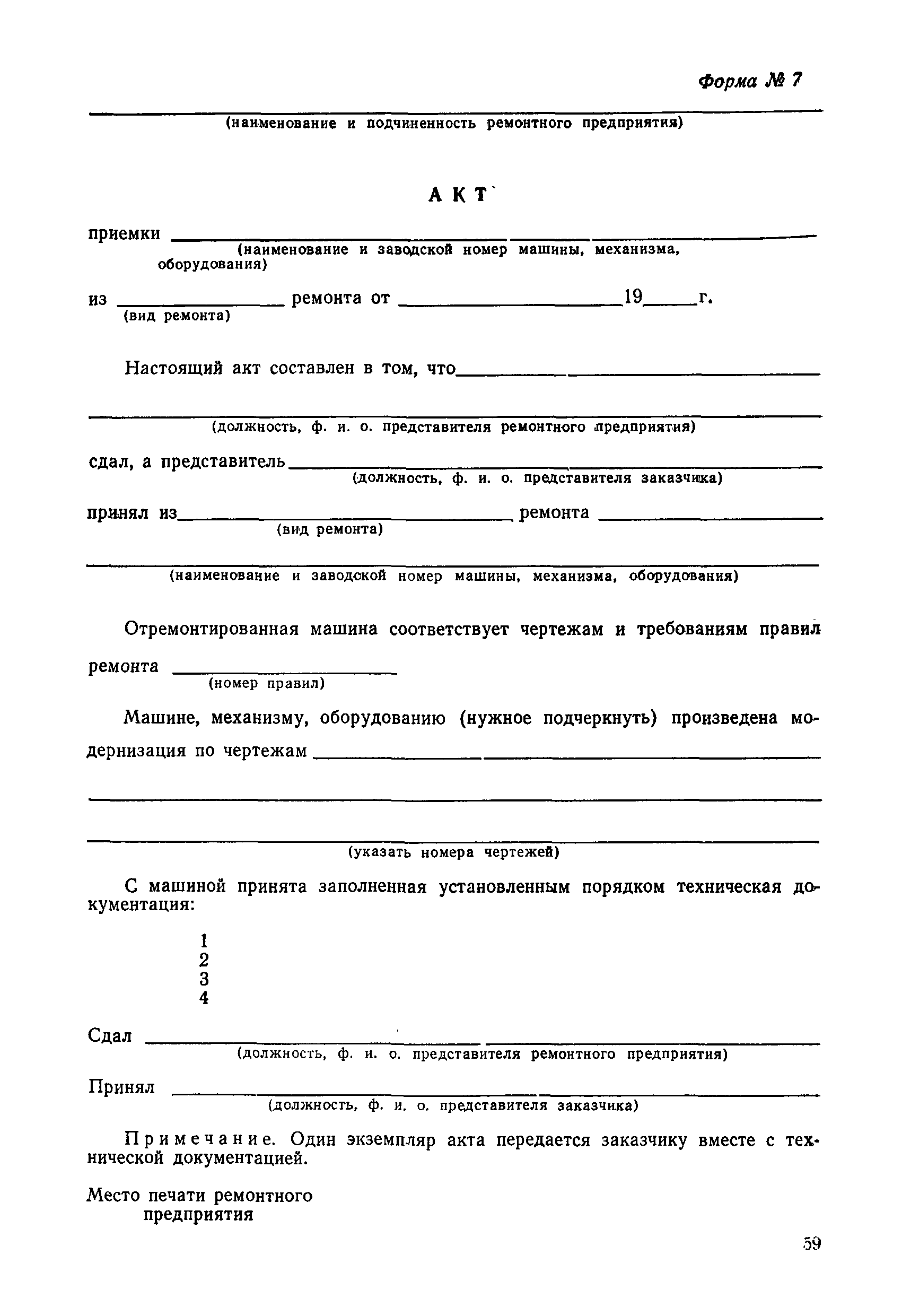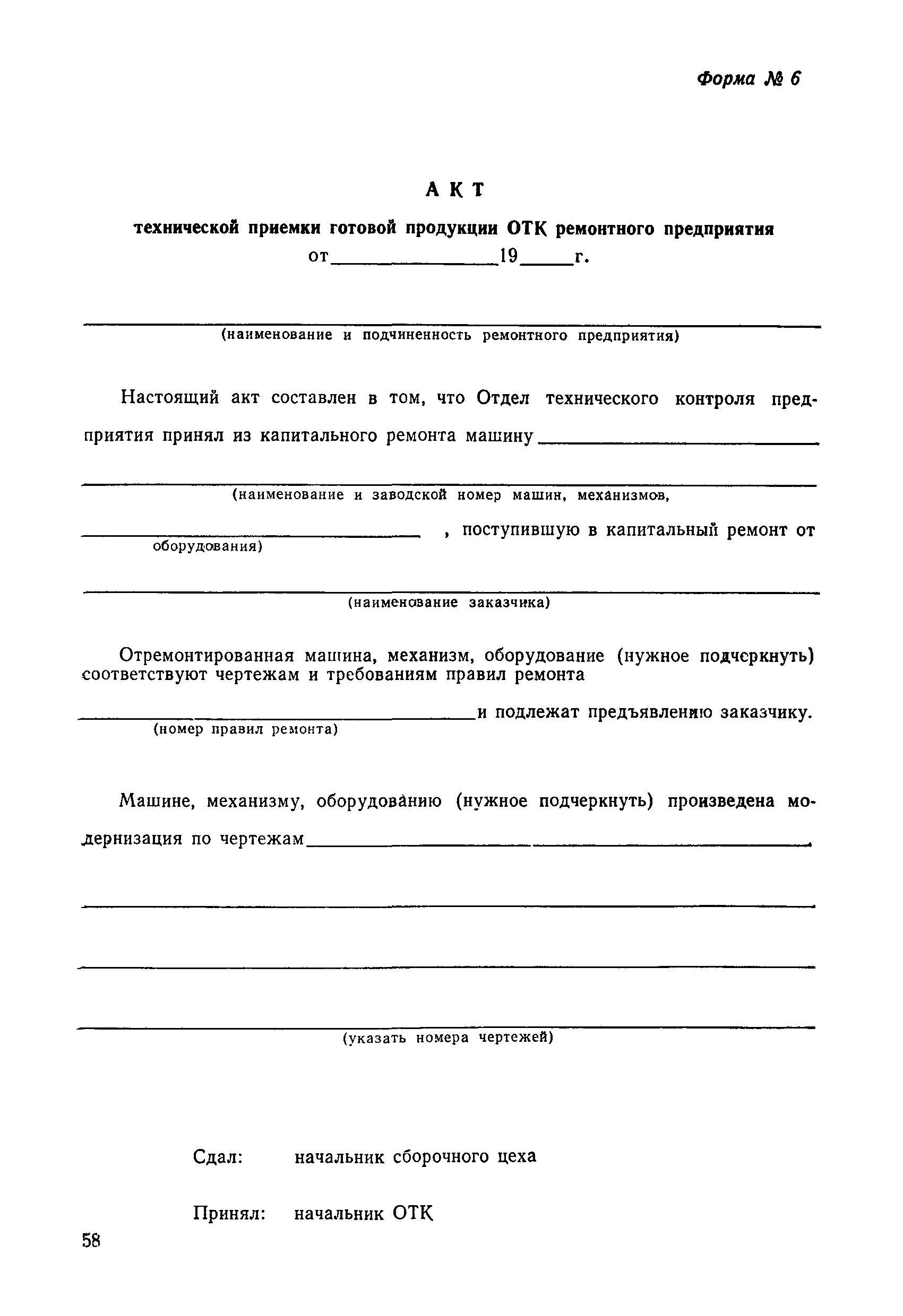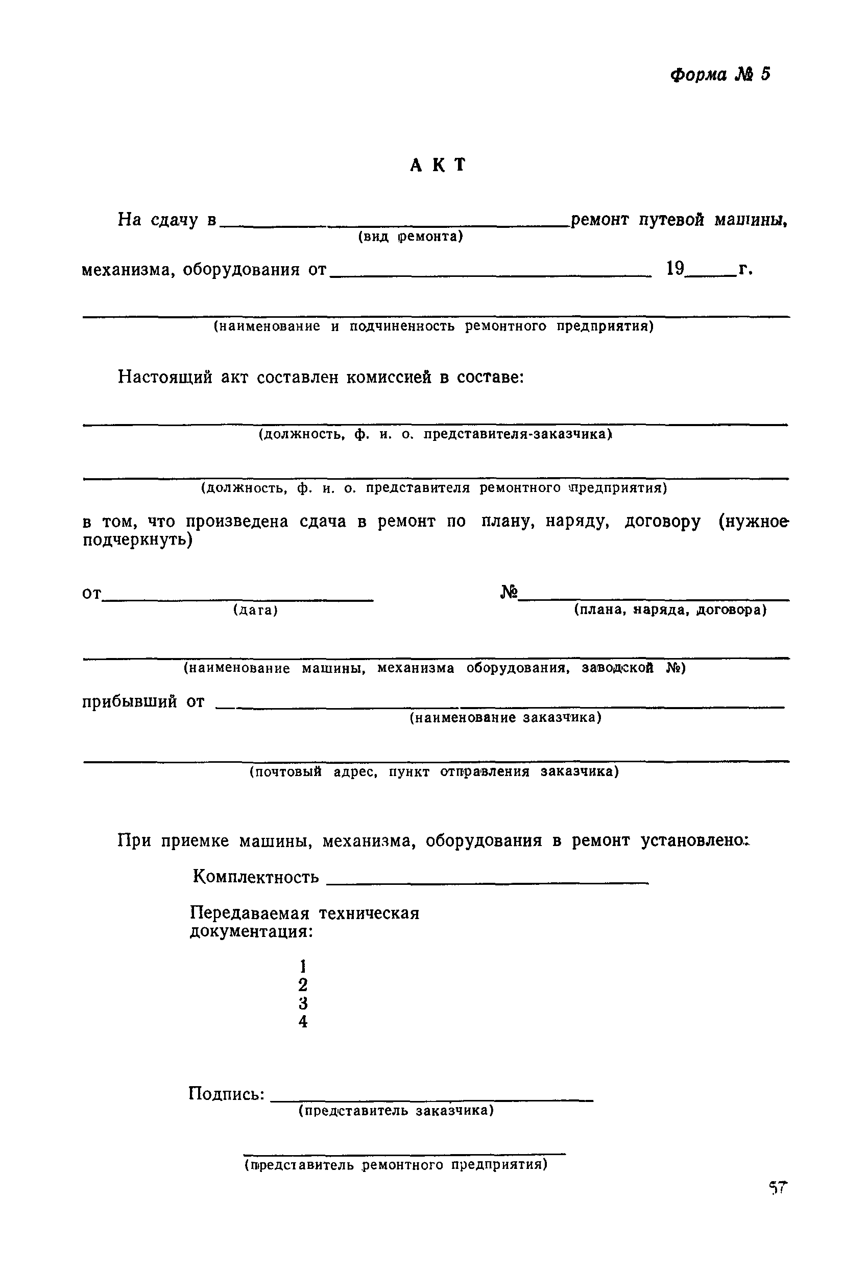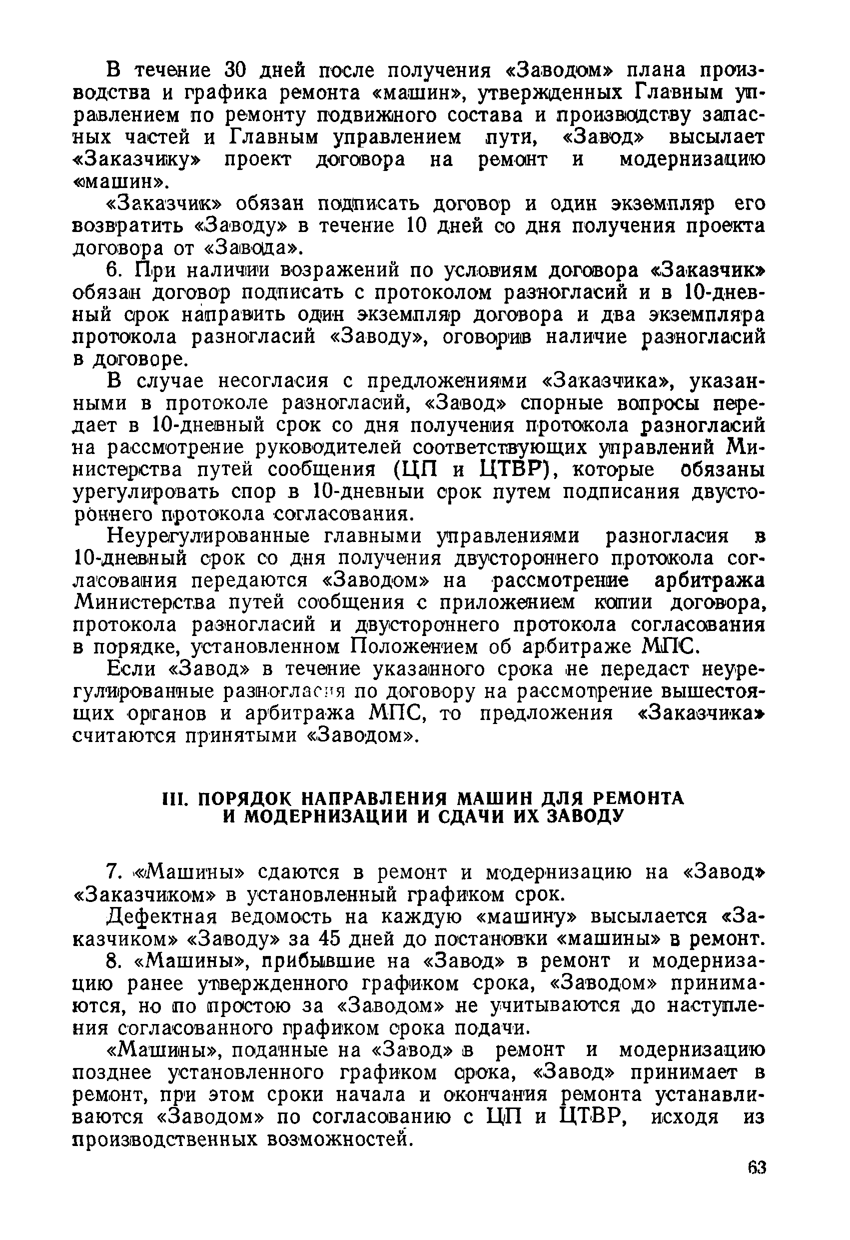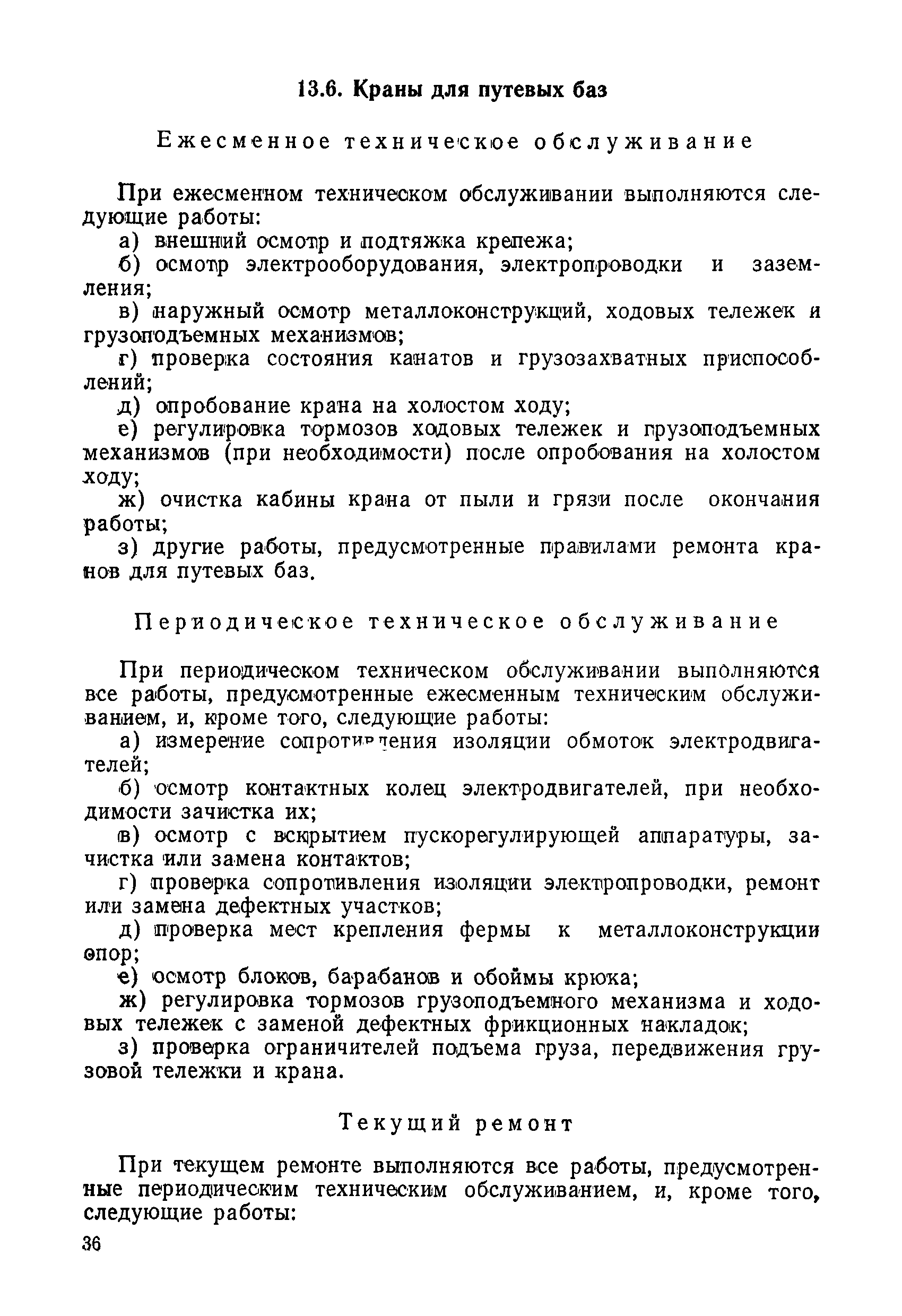 Положение устанавливает принципиальные основы технического обслуживания и ремонта путевых машин, механизмов и оборудования, направленные на улучшение показателей их использования. | | Оглавление: | 1. Общие положения 2. Основная техническая документация на путевые машины, механизмы и оборудование 3. Планирование ремонта путевых машин, механизмов и оборудования 4. Сдача путевых машин, механизмов, оборудования в ремонт и получение их из ремонта 5. Материалы, запасные части и изделия для ремонта 6. Модернизация путевых машин, механизмов и оборудования Часть I. Положение о планово-предупредительном ремонте путевых машин 7. Виды обслуживаний и ремонтов путевых машин Состав работ по техническому обслуживанию путевых машин Состав работ по ремонту путевых машин 8. Контроль-технический осмотр 9. Порядок хранения и консервации путевых машин 10. Межремонтные циклы путевых машин Часть II. Положение о планово-предупредительном ремонте механизмов и оборудования 11. Номенклатура механизмов и оборудования 12. Виды обслуживаний и ремонтов механизмов и оборудования 13. Состав работ по техническому обслуживанию (осмотру) и ремонту механизмов и оборудования 13.1. Съемные мотодрезины и прицепы к ним 13.2. Оборудование рельсосварочного производства 13.3. Оборудование для ремонта шпал 13.4. Энергосиловые установки 13.5. Компрессорные станции и компрессоры 13.6. Краны для путевых баз 14. Межремонтные циклы механизмов и оборудования Приложение 1. Перечень действующих правил ремонта путевых машин, механизмов и оборудования Приложение 2. Перечень технической документации, требования которой при ремонте и техническом обслуживании обязательны Приложение 3. Формы документации | | Разработан: | Министерство путей сообщения СССР