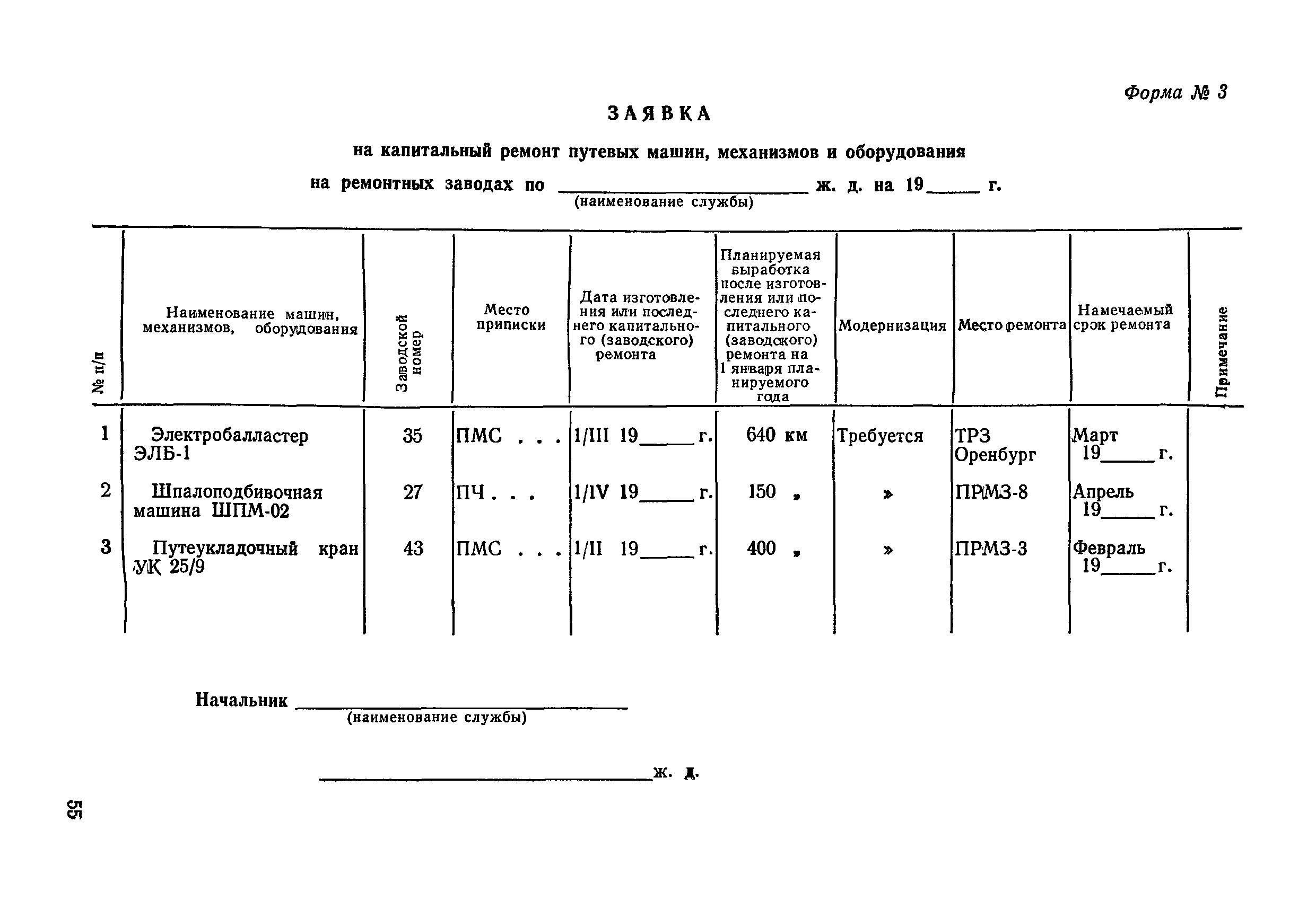 Временное положение о планово-предупредительном ремонте путевых машин, механизмов и оборудования| Статус: | справочные материалы, мп, тпр | | Название рус.: | Временное положение о планово-предупредительном ремонте путевых машин, механизмов и оборудования | | Дата добавления в базу: | 01.02.2017 | | Дата актуализации: | 01.01.2021 | | Область применения: | Положение о планово-предупредительном ремонте является обязательным для всех предприятий и организаций железнодорожного транспорта, эксплуатирующих и ремонтирующих путевые машины, механизмы и оборудование.