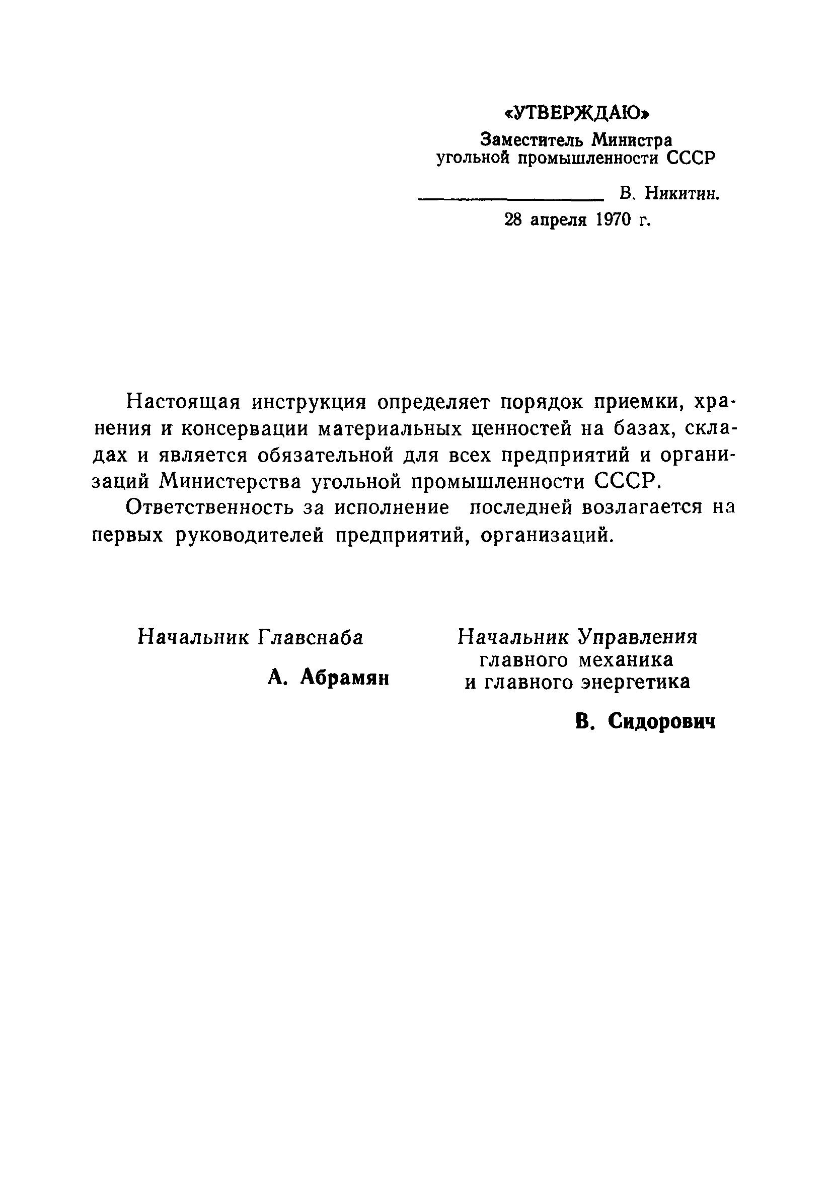| Утверждён: | 28.04.1970 Заместитель Министра угольной промышленности СССР