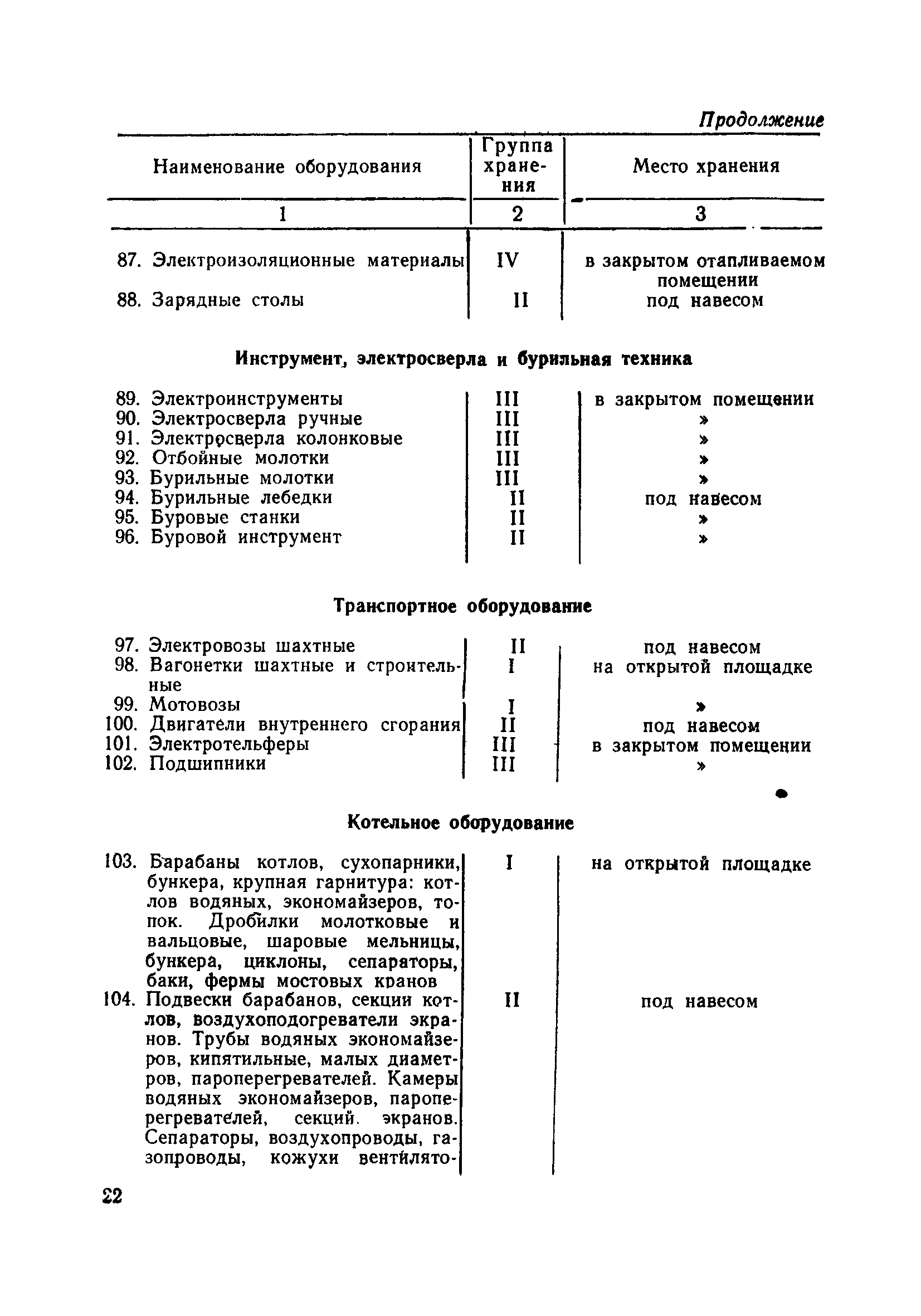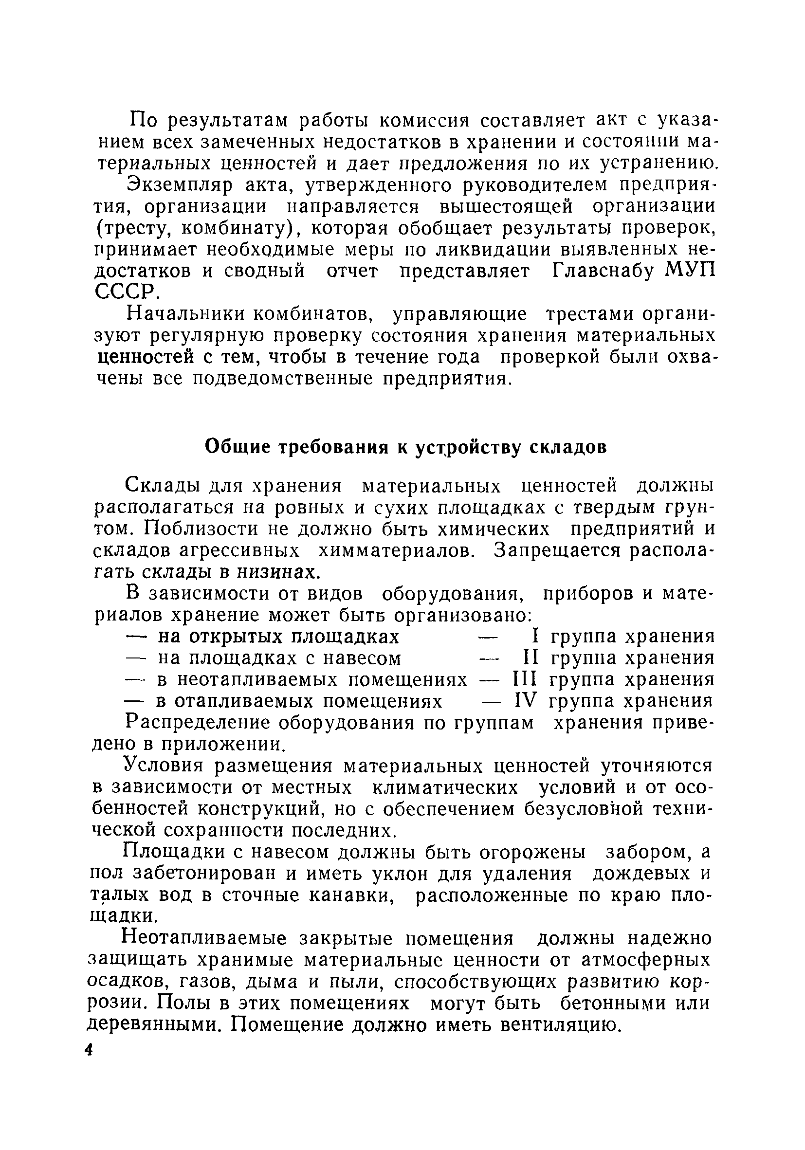 | Оглавление: | Основные положения Общие требования к устройству складов Общие требования к организации хранения материальных ценностей Приемка материальных ценностей Хранение материальных ценностей Подготовка к консервации Консервация Ревизия Упаковка Приложение. Распределение оборудования по группам в зависимости от способа хранения |