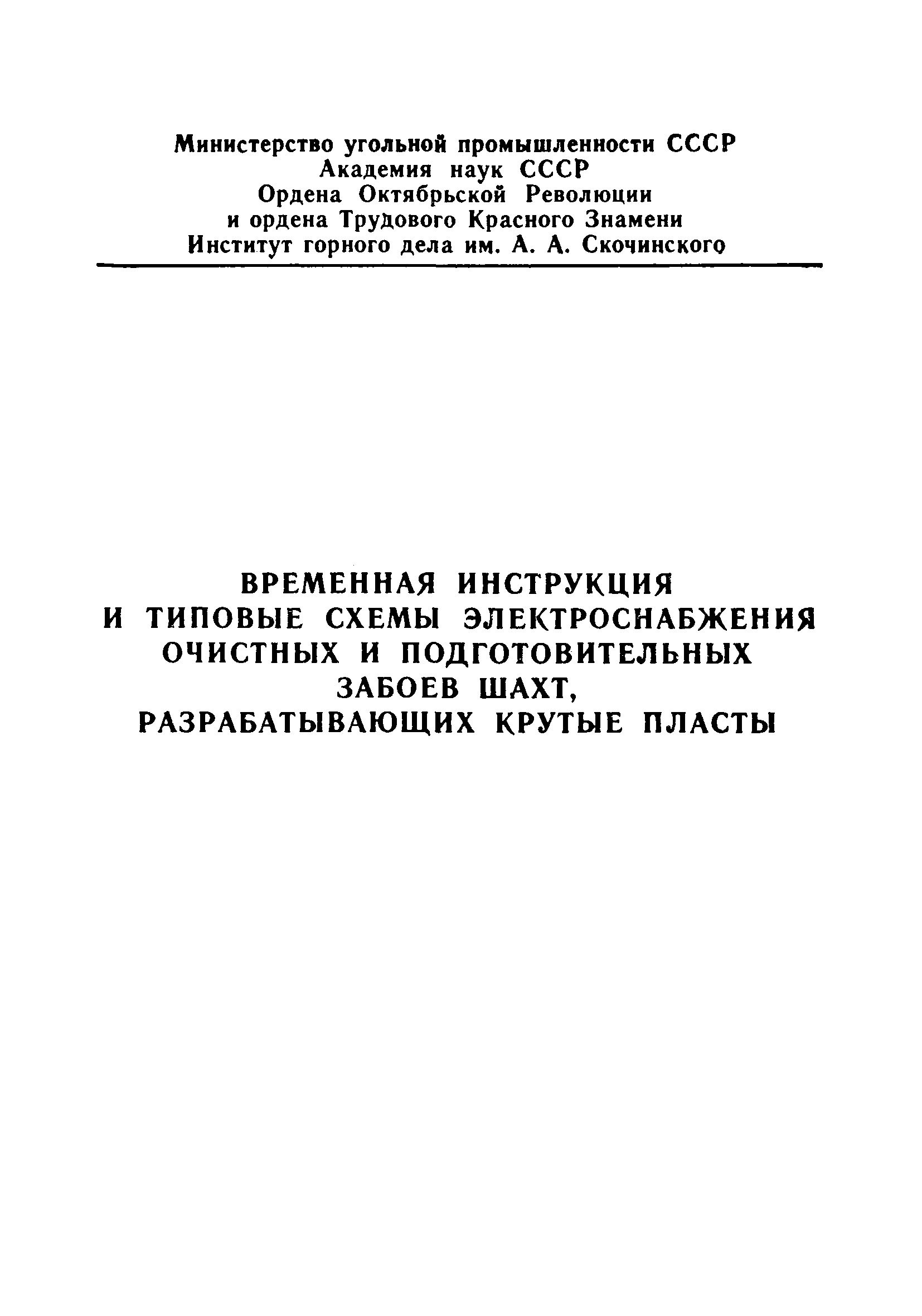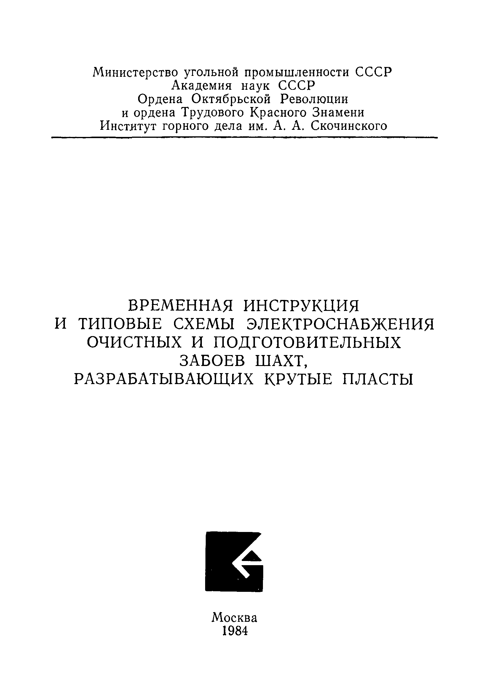 | Название рус.: | Временная инструкция и типовые схемы электроснабжения очистных и подготовительных забоев шахт, разрабатывающих крутые пласты |