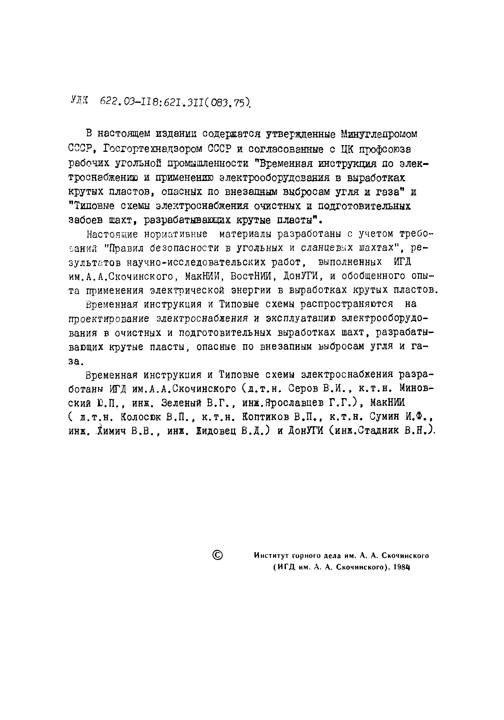 | Разработан: | ВостНИИ (Восточный научно-исследовательский институт по безопасности работ в горной промышленности) ДонУГИ ИГД им. А.А. Скочинского МакНИИ