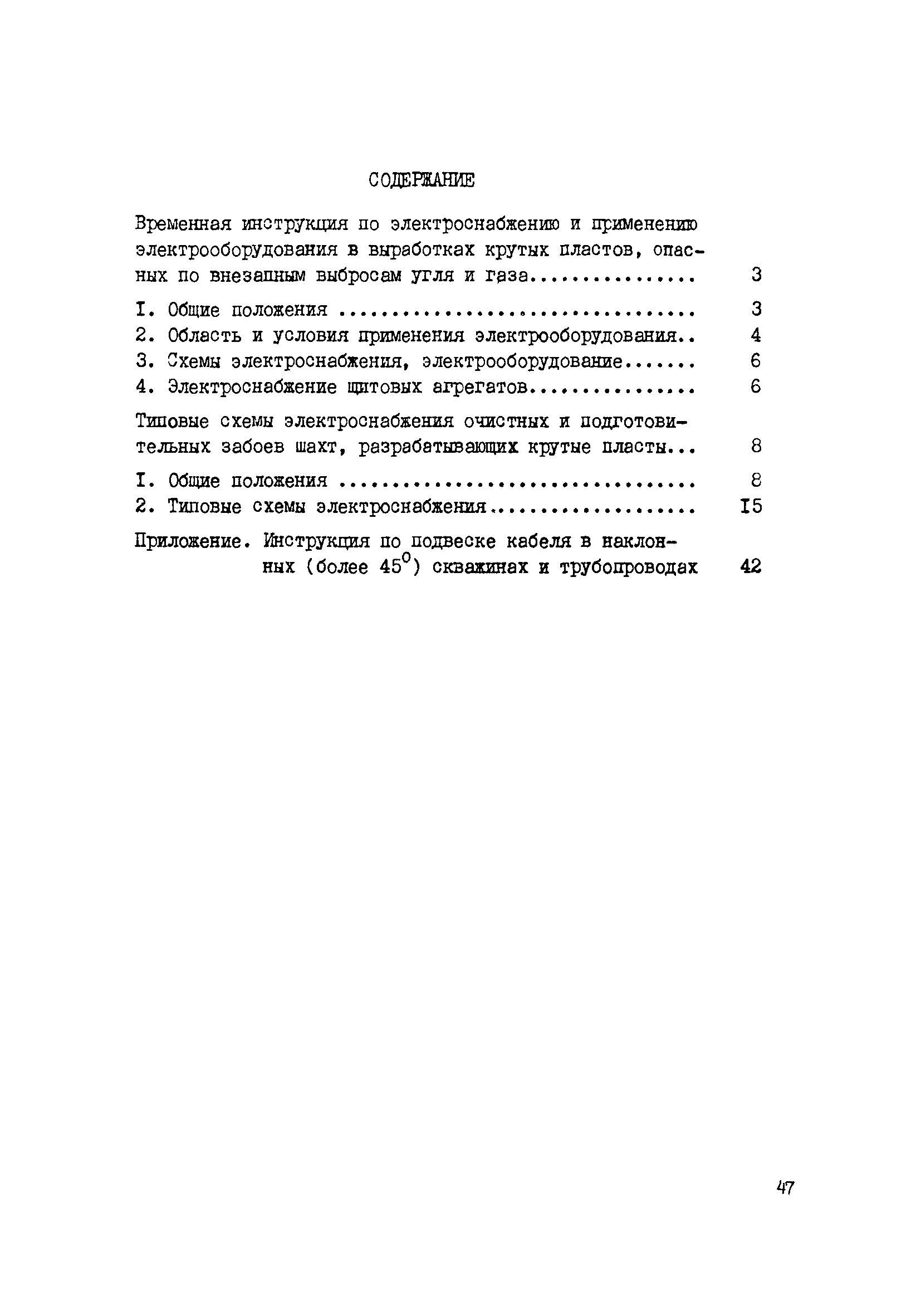 | Оглавление: | 1. Общие положения 2. Область и условия применения электрооборудования 3. Схемы электроснабжения, электрооборудование 4. Электроснабжение щитовых агрегатов Типовые схемы электроснабжения очистных и подготовительных забоев шахт, разрабатывающих крутые пласты 1. Общие положения 2. Типовые схемы электроснабжения Приложение. Инструкция по подвеске кабеля в наклонных скважинах и трубопроводах |