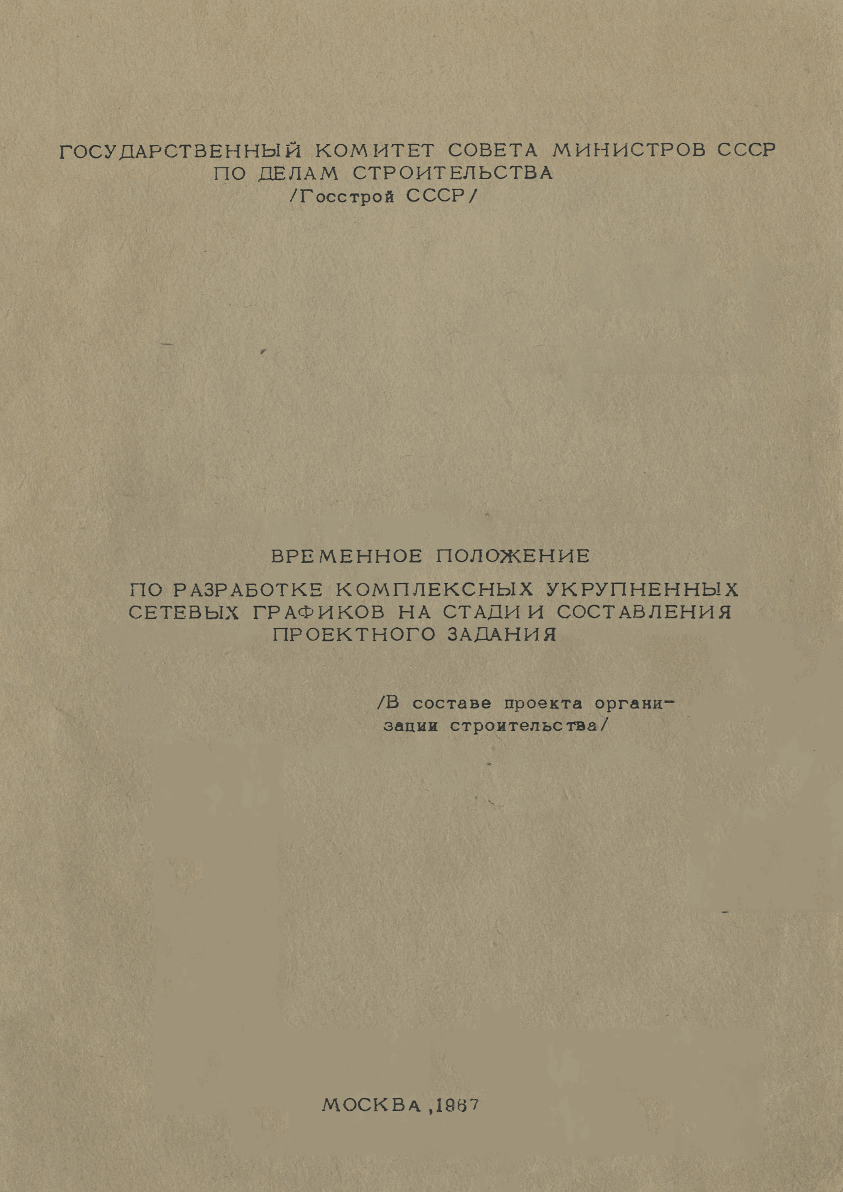 | Название рус.: | Временное положение по разработке комплексных укрупненных сетевых графиков на стадии составления проектного задания |