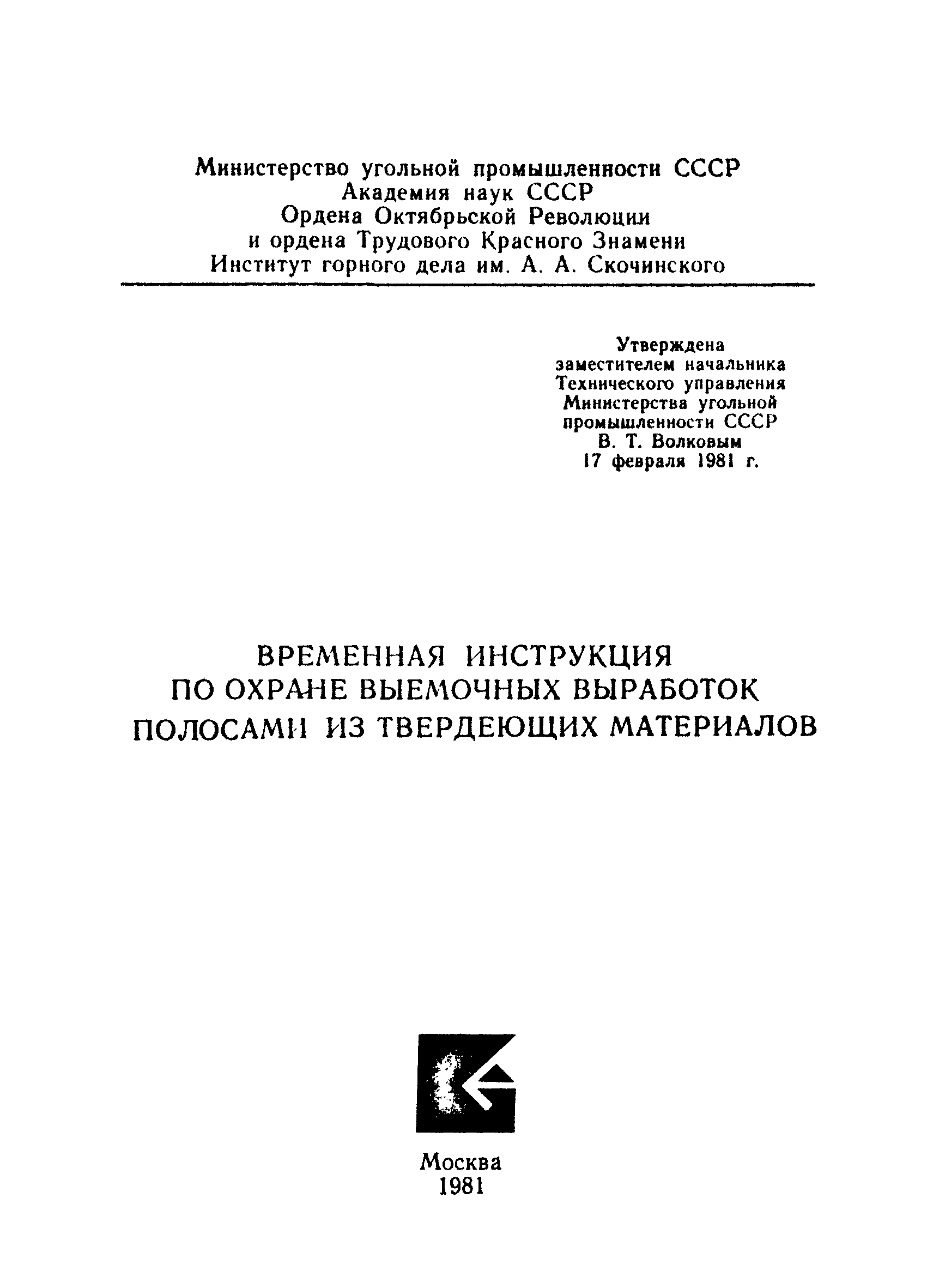 | Утверждён: | 17.02.1981 Техническое управление Министерства угольной промышленности СССР