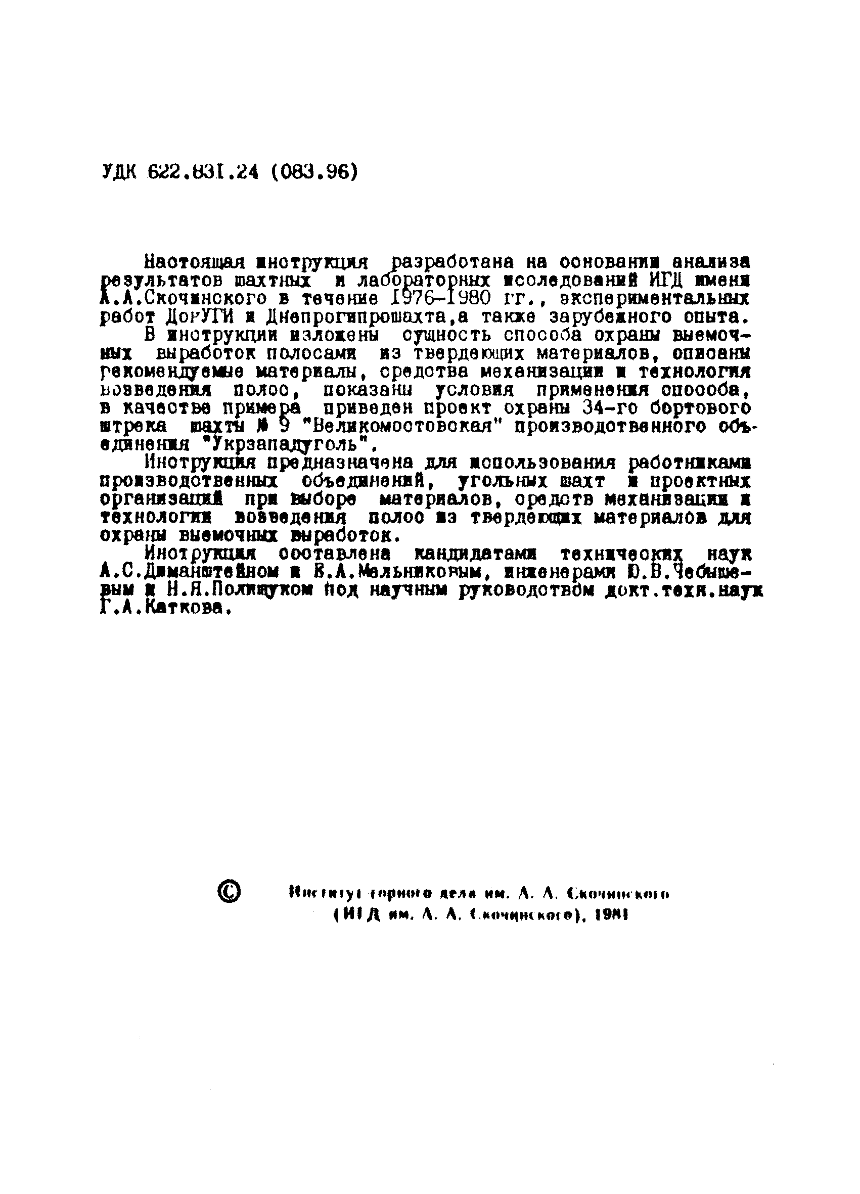 | Название рус.: | Временная инструкция по охране выемочных выработок полосами из твердеющих материалов |