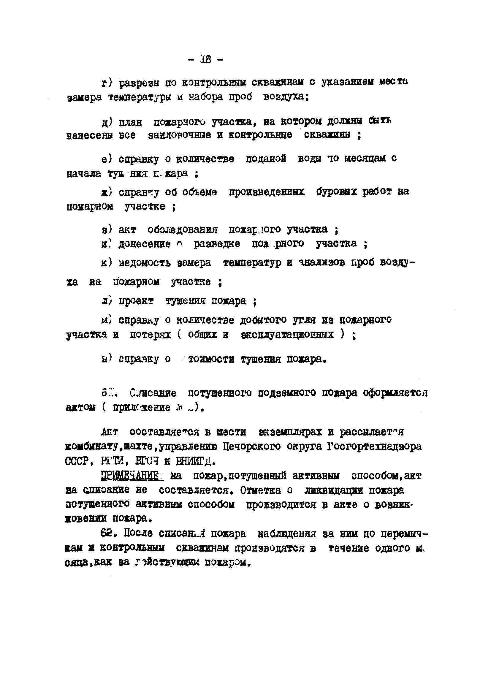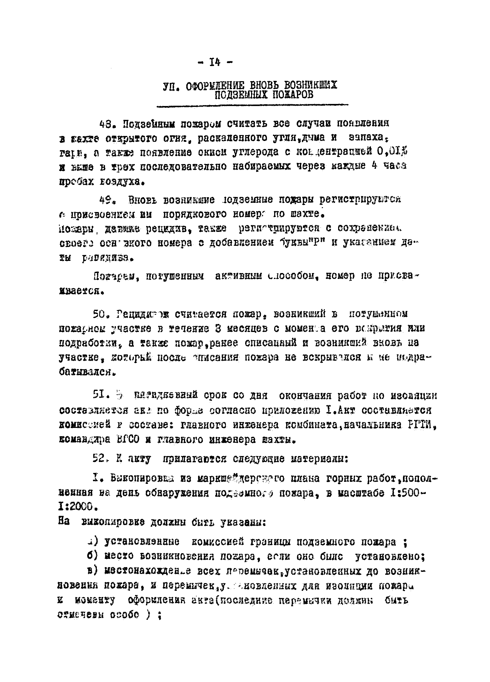 | Оглавление: | I. Введение II. Предупреждение пожаров III. Изоляция выработанных пространств от действующих горизонтов IV. Ведение горных работ под потушенными пожарами V. Контрольно-наблюдательная служба VI. Тушение подземных пожаров VII. Оформление вновь возникших подземных пожаров VIII. Списание подземных пожаров Приложение № 1. Акт на подземный пожар, обнаруженный на шахте Приложение № 2. Акт на списание подземного пожара в категорию потушенных по шахте |