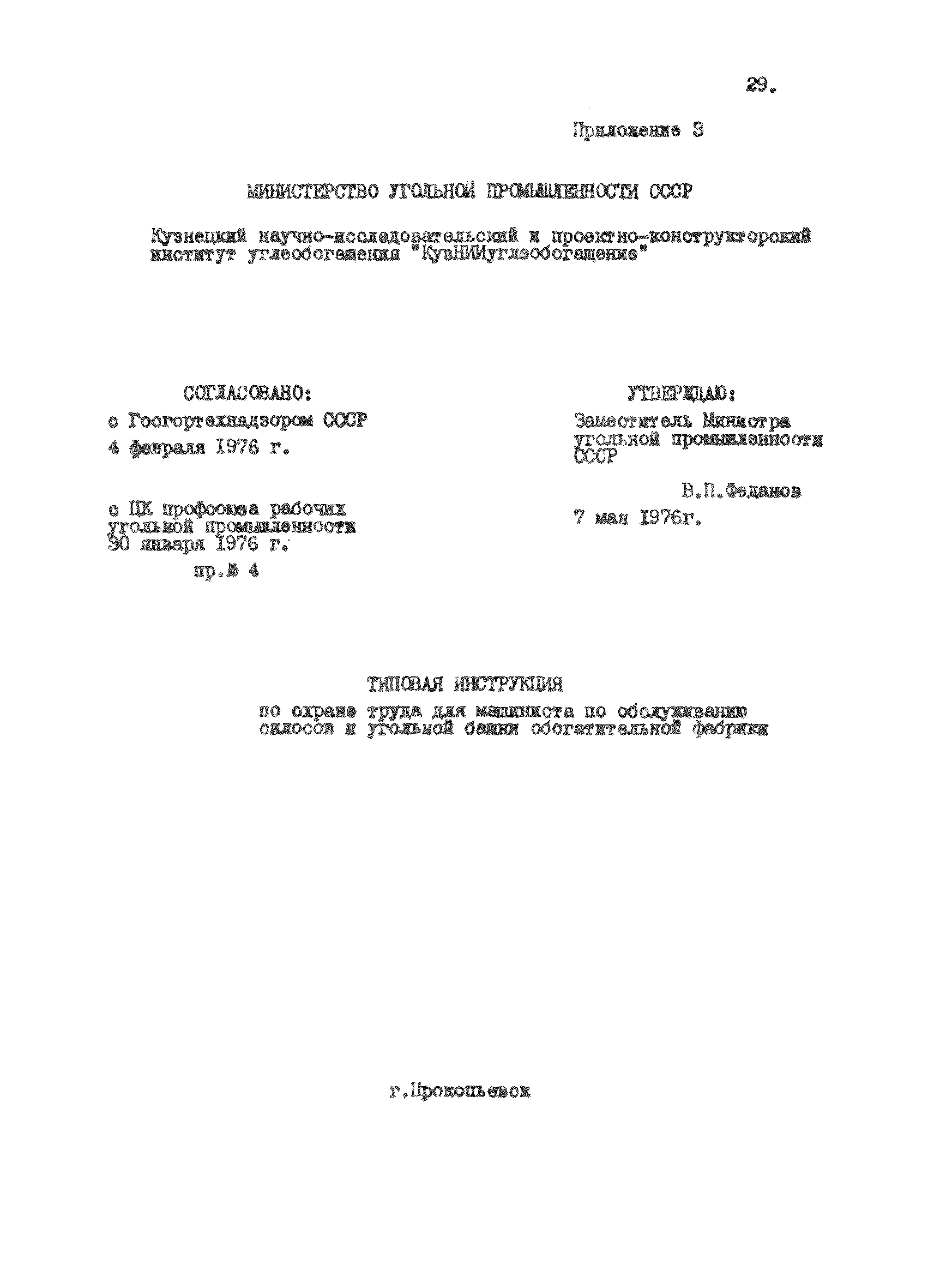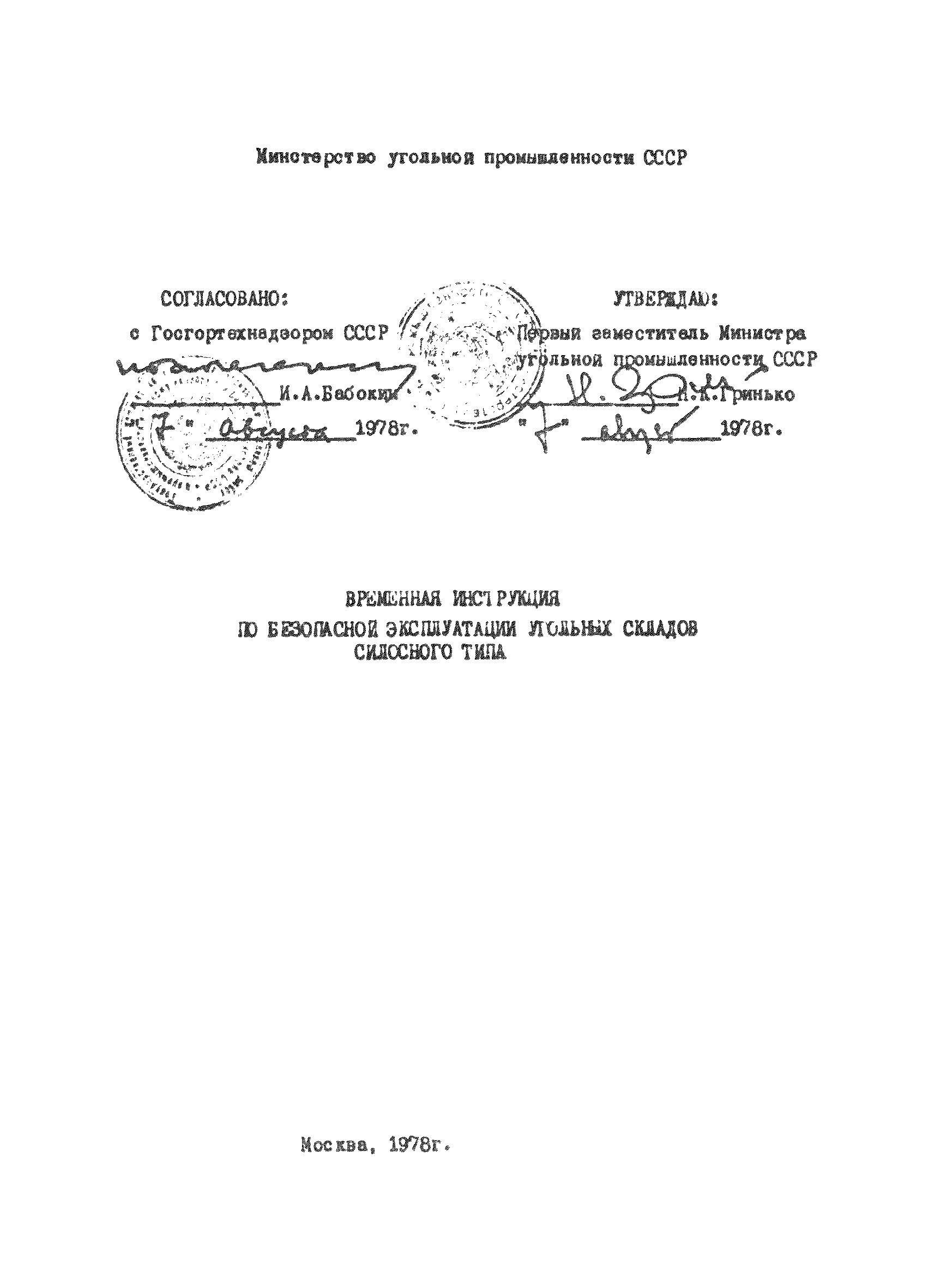 | Утверждён: | 07.08.1978 Первый заместитель министра угольной промышленности СССР