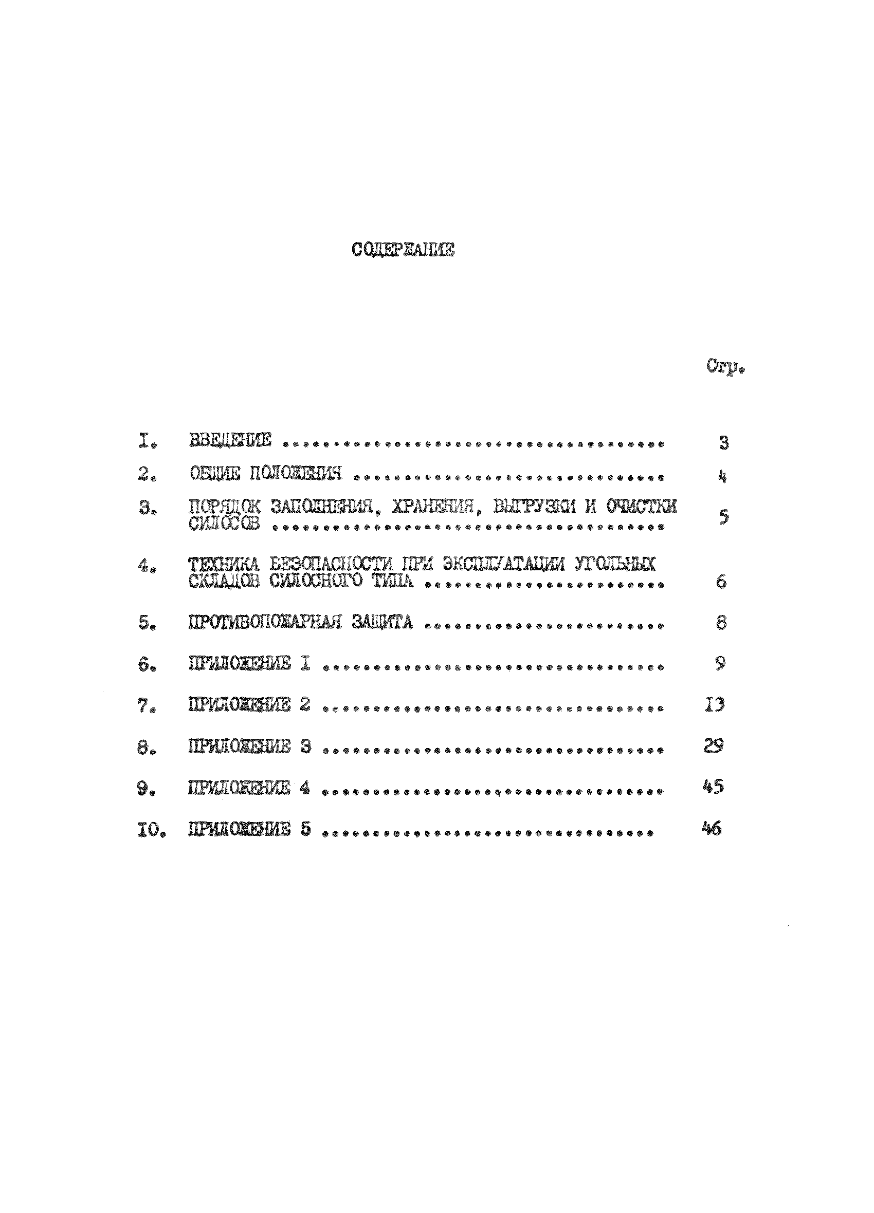 | Оглавление: | 1. Введение 2. Общие положения 3. Порядок заполнения, хранения, выгрузки и очистки силосов 4. Техника безопасности при эксплуатации угольных складов силосного типа 5. Противопожарная защита Приложение 1 Приложение 2 Приложение 3 Приложение 4 Приложение 5 |