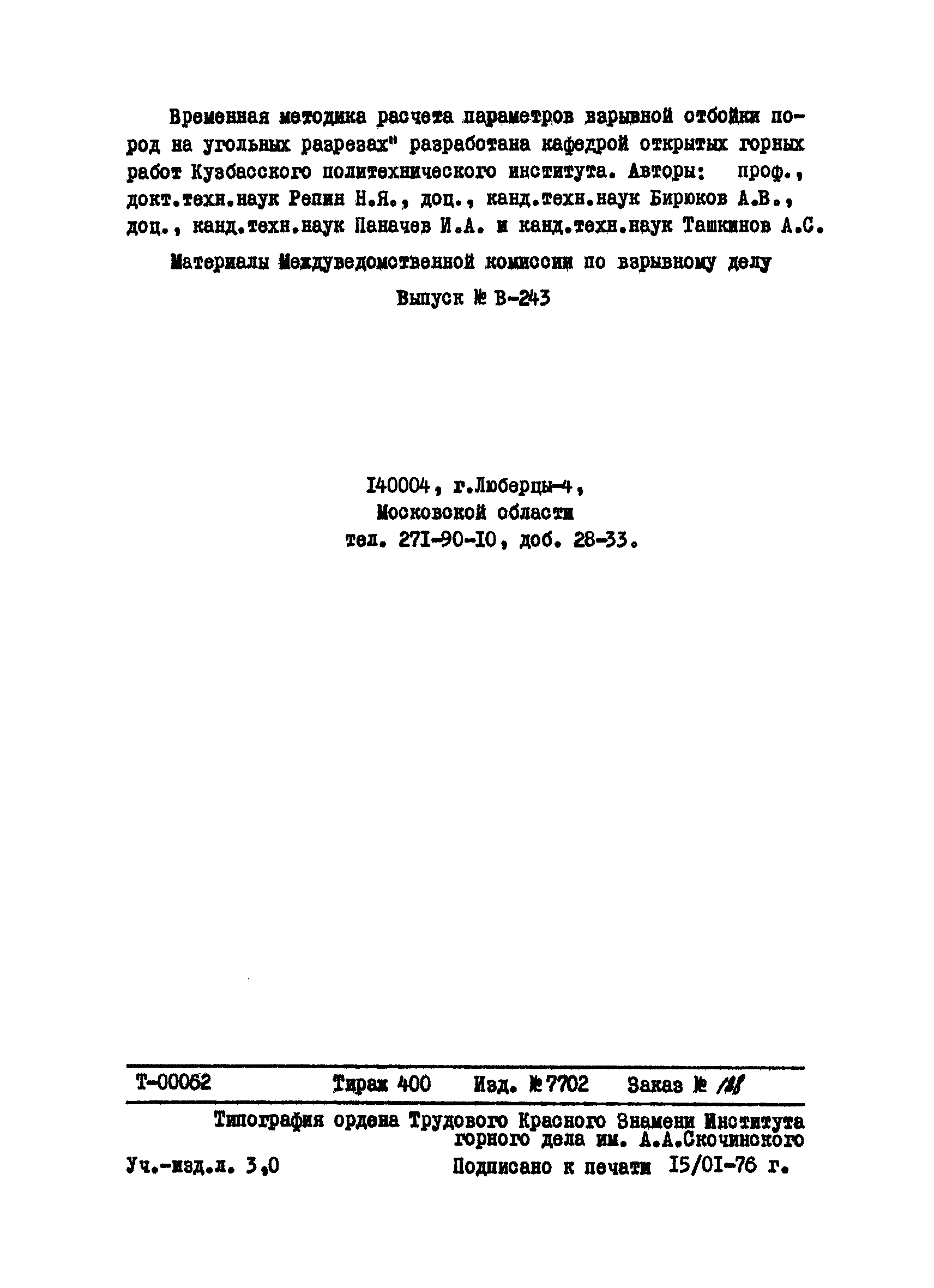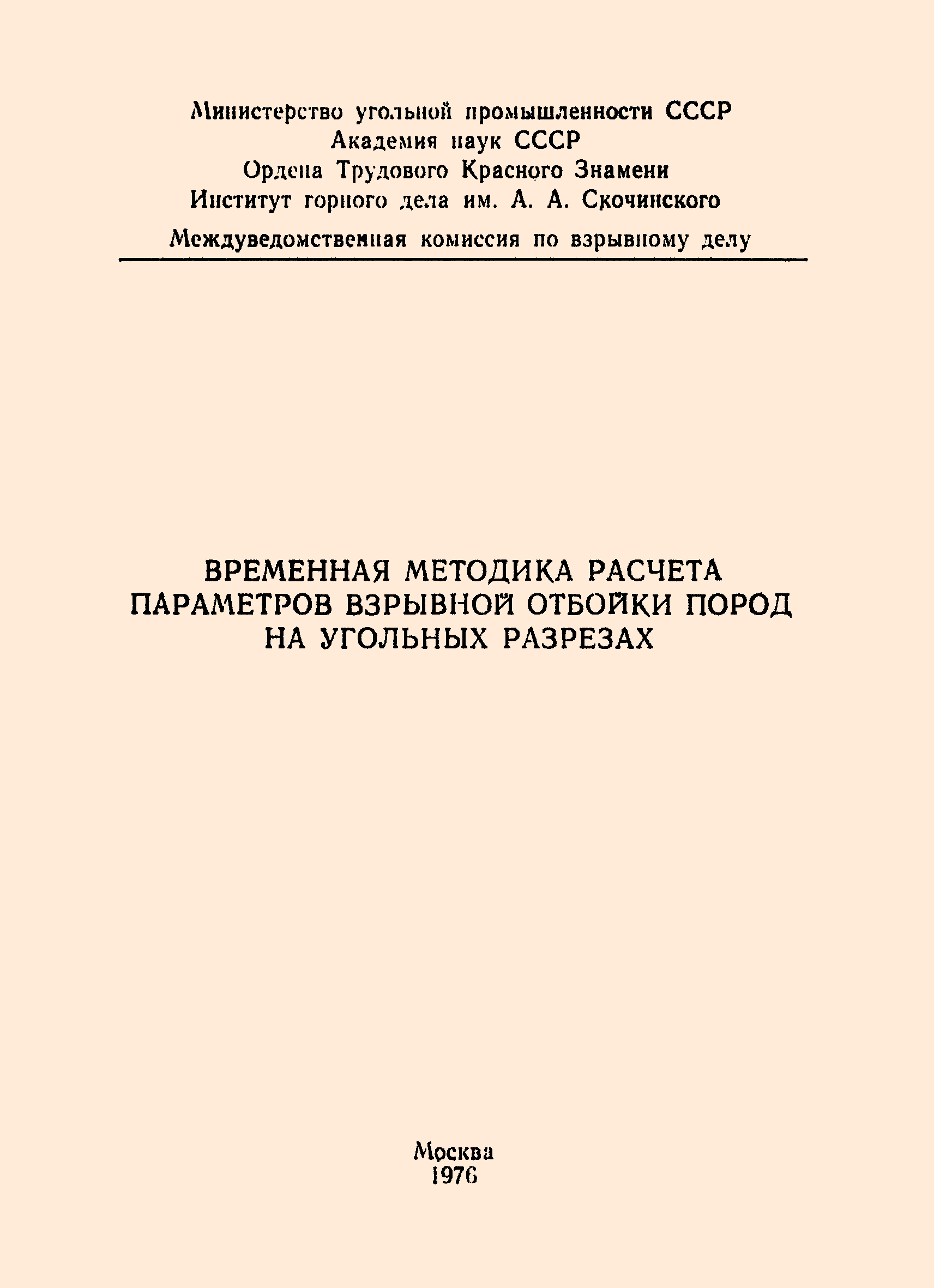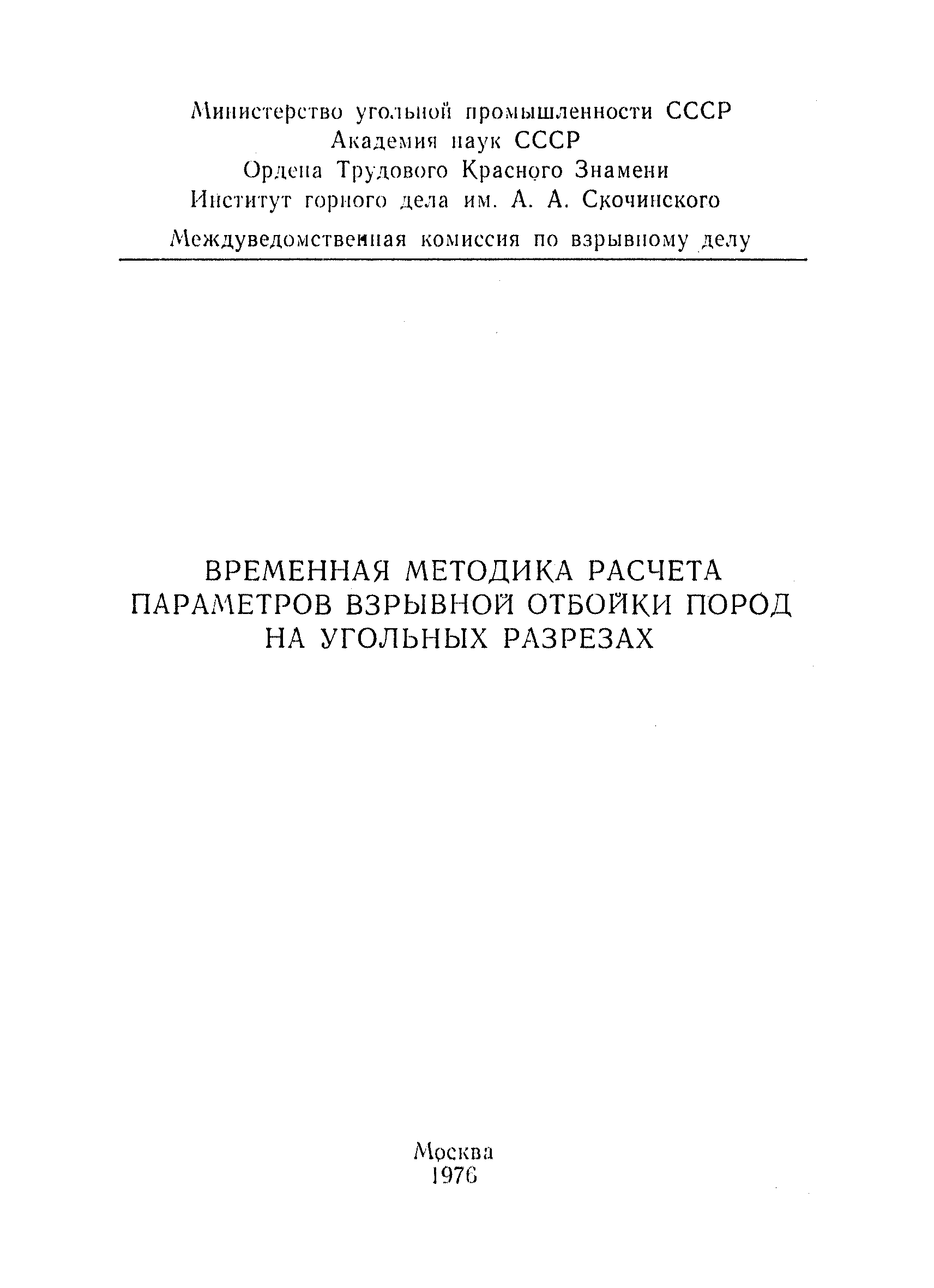 | Название рус.: | Временная методика расчета параметров взрывной отбойки пород на угольных разрезах |