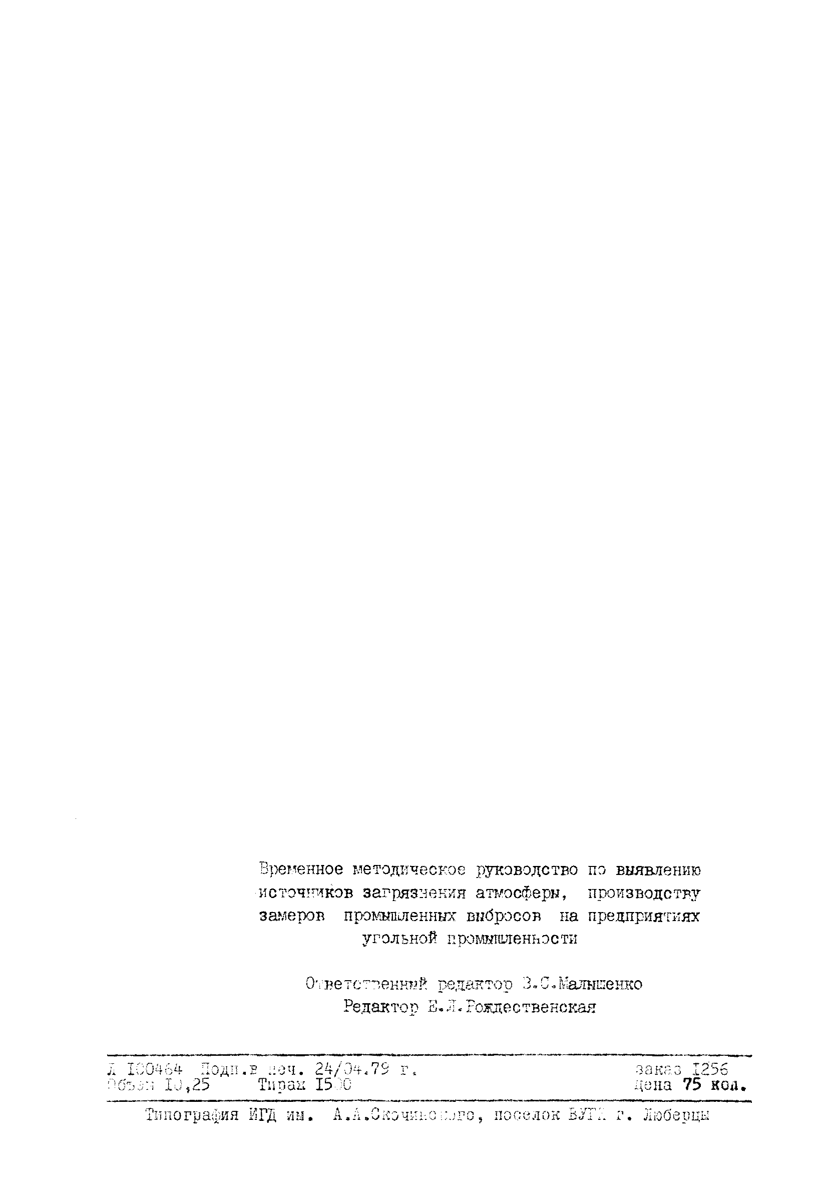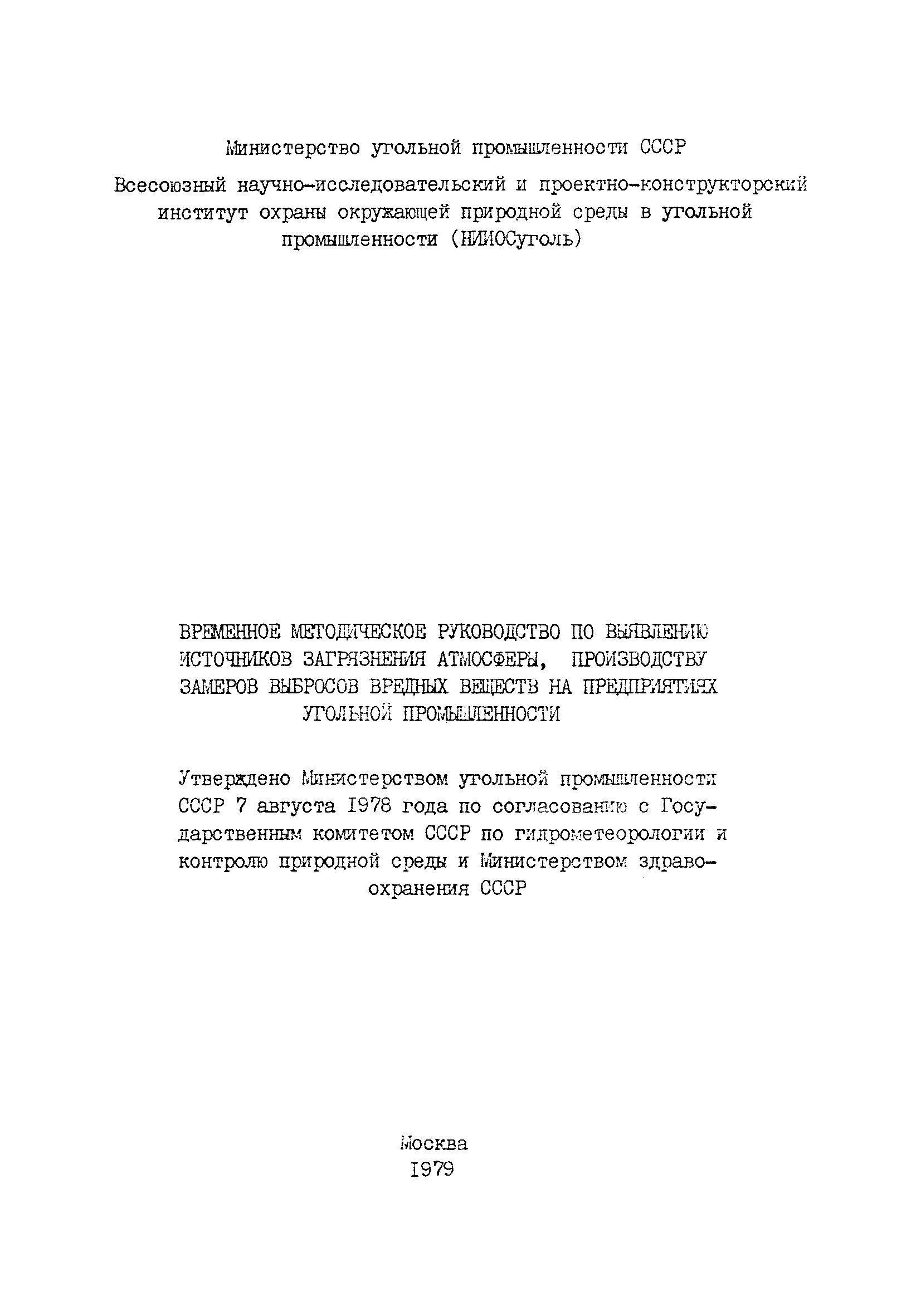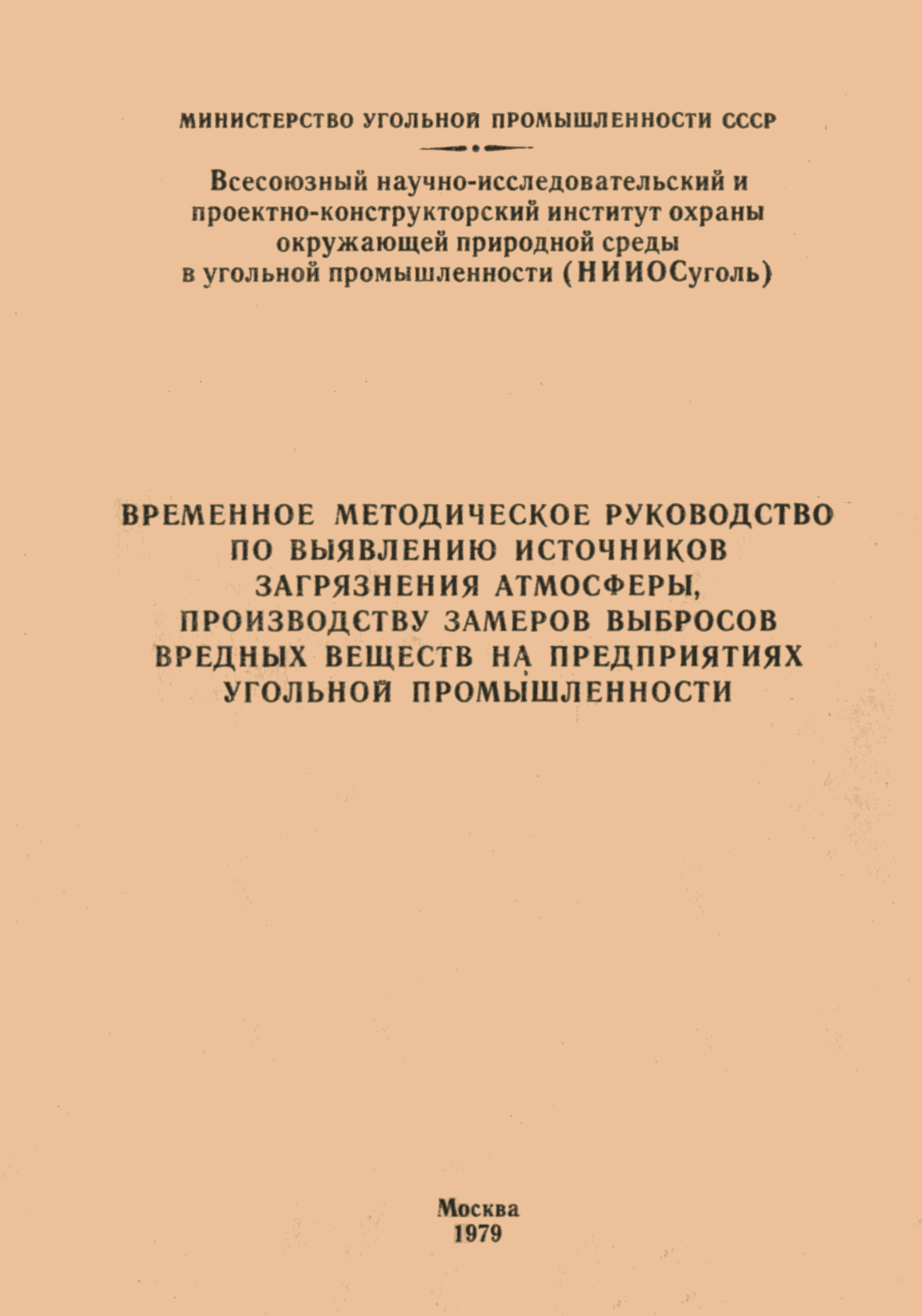 | Название рус.: | Временное методическое руководство по выявлению источников загрязнения атмосферы, производству замеров выбросов вредных веществ на предприятиях угольной промышленности |