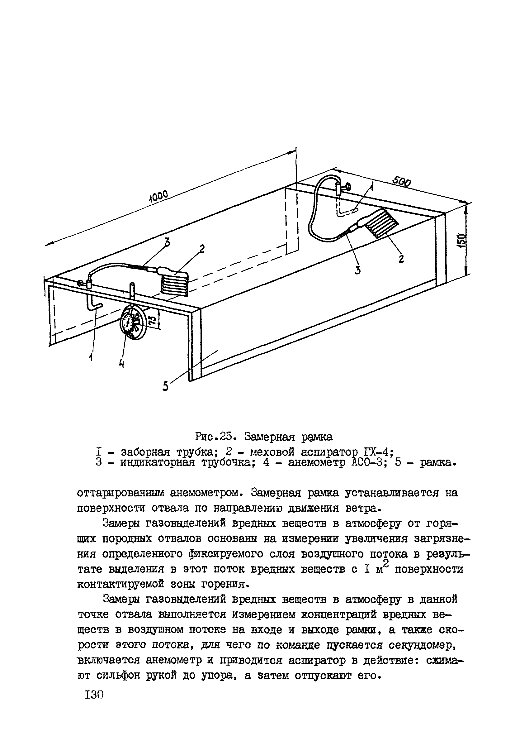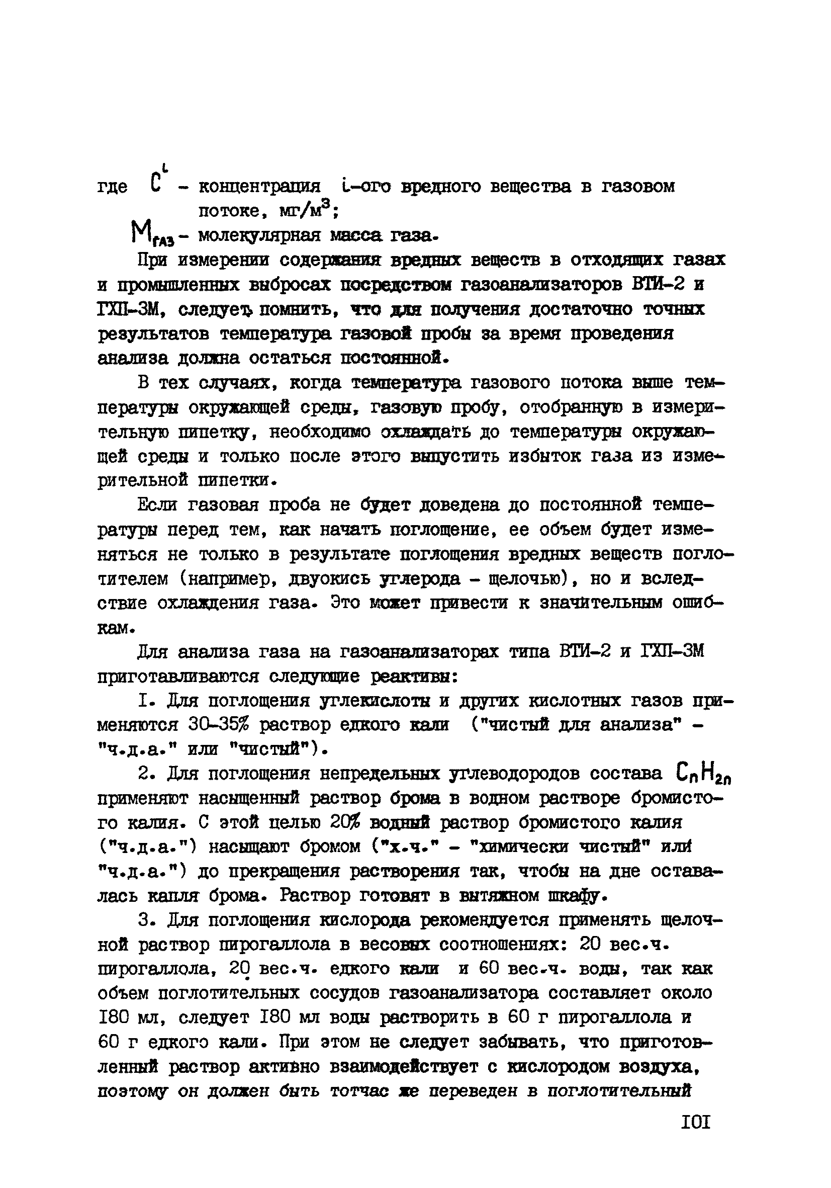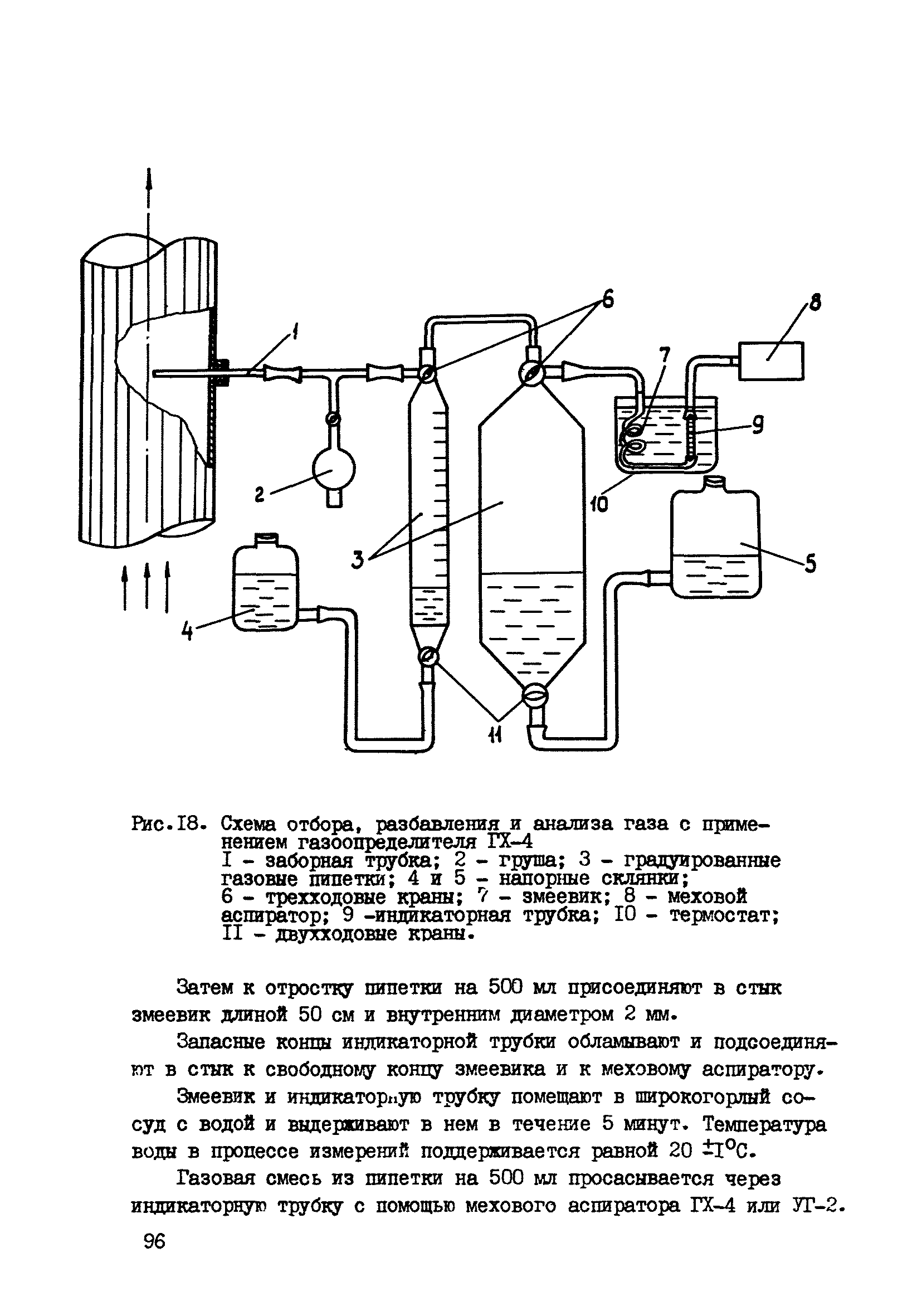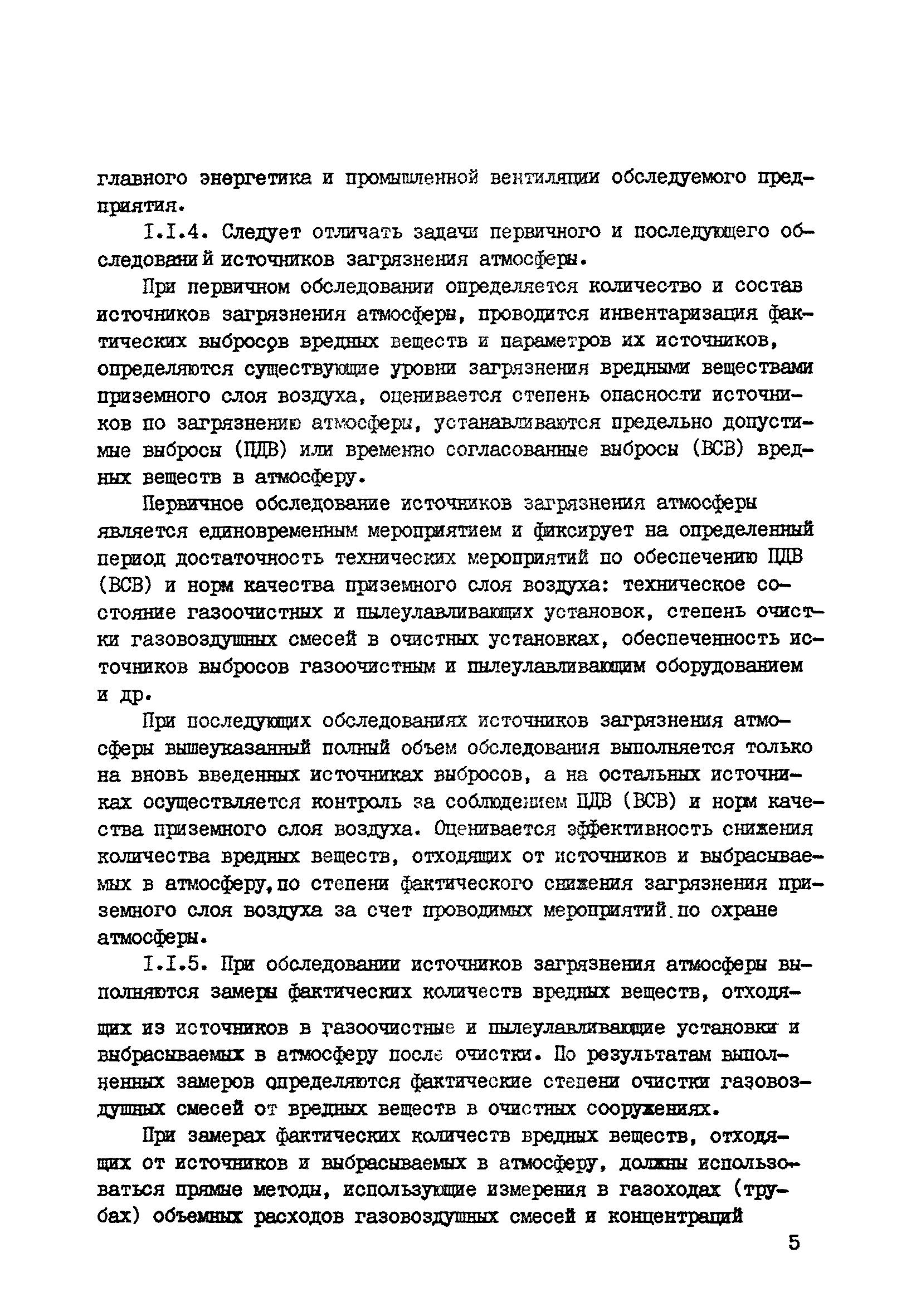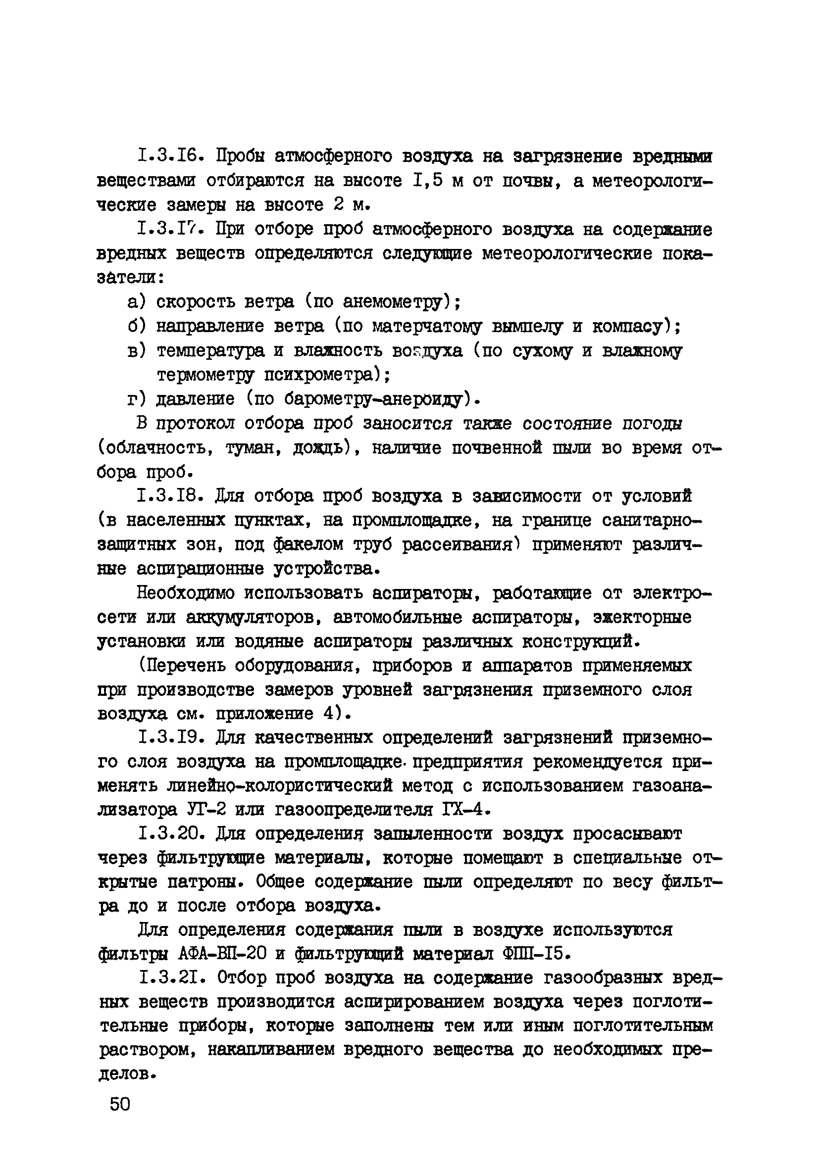 | Оглавление: | 1. Инструктивно-методические указания по выявлению источников загрязнения атмосферы, производству замеров выбросов вредных веществ и загрязнения атмосферного воздуха 1.1. Выявление источников загрязнения атмосферы, инвентаризация и контроль количества выбросов вредных веществ и качества атмосферного воздуха 1.2. Организация и производство замеров количества выбросов вредных веществ в атмосферу 1.3. Организация и производство замеров уровней загрязнения приземного слоя воздуха в зонах рассеивания промышленных выбросов 2. Методики и оборудование для производства замером вредных веществ, отходящих от источника, промышленных выбросов в атмосферу 2.1. Измерение температуры отходящих газов и промышленных выбросов 2.1.1. Измерение температуры газовых потоков техническим стеклянными термометрами 2.1.2. Измерение температуры газовых потоков термометрами сопротивления 2.1.3. Измерение температуры газовых потоков термоэлектрическими пирометрами (термопарами) 2.2. Измерение влажности отходящих газов и промышленных выбросов 2.2.1. Измерение влажности газовых потоков абсолютным весовым методом 2.2.2. Измерение влажности газовых потоков по разности температур сухого и влажного термометров 2.3. Измерение скорости газовых потоков 2.3.1. Измерение скорости незапыленных газовых потоков анемометрами 2.3.2. Измерение скорости давлений газовых потоков с применением пневмометрических трубок 2.4. Измерение запыленности газовых потоков 2.4.1. Общие положения 2.4.2. Аппаратура для измерения запыленности газов методом внешней фильтрации 2.4.3. Методика измерения запыленности газов с применением простой заборной трубки и внешней фильтрации 2.4.4. Аппаратура для измерения запыленности газов методом внутренней фильтрации 2.4.5. Методика измерения запыленности газов с применением пылезаборной трубки нулевого цикла с внутренней фильтрацией 2.5. Измерение концентраций вредных веществ в отходящих газах и промышленных выбросах 2.5.1. Общие положения 2.5.2. Измерение концентрации вредных веществ в газовых потоках газоанализаторами УГ-2 и газоопределителями ГХ-4 2.5.3. Измерение концентрации вредных веществ в газовых потоках газоанализаторами ГХП-3М и ВТИ-2 2.5.4. Измерение концентрации вредных веществ в газовых потоках газоанализаторами ТГ-5 и ФВ-7633М 2.5.5. Оборудование для отбора газовых проб из газоходов при измерении концентраций вредных веществ в газовых потоках методами химического анализа 2.5.6. Определение концентрации сернистого ангидрида (нефелометрический метод) 2.5.7. Определение концентрации сернистого ангидрида (йодометрический метод) 2.5.8. Определение концентрации окислов азота (колориметрический метод) 2.5.9. Определение концентрации сернистого ангидрида и окислов азота при их совместном присутствии (титриметрический метод) 2.6. Методика и оборудование для измерения количества вредных веществ, выделяемых горящими породными отвалами Приложения |