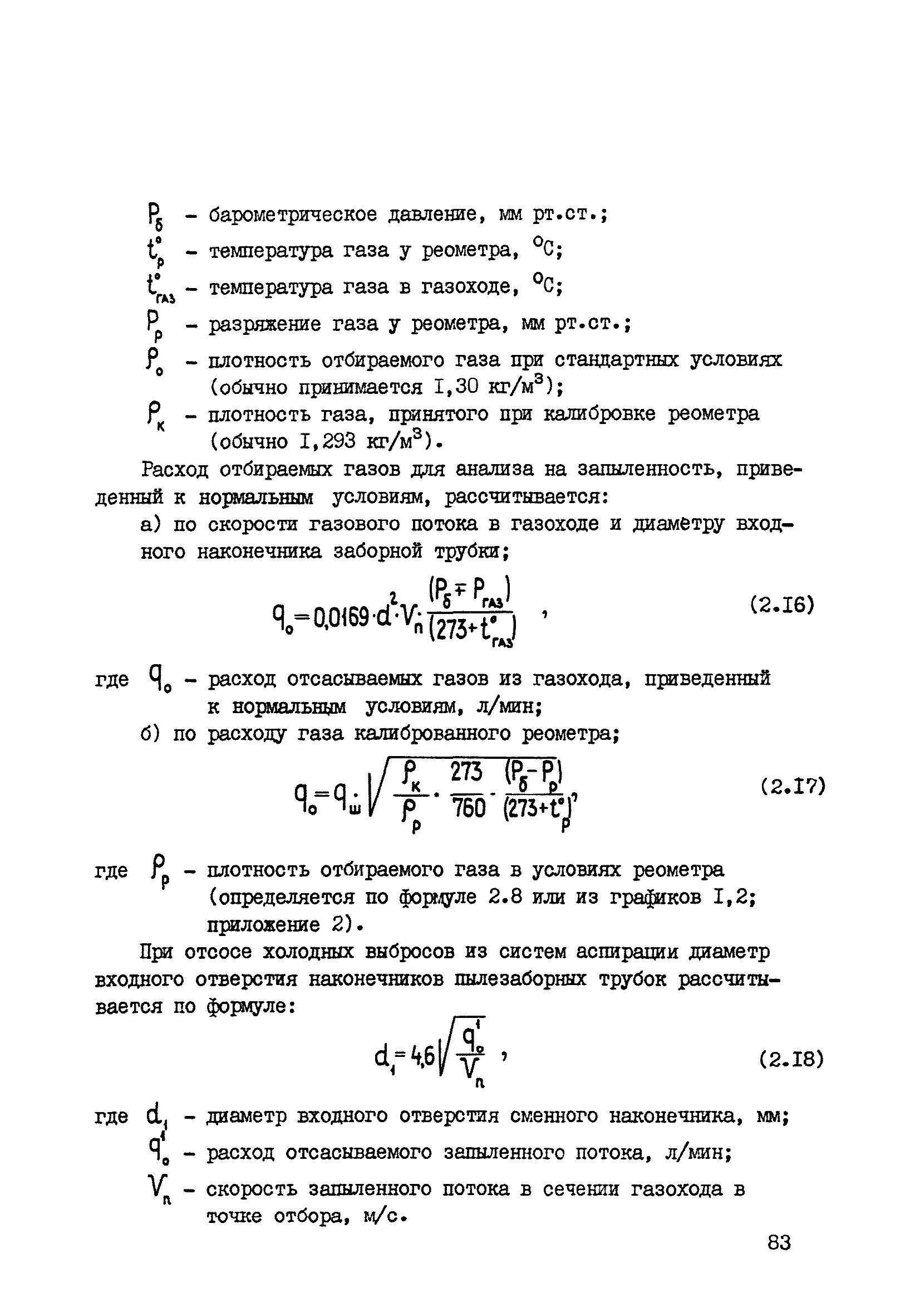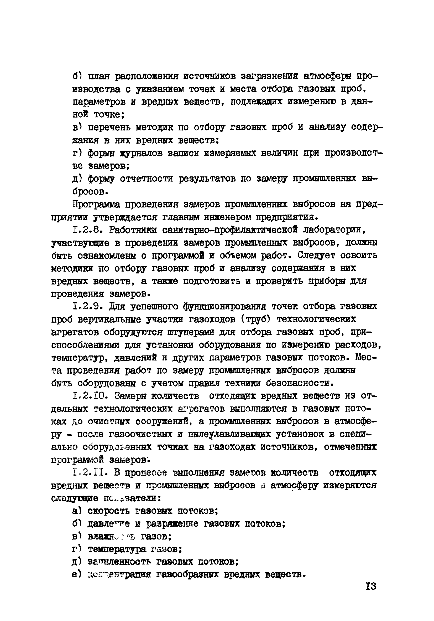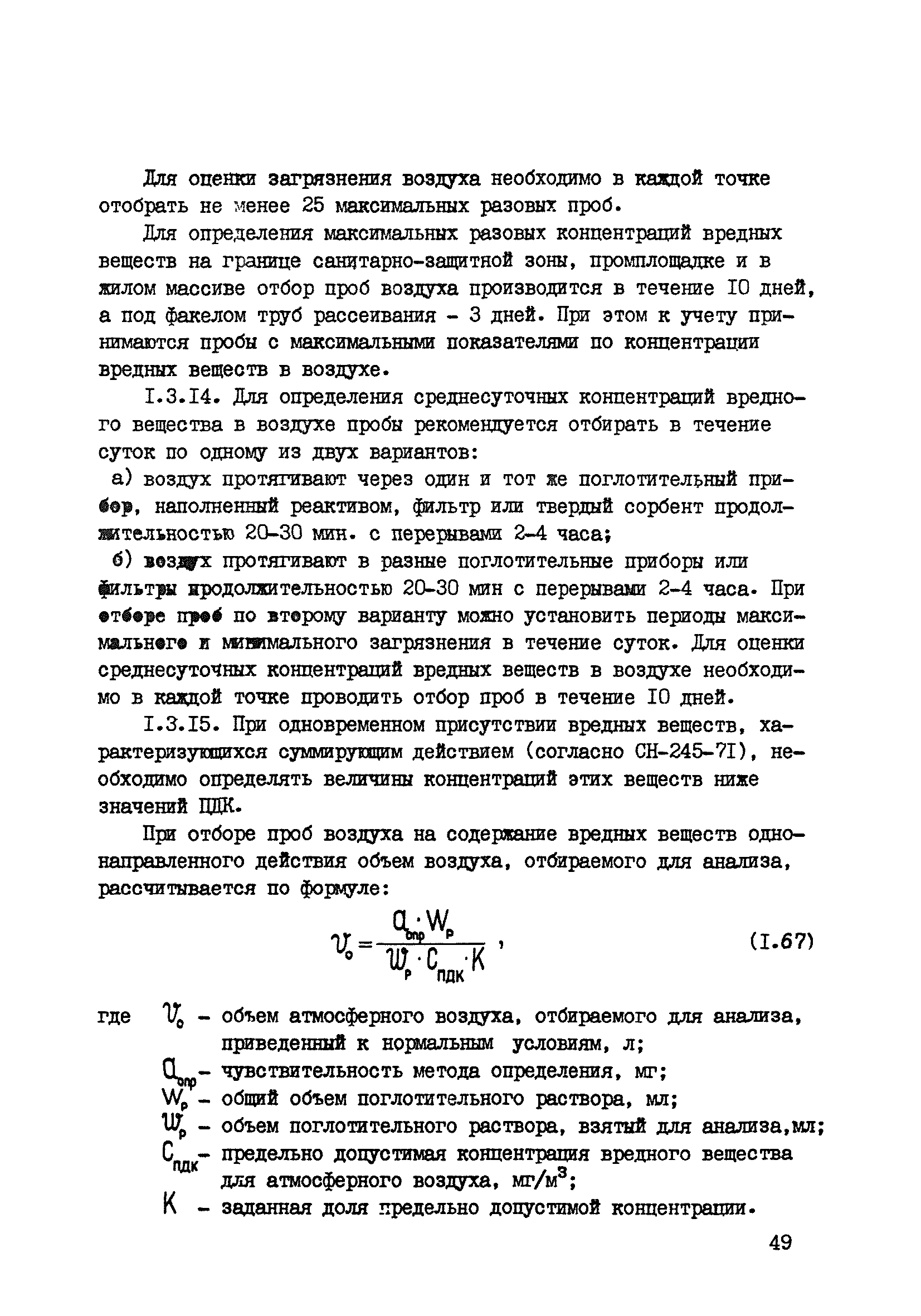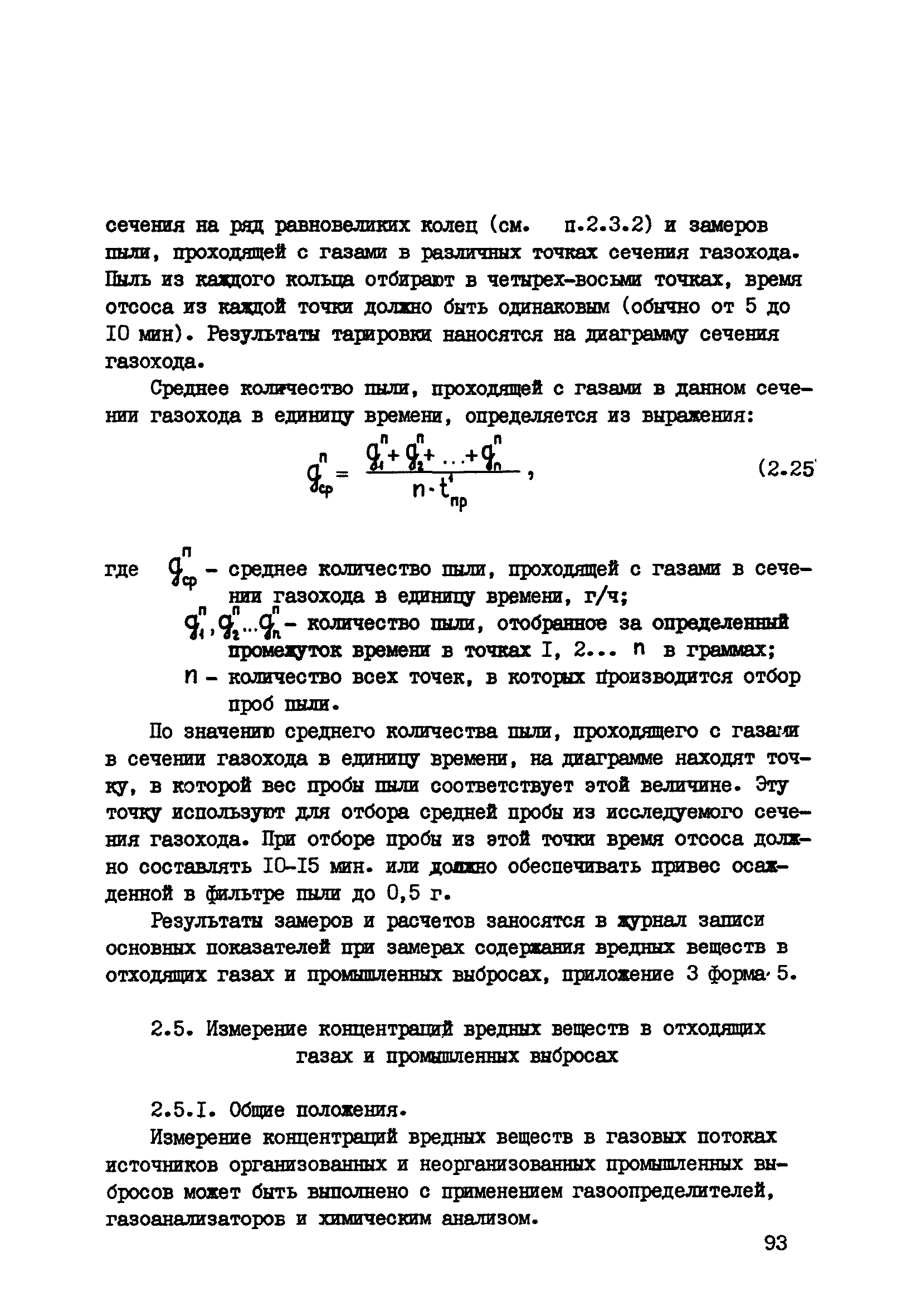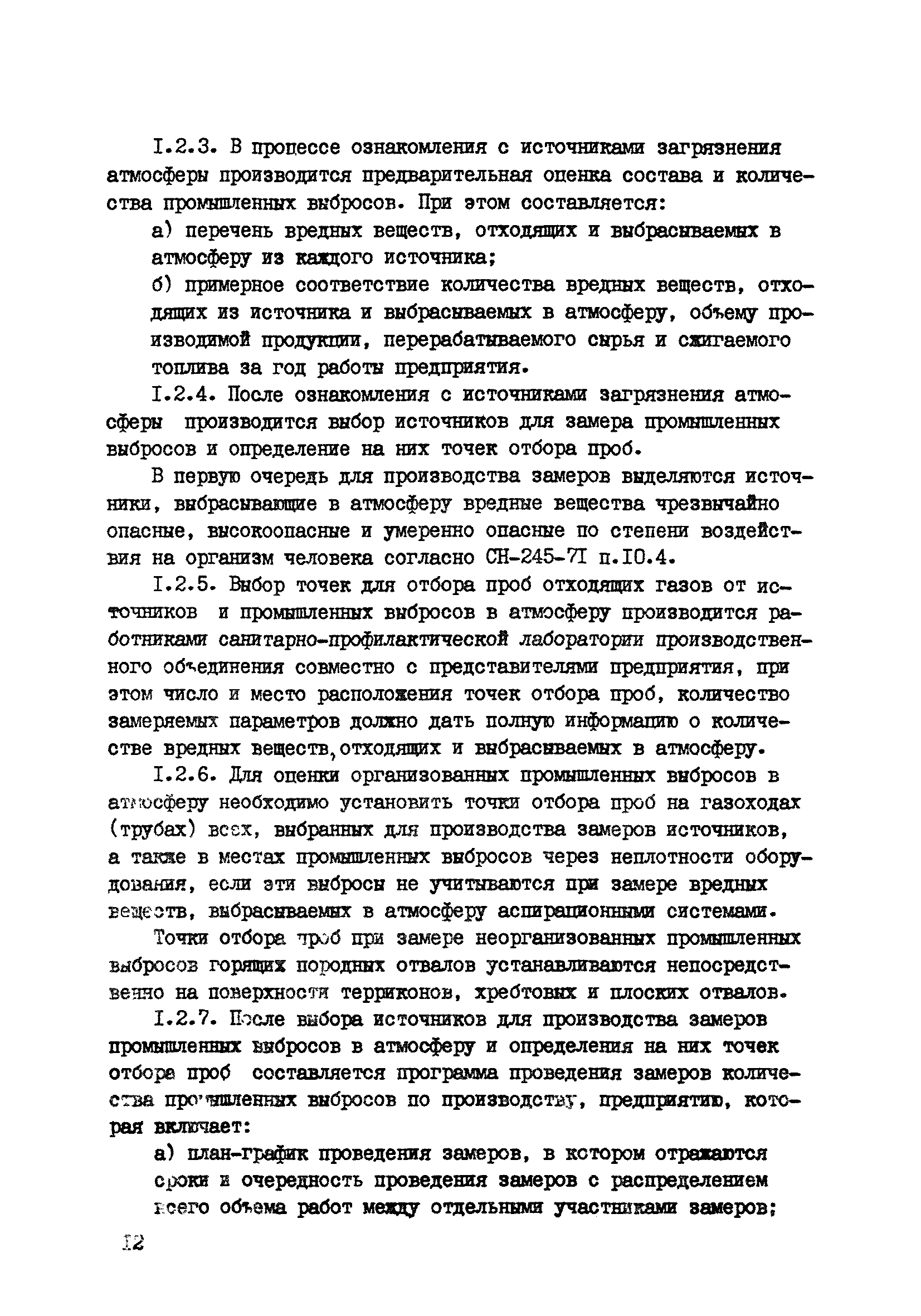 | Оглавление: | 1. Инструктивно-методические указания по выявлению источников загрязнения атмосферы, производству замеров выбросов вредных веществ и загрязнения атмосферного воздуха 1.1. Выявление источников загрязнения атмосферы, инвентаризация и контроль количества выбросов вредных веществ и качества атмосферного воздуха 1.2. Организация и производство замеров количества выбросов вредных веществ в атмосферу 1.3. Организация и производство замеров уровней загрязнения приземного слоя воздуха в зонах рассеивания промышленных выбросов 2. Методики и оборудование для производства замером вредных веществ, отходящих от источника, промышленных выбросов в атмосферу 2.1. Измерение температуры отходящих газов и промышленных выбросов 2.1.1. Измерение температуры газовых потоков техническим стеклянными термометрами 2.1.2. Измерение температуры газовых потоков термометрами сопротивления 2.1.3. Измерение температуры газовых потоков термоэлектрическими пирометрами (термопарами) 2.2. Измерение влажности отходящих газов и промышленных выбросов 2.2.1. Измерение влажности газовых потоков абсолютным весовым методом 2.2.2. Измерение влажности газовых потоков по разности температур сухого и влажного термометров 2.3. Измерение скорости газовых потоков 2.3.1. Измерение скорости незапыленных газовых потоков анемометрами 2.3.2. Измерение скорости давлений газовых потоков с применением пневмометрических трубок 2.4. Измерение запыленности газовых потоков 2.4.1. Общие положения 2.4.2. Аппаратура для измерения запыленности газов методом внешней фильтрации 2.4.3. Методика измерения запыленности газов с применением простой заборной трубки и внешней фильтрации 2.4.4. Аппаратура для измерения запыленности газов методом внутренней фильтрации 2.4.5. Методика измерения запыленности газов с применением пылезаборной трубки нулевого цикла с внутренней фильтрацией 2.5. Измерение концентраций вредных веществ в отходящих газах и промышленных выбросах 2.5.1. Общие положения 2.5.2. Измерение концентрации вредных веществ в газовых потоках газоанализаторами УГ-2 и газоопределителями ГХ-4 2.5.3. Измерение концентрации вредных веществ в газовых потоках газоанализаторами ГХП-3М и ВТИ-2 2.5.4. Измерение концентрации вредных веществ в газовых потоках газоанализаторами ТГ-5 и ФВ-7633М 2.5.5. Оборудование для отбора газовых проб из газоходов при измерении концентраций вредных веществ в газовых потоках методами химического анализа 2.5.6. Определение концентрации сернистого ангидрида (нефелометрический метод) 2.5.7. Определение концентрации сернистого ангидрида (йодометрический метод) 2.5.8. Определение концентрации окислов азота (колориметрический метод) 2.5.9. Определение концентрации сернистого ангидрида и окислов азота при их совместном присутствии (титриметрический метод) 2.6. Методика и оборудование для измерения количества вредных веществ, выделяемых горящими породными отвалами Приложения |