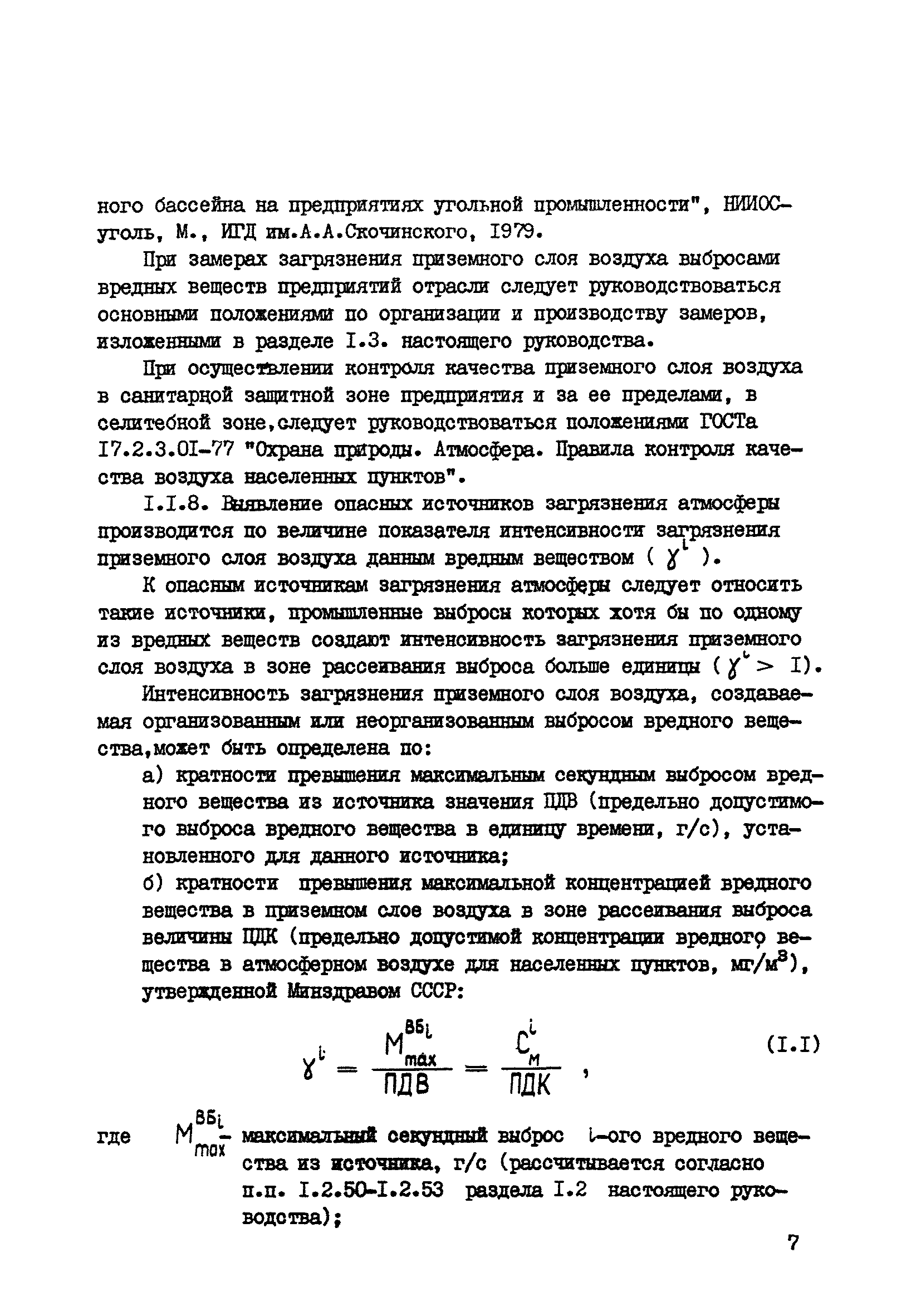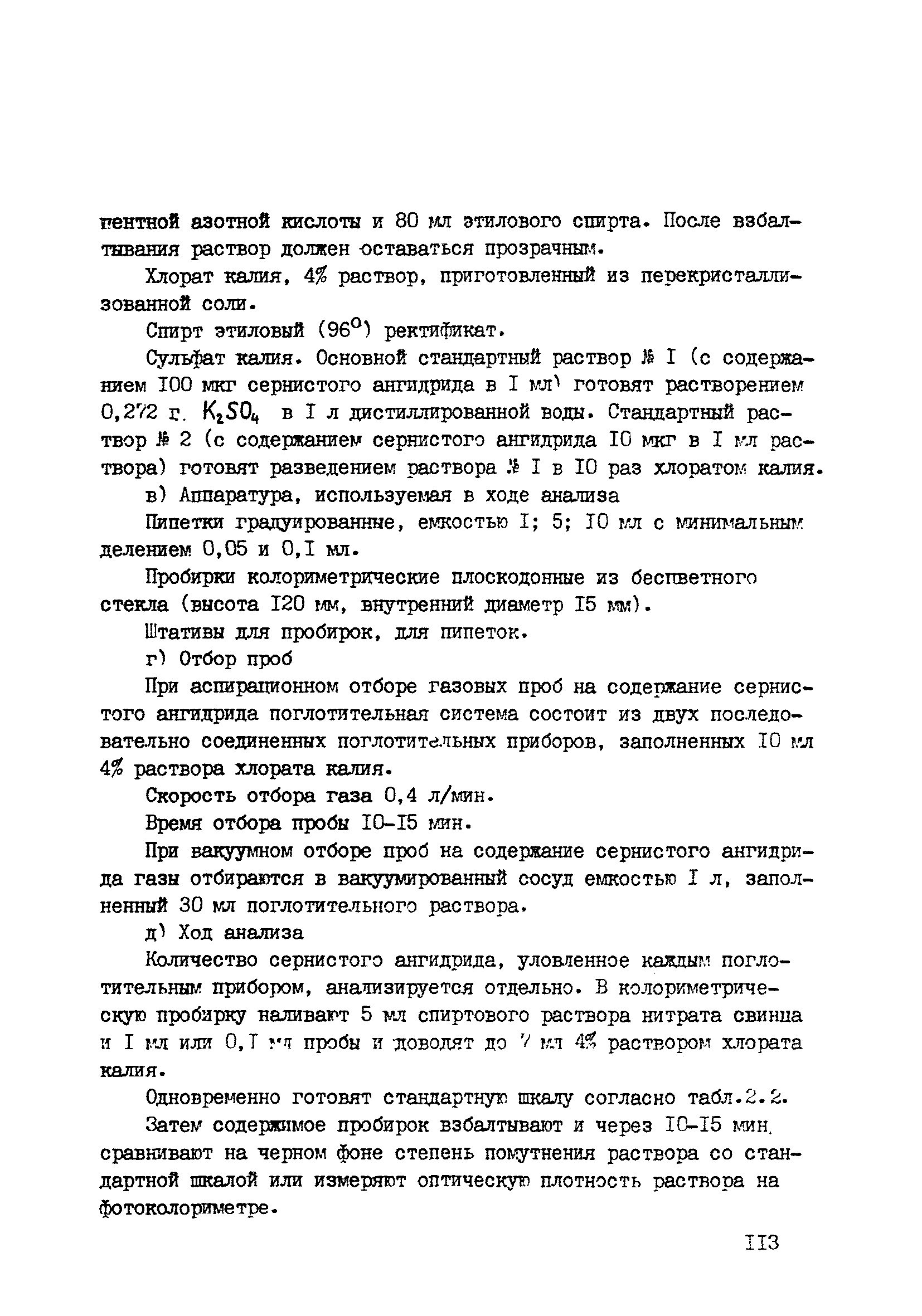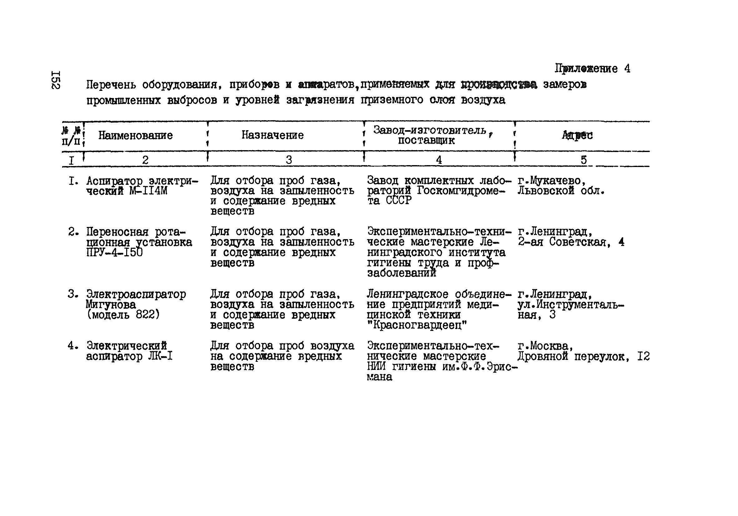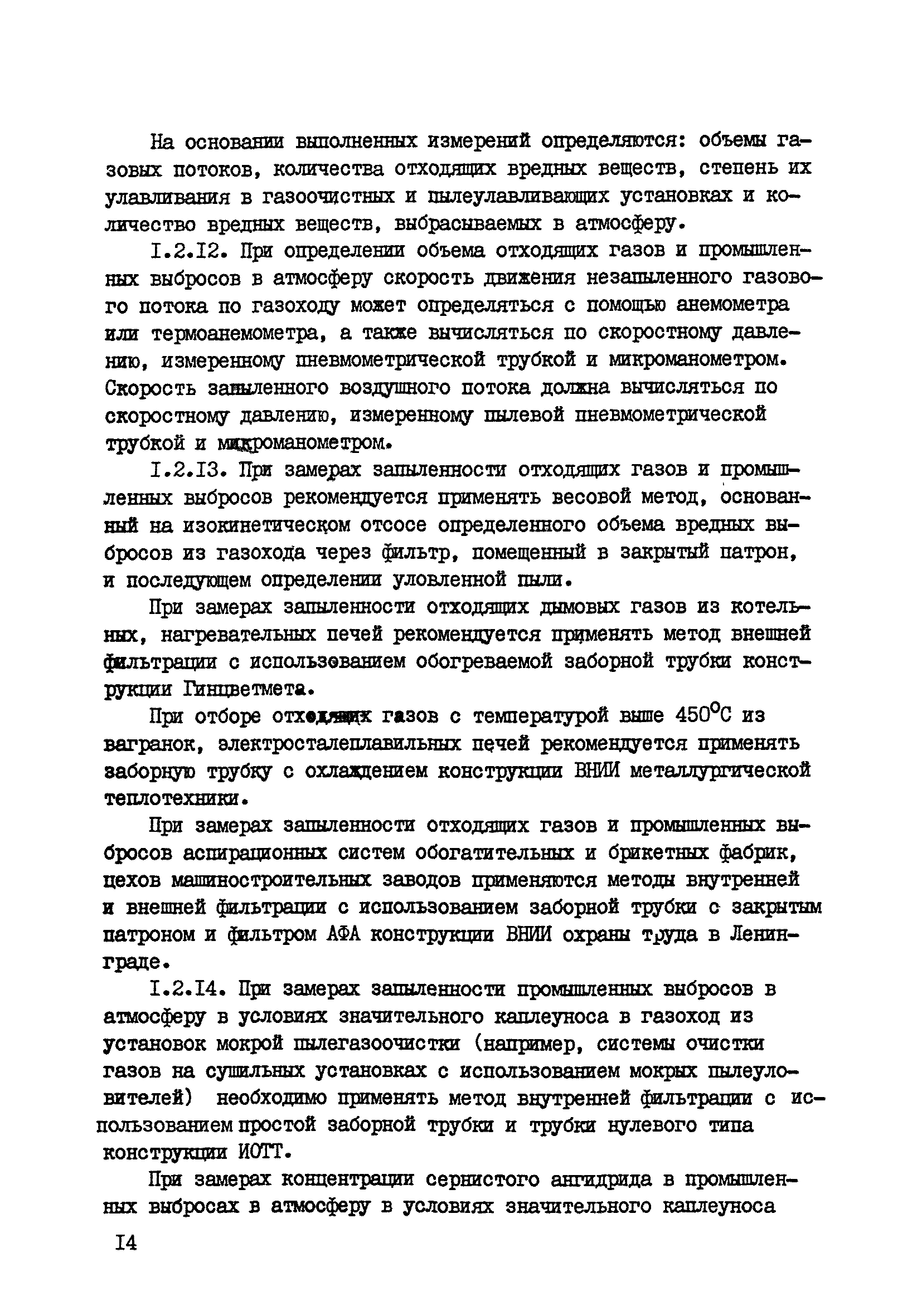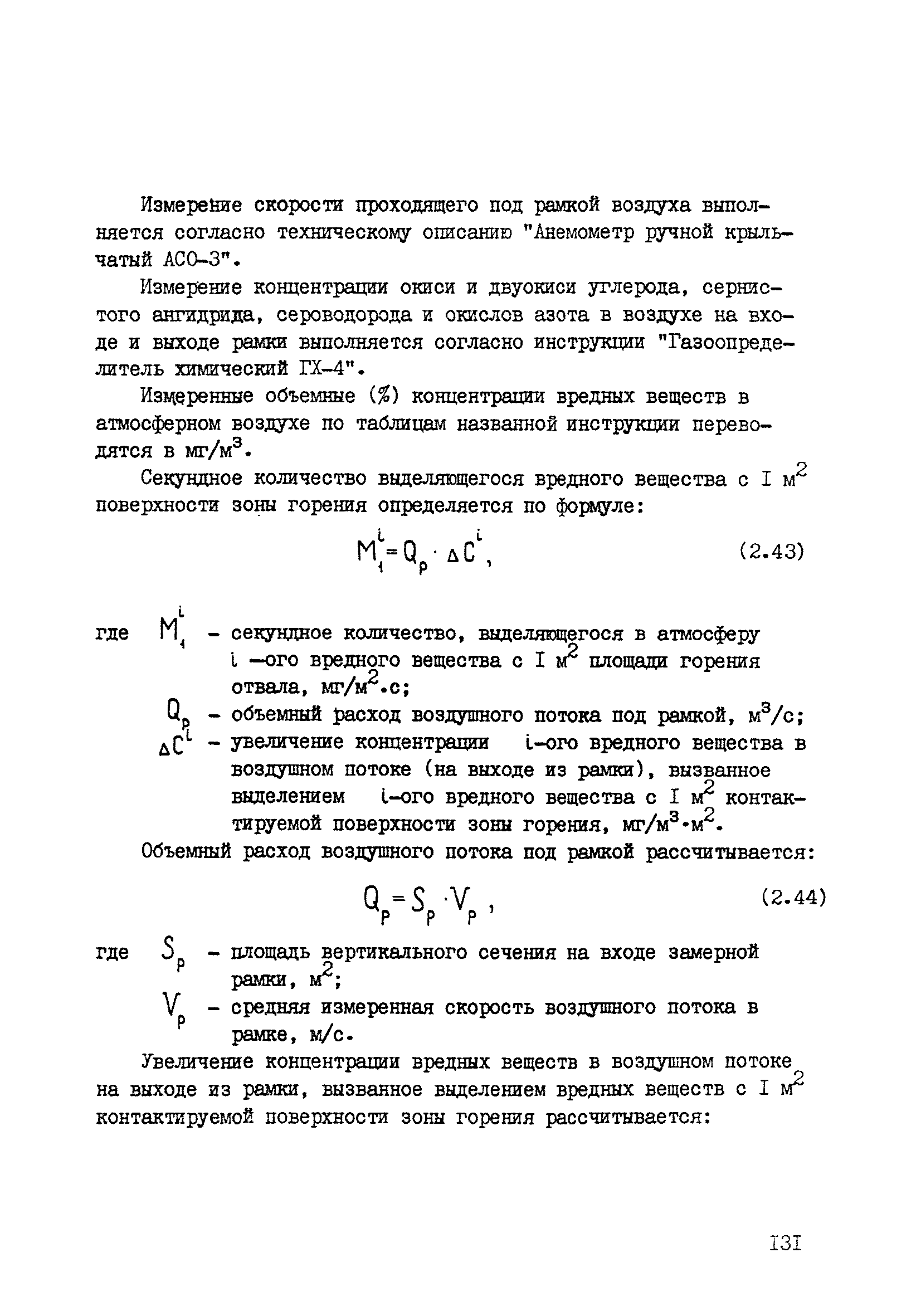 | Оглавление: | 1. Инструктивно-методические указания по выявлению источников загрязнения атмосферы, производству замеров выбросов вредных веществ и загрязнения атмосферного воздуха 1.1. Выявление источников загрязнения атмосферы, инвентаризация и контроль количества выбросов вредных веществ и качества атмосферного воздуха 1.2. Организация и производство замеров количества выбросов вредных веществ в атмосферу 1.3. Организация и производство замеров уровней загрязнения приземного слоя воздуха в зонах рассеивания промышленных выбросов 2. Методики и оборудование для производства замером вредных веществ, отходящих от источника, промышленных выбросов в атмосферу 2.1. Измерение температуры отходящих газов и промышленных выбросов 2.1.1. Измерение температуры газовых потоков техническим стеклянными термометрами 2.1.2. Измерение температуры газовых потоков термометрами сопротивления 2.1.3. Измерение температуры газовых потоков термоэлектрическими пирометрами (термопарами) 2.2. Измерение влажности отходящих газов и промышленных выбросов 2.2.1. Измерение влажности газовых потоков абсолютным весовым методом 2.2.2. Измерение влажности газовых потоков по разности температур сухого и влажного термометров 2.3. Измерение скорости газовых потоков 2.3.1. Измерение скорости незапыленных газовых потоков анемометрами 2.3.2. Измерение скорости давлений газовых потоков с применением пневмометрических трубок 2.4. Измерение запыленности газовых потоков 2.4.1. Общие положения 2.4.2. Аппаратура для измерения запыленности газов методом внешней фильтрации 2.4.3. Методика измерения запыленности газов с применением простой заборной трубки и внешней фильтрации 2.4.4. Аппаратура для измерения запыленности газов методом внутренней фильтрации 2.4.5. Методика измерения запыленности газов с применением пылезаборной трубки нулевого цикла с внутренней фильтрацией 2.5. Измерение концентраций вредных веществ в отходящих газах и промышленных выбросах 2.5.1. Общие положения 2.5.2. Измерение концентрации вредных веществ в газовых потоках газоанализаторами УГ-2 и газоопределителями ГХ-4 2.5.3. Измерение концентрации вредных веществ в газовых потоках газоанализаторами ГХП-3М и ВТИ-2 2.5.4. Измерение концентрации вредных веществ в газовых потоках газоанализаторами ТГ-5 и ФВ-7633М 2.5.5. Оборудование для отбора газовых проб из газоходов при измерении концентраций вредных веществ в газовых потоках методами химического анализа 2.5.6. Определение концентрации сернистого ангидрида (нефелометрический метод) 2.5.7. Определение концентрации сернистого ангидрида (йодометрический метод) 2.5.8. Определение концентрации окислов азота (колориметрический метод) 2.5.9. Определение концентрации сернистого ангидрида и окислов азота при их совместном присутствии (титриметрический метод) 2.6. Методика и оборудование для измерения количества вредных веществ, выделяемых горящими породными отвалами Приложения |