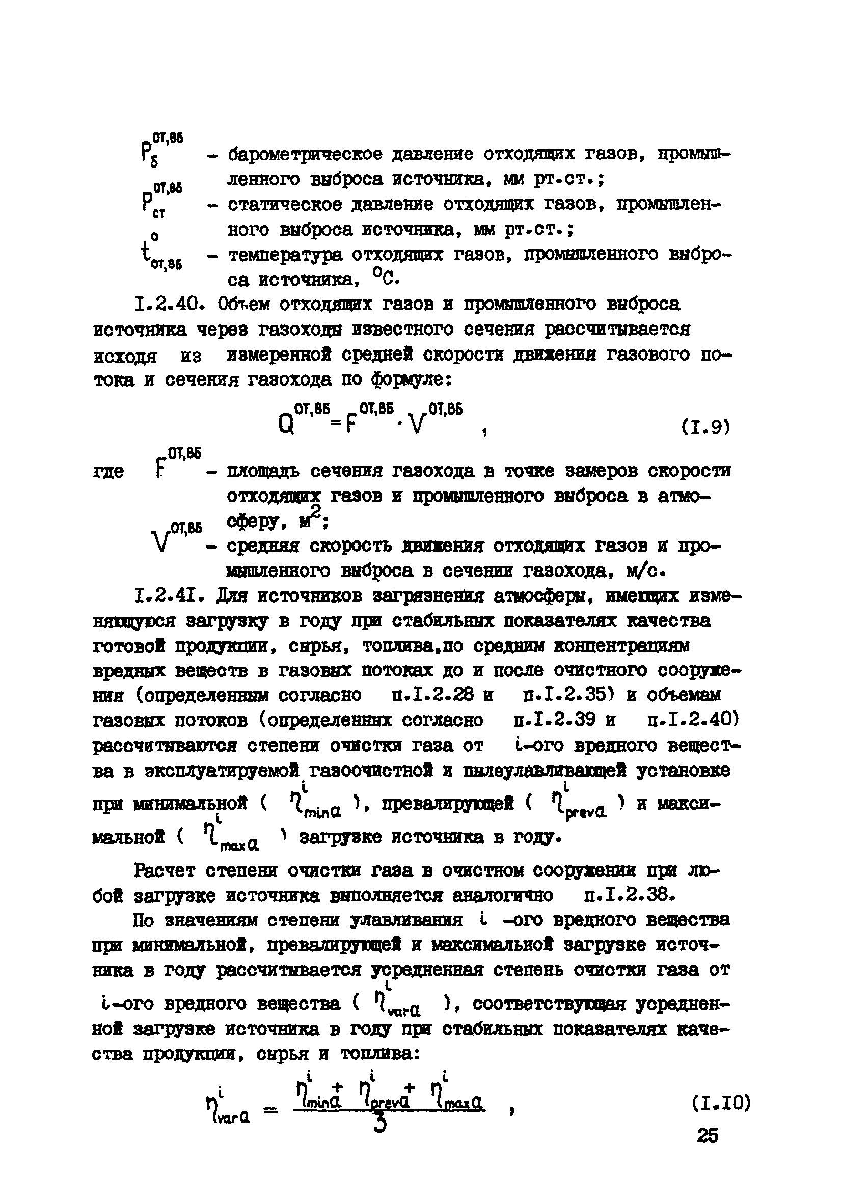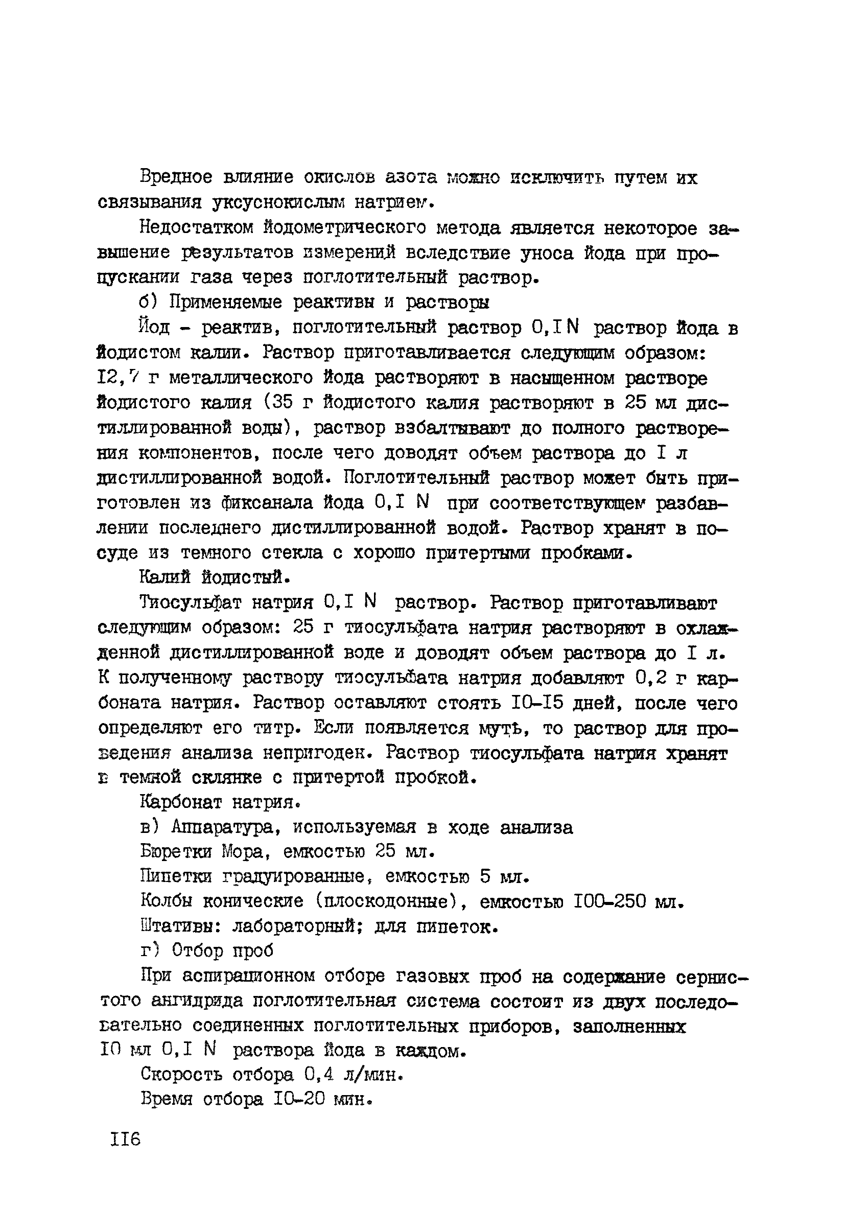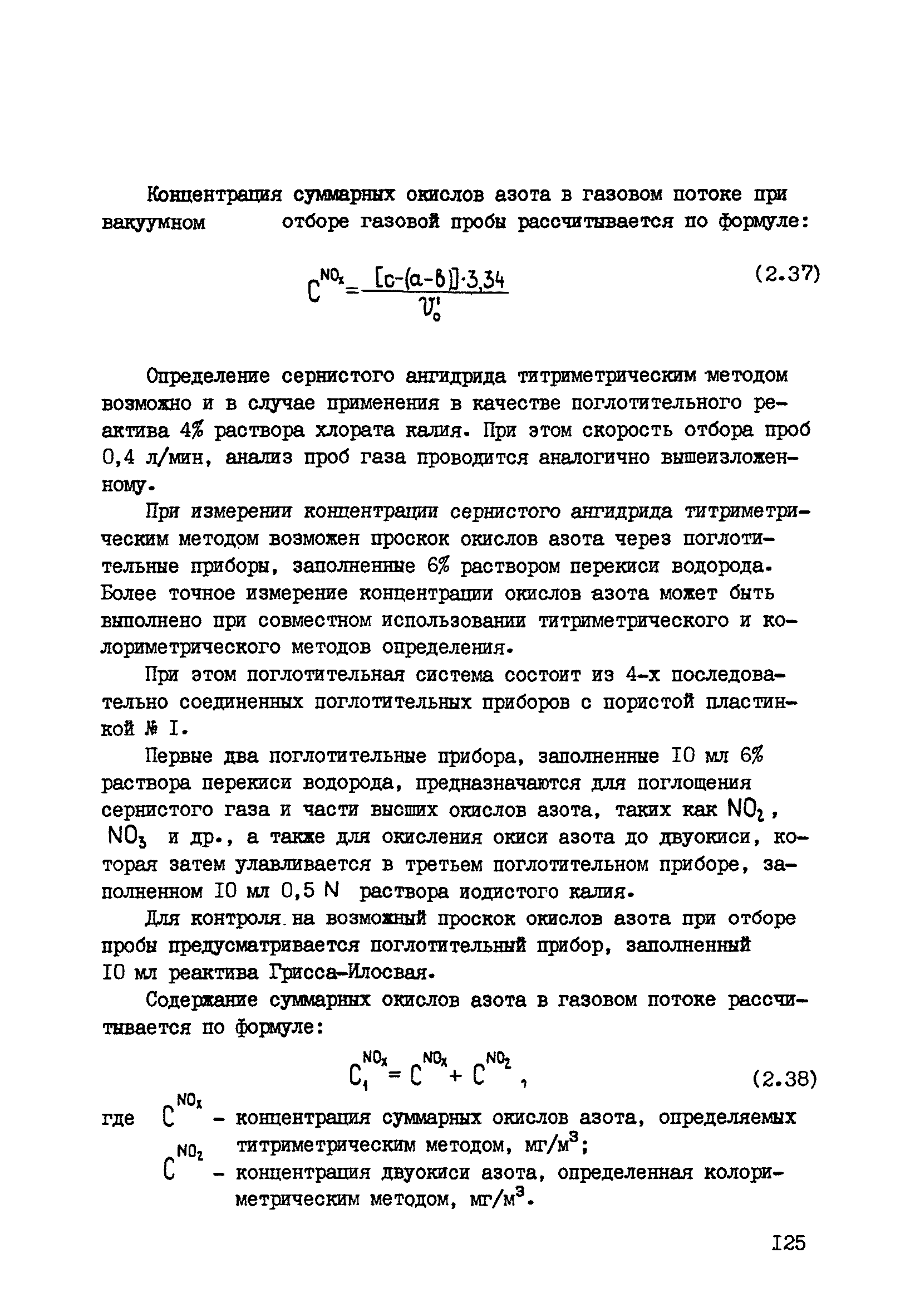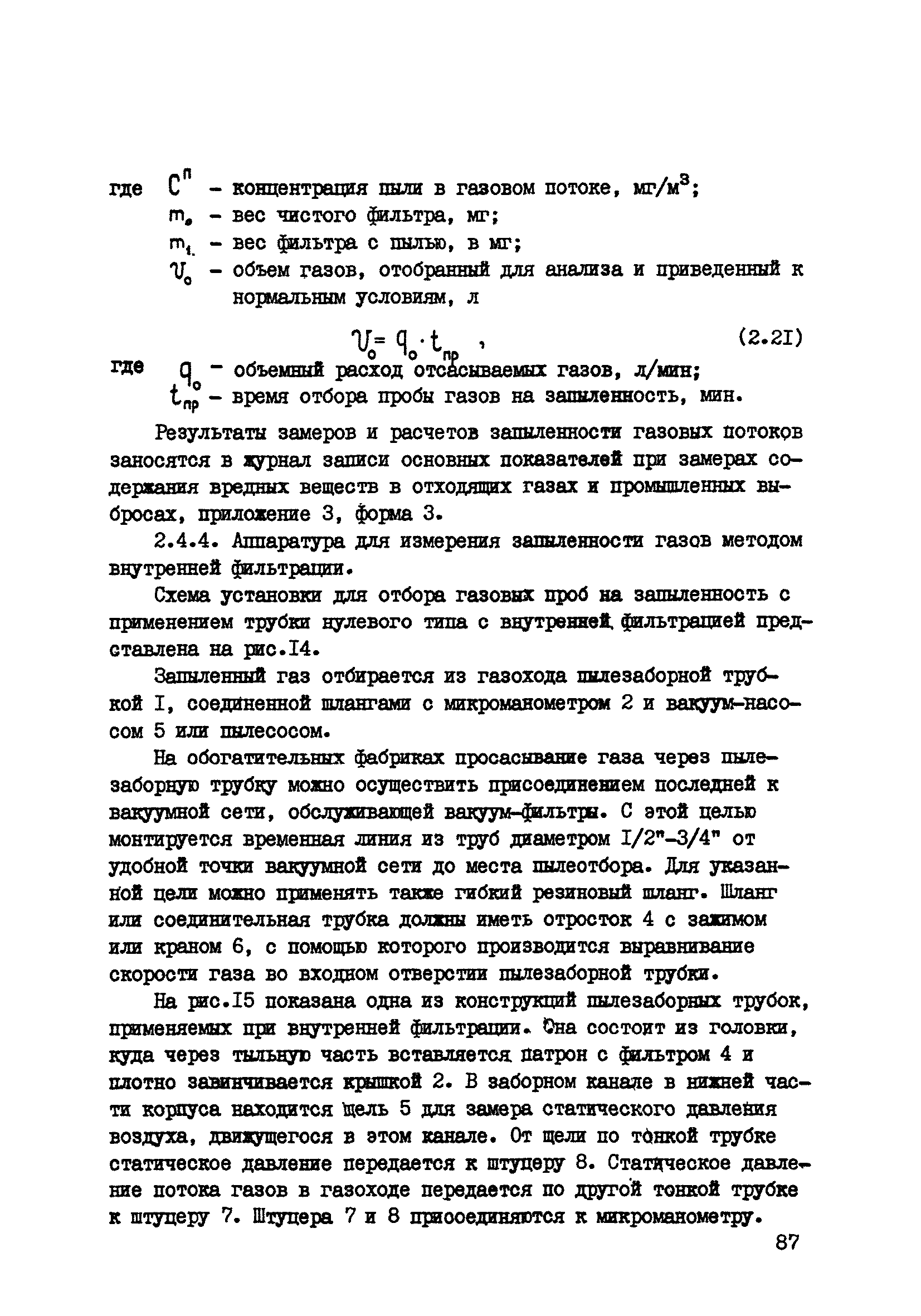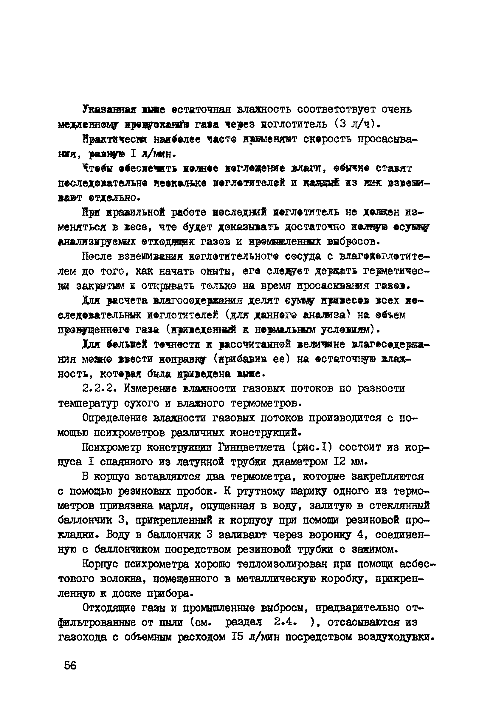 | Оглавление: | 1. Инструктивно-методические указания по выявлению источников загрязнения атмосферы, производству замеров выбросов вредных веществ и загрязнения атмосферного воздуха 1.1. Выявление источников загрязнения атмосферы, инвентаризация и контроль количества выбросов вредных веществ и качества атмосферного воздуха 1.2. Организация и производство замеров количества выбросов вредных веществ в атмосферу 1.3. Организация и производство замеров уровней загрязнения приземного слоя воздуха в зонах рассеивания промышленных выбросов 2. Методики и оборудование для производства замером вредных веществ, отходящих от источника, промышленных выбросов в атмосферу 2.1. Измерение температуры отходящих газов и промышленных выбросов 2.1.1. Измерение температуры газовых потоков техническим стеклянными термометрами 2.1.2. Измерение температуры газовых потоков термометрами сопротивления 2.1.3. Измерение температуры газовых потоков термоэлектрическими пирометрами (термопарами) 2.2. Измерение влажности отходящих газов и промышленных выбросов 2.2.1. Измерение влажности газовых потоков абсолютным весовым методом 2.2.2. Измерение влажности газовых потоков по разности температур сухого и влажного термометров 2.3. Измерение скорости газовых потоков 2.3.1. Измерение скорости незапыленных газовых потоков анемометрами 2.3.2. Измерение скорости давлений газовых потоков с применением пневмометрических трубок 2.4. Измерение запыленности газовых потоков 2.4.1. Общие положения 2.4.2. Аппаратура для измерения запыленности газов методом внешней фильтрации 2.4.3. Методика измерения запыленности газов с применением простой заборной трубки и внешней фильтрации 2.4.4. Аппаратура для измерения запыленности газов методом внутренней фильтрации 2.4.5. Методика измерения запыленности газов с применением пылезаборной трубки нулевого цикла с внутренней фильтрацией 2.5. Измерение концентраций вредных веществ в отходящих газах и промышленных выбросах 2.5.1. Общие положения 2.5.2. Измерение концентрации вредных веществ в газовых потоках газоанализаторами УГ-2 и газоопределителями ГХ-4 2.5.3. Измерение концентрации вредных веществ в газовых потоках газоанализаторами ГХП-3М и ВТИ-2 2.5.4. Измерение концентрации вредных веществ в газовых потоках газоанализаторами ТГ-5 и ФВ-7633М 2.5.5. Оборудование для отбора газовых проб из газоходов при измерении концентраций вредных веществ в газовых потоках методами химического анализа 2.5.6. Определение концентрации сернистого ангидрида (нефелометрический метод) 2.5.7. Определение концентрации сернистого ангидрида (йодометрический метод) 2.5.8. Определение концентрации окислов азота (колориметрический метод) 2.5.9. Определение концентрации сернистого ангидрида и окислов азота при их совместном присутствии (титриметрический метод) 2.6. Методика и оборудование для измерения количества вредных веществ, выделяемых горящими породными отвалами Приложения |