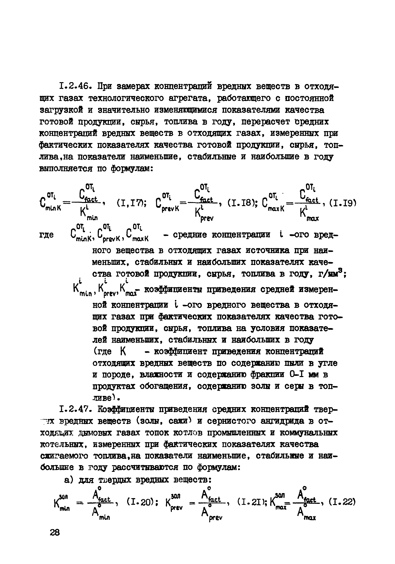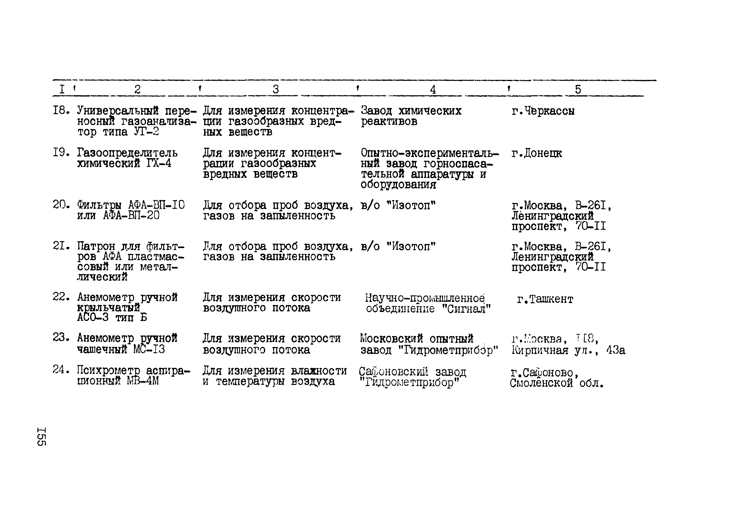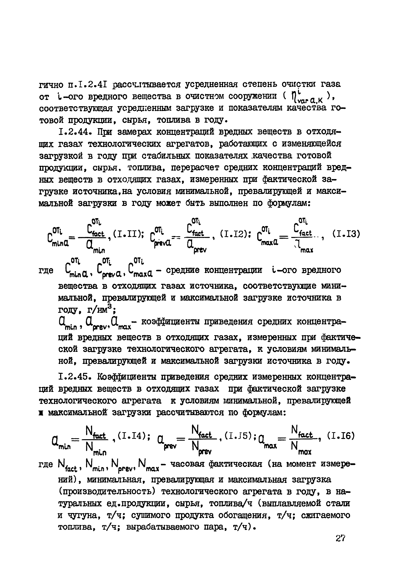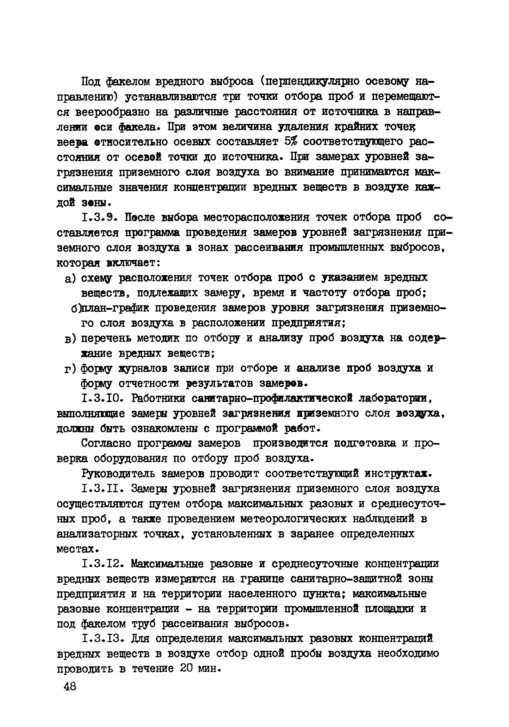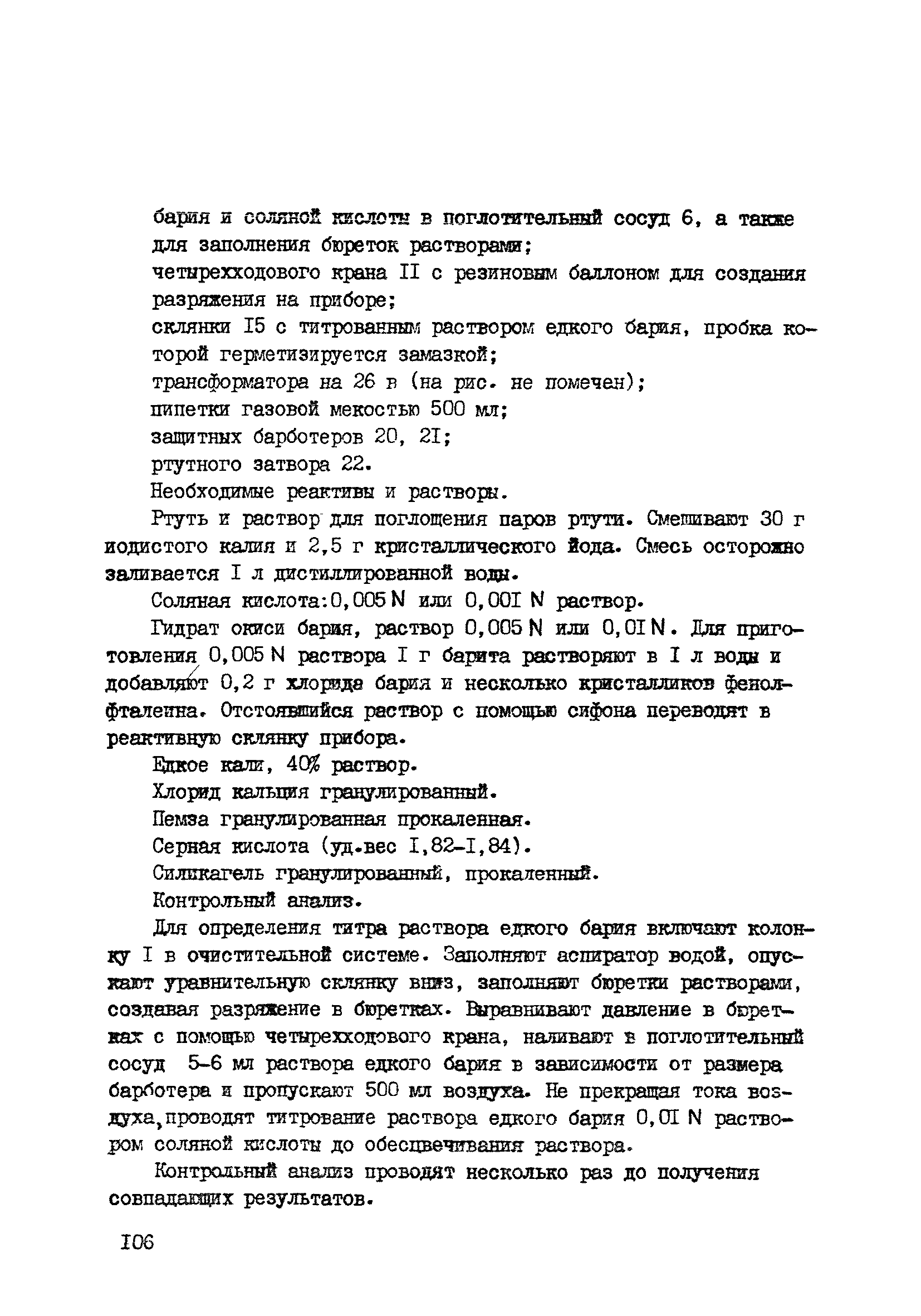 | Оглавление: | 1. Инструктивно-методические указания по выявлению источников загрязнения атмосферы, производству замеров выбросов вредных веществ и загрязнения атмосферного воздуха 1.1. Выявление источников загрязнения атмосферы, инвентаризация и контроль количества выбросов вредных веществ и качества атмосферного воздуха 1.2. Организация и производство замеров количества выбросов вредных веществ в атмосферу 1.3. Организация и производство замеров уровней загрязнения приземного слоя воздуха в зонах рассеивания промышленных выбросов 2. Методики и оборудование для производства замером вредных веществ, отходящих от источника, промышленных выбросов в атмосферу 2.1. Измерение температуры отходящих газов и промышленных выбросов 2.1.1. Измерение температуры газовых потоков техническим стеклянными термометрами 2.1.2. Измерение температуры газовых потоков термометрами сопротивления 2.1.3. Измерение температуры газовых потоков термоэлектрическими пирометрами (термопарами) 2.2. Измерение влажности отходящих газов и промышленных выбросов 2.2.1. Измерение влажности газовых потоков абсолютным весовым методом 2.2.2. Измерение влажности газовых потоков по разности температур сухого и влажного термометров 2.3. Измерение скорости газовых потоков 2.3.1. Измерение скорости незапыленных газовых потоков анемометрами 2.3.2. Измерение скорости давлений газовых потоков с применением пневмометрических трубок 2.4. Измерение запыленности газовых потоков 2.4.1. Общие положения 2.4.2. Аппаратура для измерения запыленности газов методом внешней фильтрации 2.4.3. Методика измерения запыленности газов с применением простой заборной трубки и внешней фильтрации 2.4.4. Аппаратура для измерения запыленности газов методом внутренней фильтрации 2.4.5. Методика измерения запыленности газов с применением пылезаборной трубки нулевого цикла с внутренней фильтрацией 2.5. Измерение концентраций вредных веществ в отходящих газах и промышленных выбросах 2.5.1. Общие положения 2.5.2. Измерение концентрации вредных веществ в газовых потоках газоанализаторами УГ-2 и газоопределителями ГХ-4 2.5.3. Измерение концентрации вредных веществ в газовых потоках газоанализаторами ГХП-3М и ВТИ-2 2.5.4. Измерение концентрации вредных веществ в газовых потоках газоанализаторами ТГ-5 и ФВ-7633М 2.5.5. Оборудование для отбора газовых проб из газоходов при измерении концентраций вредных веществ в газовых потоках методами химического анализа 2.5.6. Определение концентрации сернистого ангидрида (нефелометрический метод) 2.5.7. Определение концентрации сернистого ангидрида (йодометрический метод) 2.5.8. Определение концентрации окислов азота (колориметрический метод) 2.5.9. Определение концентрации сернистого ангидрида и окислов азота при их совместном присутствии (титриметрический метод) 2.6. Методика и оборудование для измерения количества вредных веществ, выделяемых горящими породными отвалами Приложения |