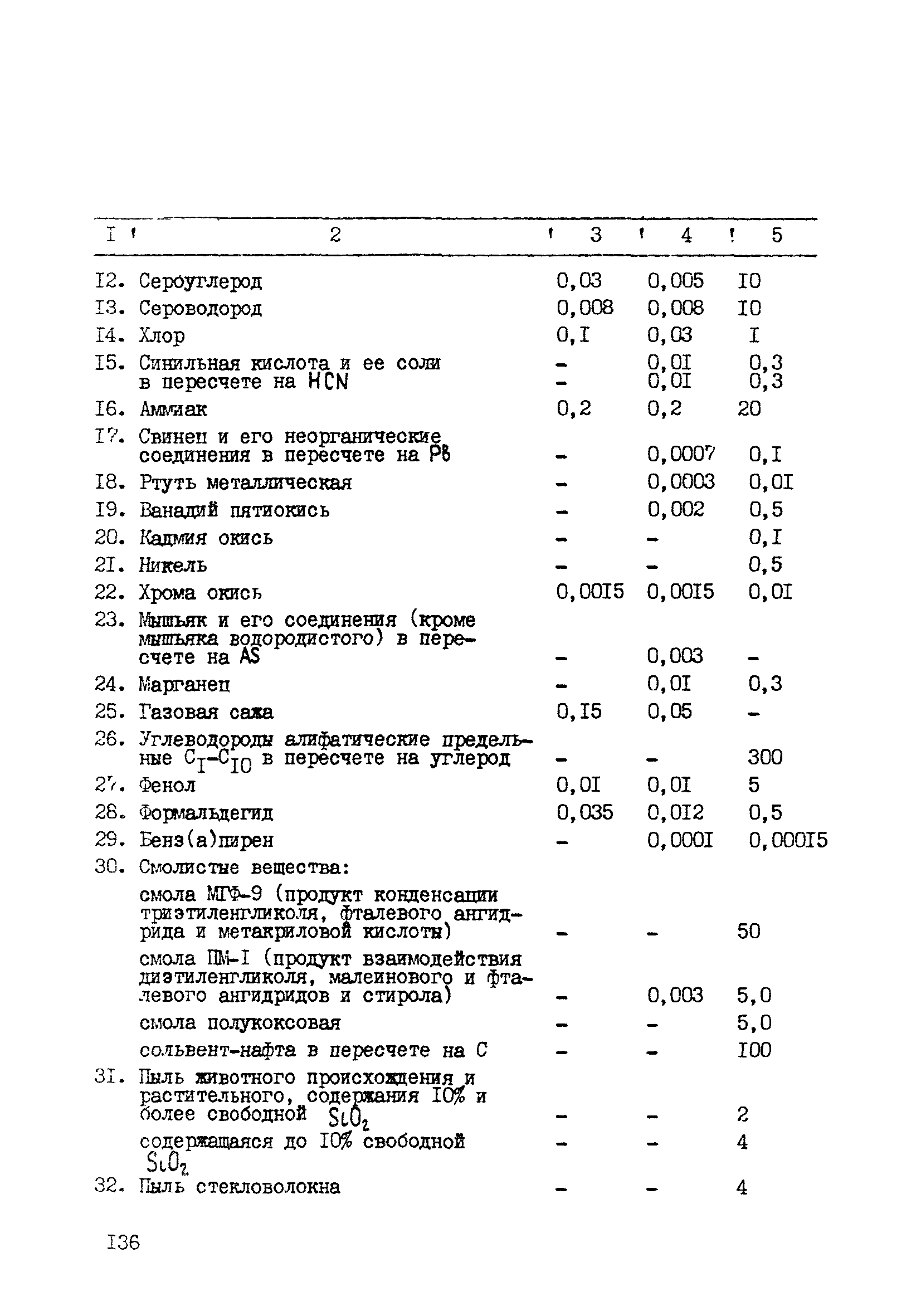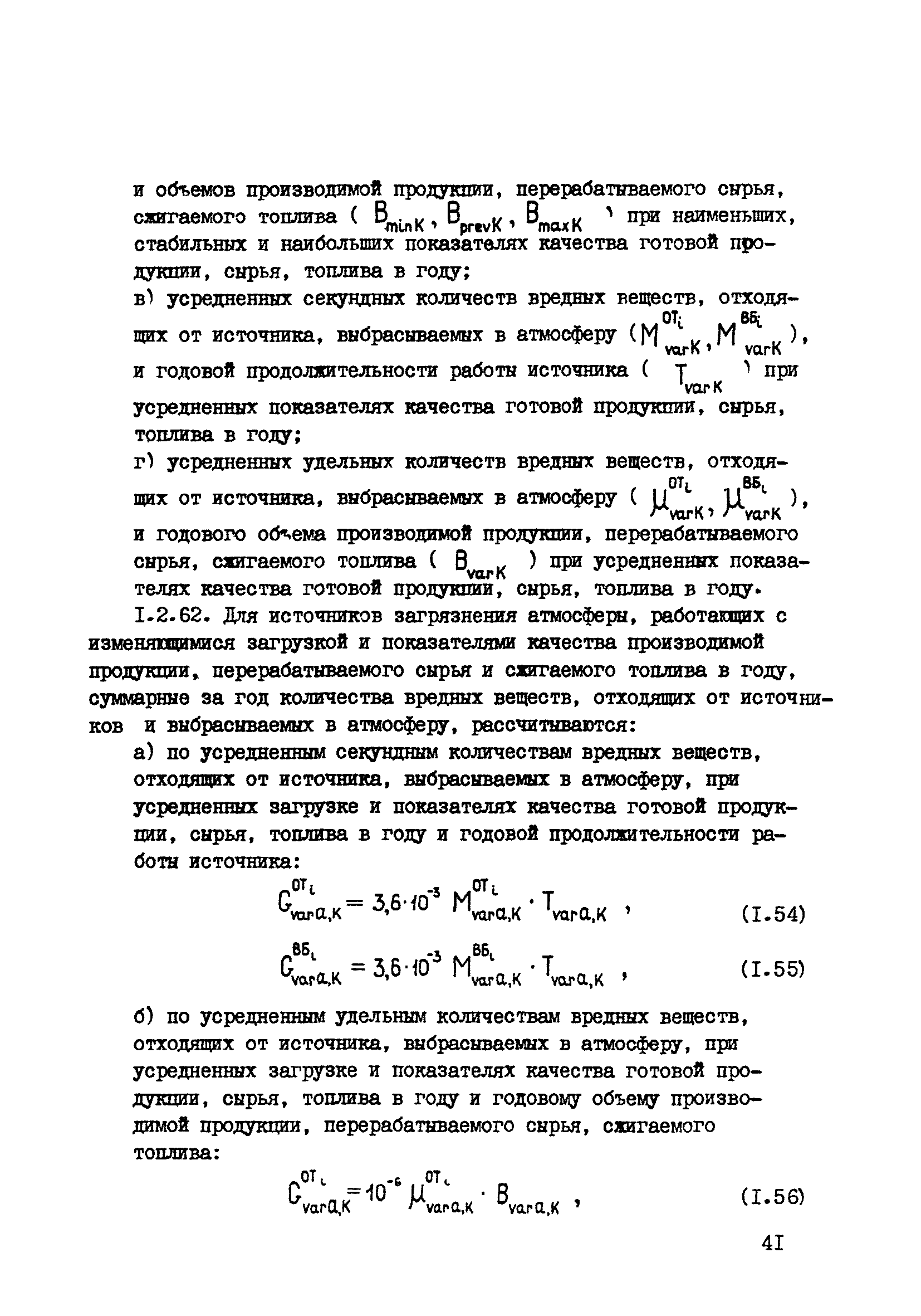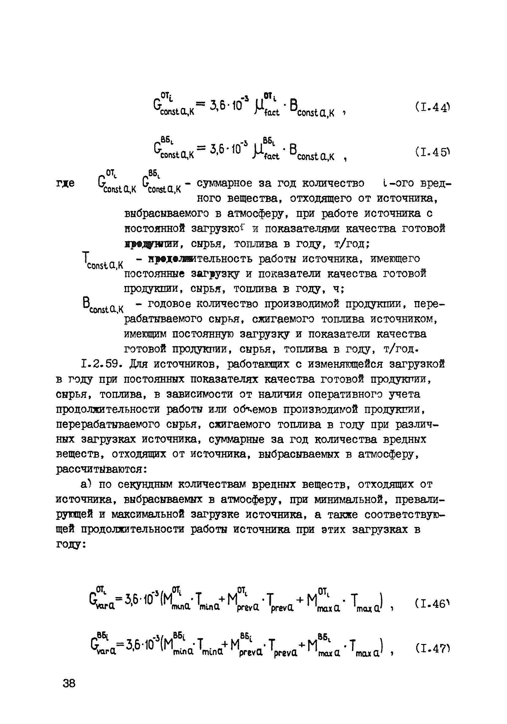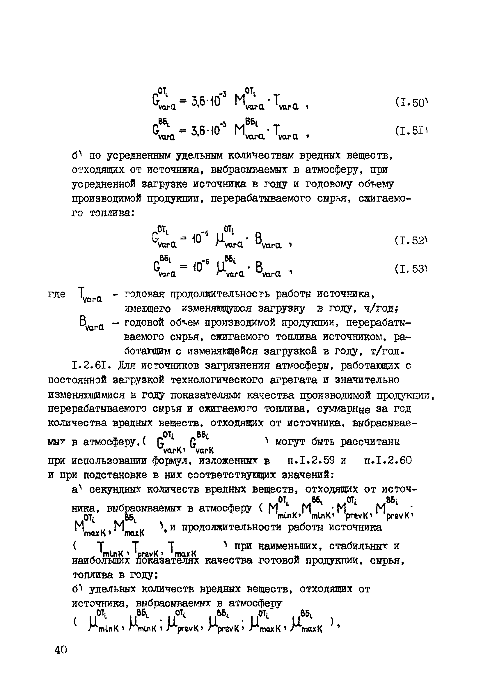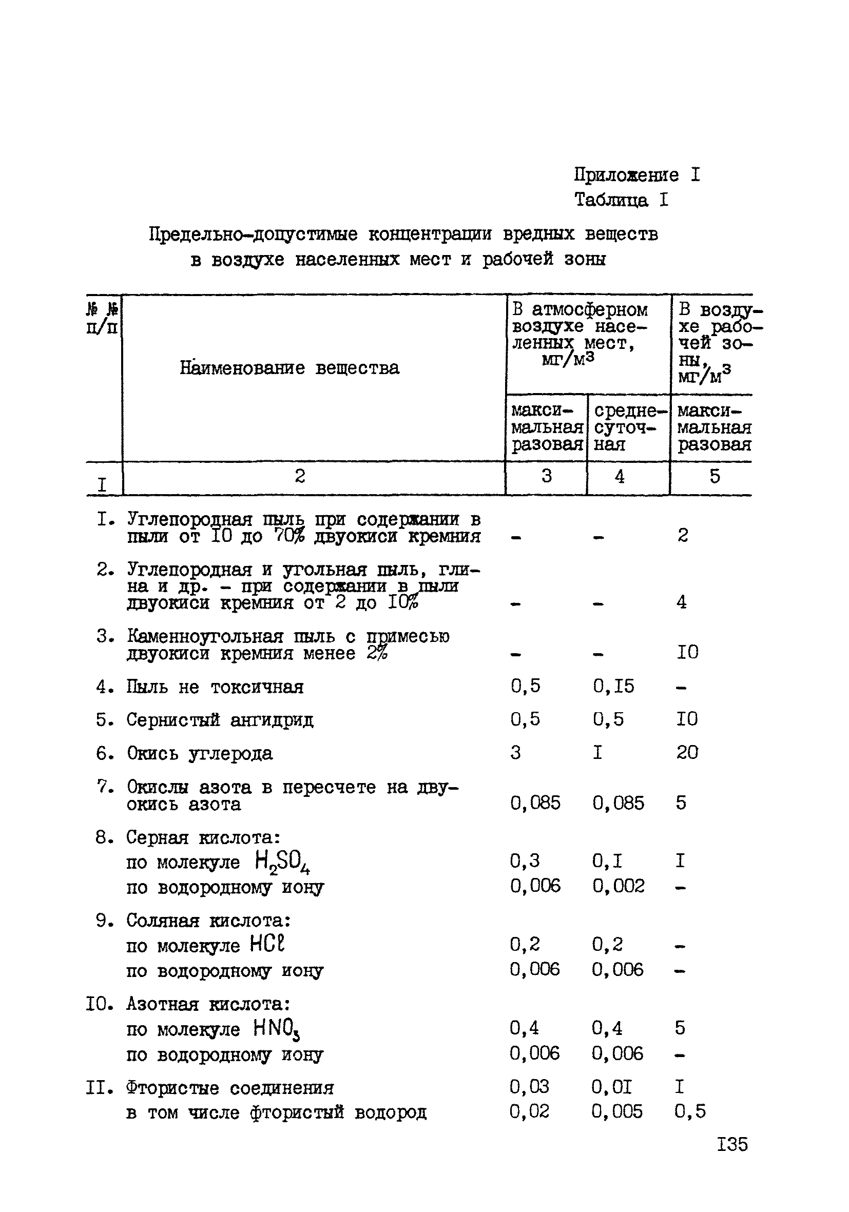 | Оглавление: | 1. Инструктивно-методические указания по выявлению источников загрязнения атмосферы, производству замеров выбросов вредных веществ и загрязнения атмосферного воздуха 1.1. Выявление источников загрязнения атмосферы, инвентаризация и контроль количества выбросов вредных веществ и качества атмосферного воздуха 1.2. Организация и производство замеров количества выбросов вредных веществ в атмосферу 1.3. Организация и производство замеров уровней загрязнения приземного слоя воздуха в зонах рассеивания промышленных выбросов 2. Методики и оборудование для производства замером вредных веществ, отходящих от источника, промышленных выбросов в атмосферу 2.1. Измерение температуры отходящих газов и промышленных выбросов 2.1.1. Измерение температуры газовых потоков техническим стеклянными термометрами 2.1.2. Измерение температуры газовых потоков термометрами сопротивления 2.1.3. Измерение температуры газовых потоков термоэлектрическими пирометрами (термопарами) 2.2. Измерение влажности отходящих газов и промышленных выбросов 2.2.1. Измерение влажности газовых потоков абсолютным весовым методом 2.2.2. Измерение влажности газовых потоков по разности температур сухого и влажного термометров 2.3. Измерение скорости газовых потоков 2.3.1. Измерение скорости незапыленных газовых потоков анемометрами 2.3.2. Измерение скорости давлений газовых потоков с применением пневмометрических трубок 2.4. Измерение запыленности газовых потоков 2.4.1. Общие положения 2.4.2. Аппаратура для измерения запыленности газов методом внешней фильтрации 2.4.3. Методика измерения запыленности газов с применением простой заборной трубки и внешней фильтрации 2.4.4. Аппаратура для измерения запыленности газов методом внутренней фильтрации 2.4.5. Методика измерения запыленности газов с применением пылезаборной трубки нулевого цикла с внутренней фильтрацией 2.5. Измерение концентраций вредных веществ в отходящих газах и промышленных выбросах 2.5.1. Общие положения 2.5.2. Измерение концентрации вредных веществ в газовых потоках газоанализаторами УГ-2 и газоопределителями ГХ-4 2.5.3. Измерение концентрации вредных веществ в газовых потоках газоанализаторами ГХП-3М и ВТИ-2 2.5.4. Измерение концентрации вредных веществ в газовых потоках газоанализаторами ТГ-5 и ФВ-7633М 2.5.5. Оборудование для отбора газовых проб из газоходов при измерении концентраций вредных веществ в газовых потоках методами химического анализа 2.5.6. Определение концентрации сернистого ангидрида (нефелометрический метод) 2.5.7. Определение концентрации сернистого ангидрида (йодометрический метод) 2.5.8. Определение концентрации окислов азота (колориметрический метод) 2.5.9. Определение концентрации сернистого ангидрида и окислов азота при их совместном присутствии (титриметрический метод) 2.6. Методика и оборудование для измерения количества вредных веществ, выделяемых горящими породными отвалами Приложения |