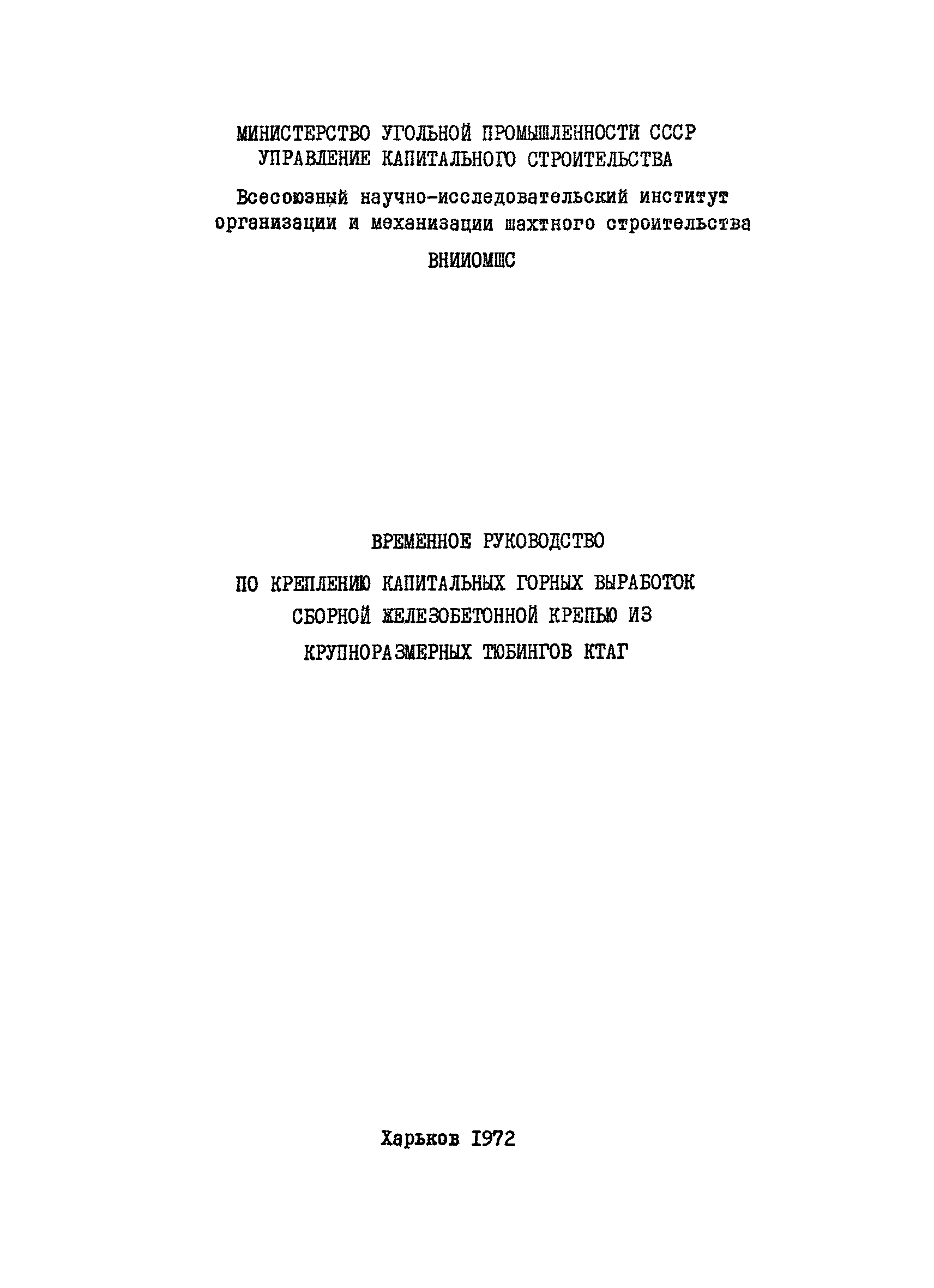 Скачать Временное руководство по креплению капитальных горных выработок сборной железобетонной крепью из крупноразмерных тюбингов КТАГДата актуализации: 01.01.2021