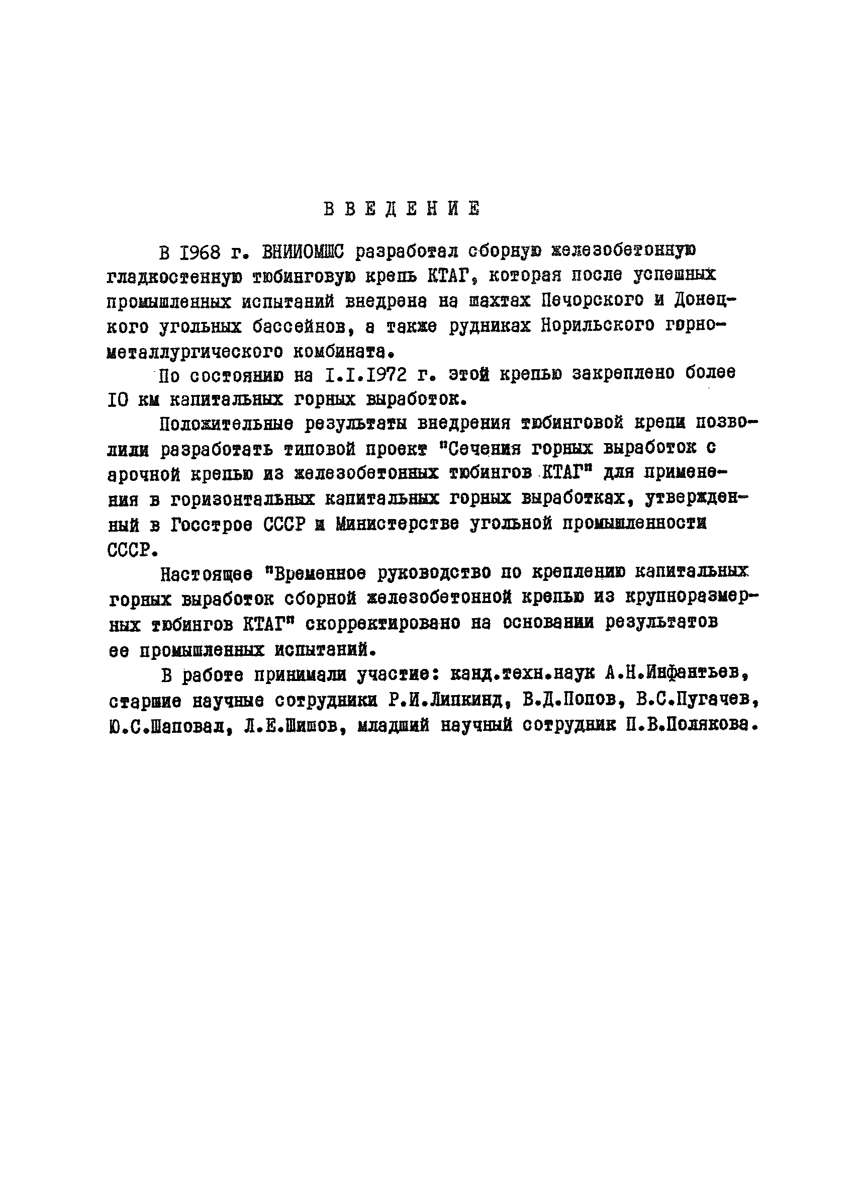 Временное руководство по креплению капитальных горных выработок сборной железобетонной крепью из крупноразмерных тюбингов КТАГ| Статус: | справочные материалы, мп, тпр | | Название рус.: | Временное руководство по креплению капитальных горных выработок сборной железобетонной крепью из крупноразмерных тюбингов КТАГ | | Дата добавления в базу: | 01.02.2017 | | Дата актуализации: | 01.01.2021 | | Оглавление: | Введение Конструкция и область применения крепи Механизмы для возведения крепи Возведение крепи Приемка выработок, закрепленных сборной железобетонной крепью из крупноразмерных тюбингов ктаг Техника безопасности | | Разработан: | ВНИИОМШС