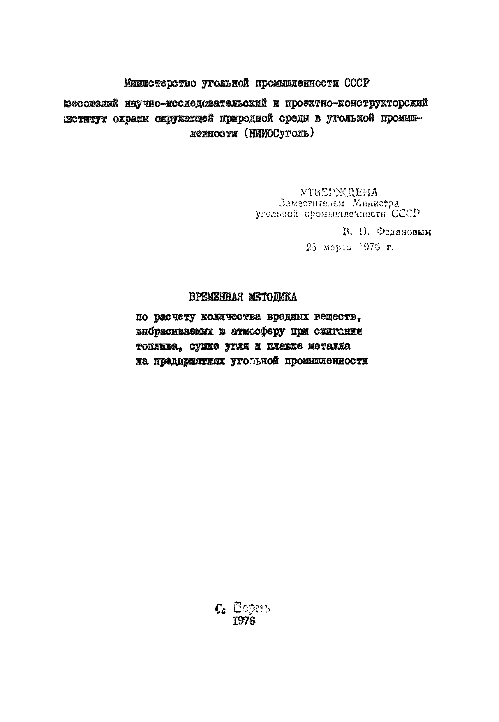 | | Утверждён: | 25.03.1976 Зам. Министра угольной промышленности СССР