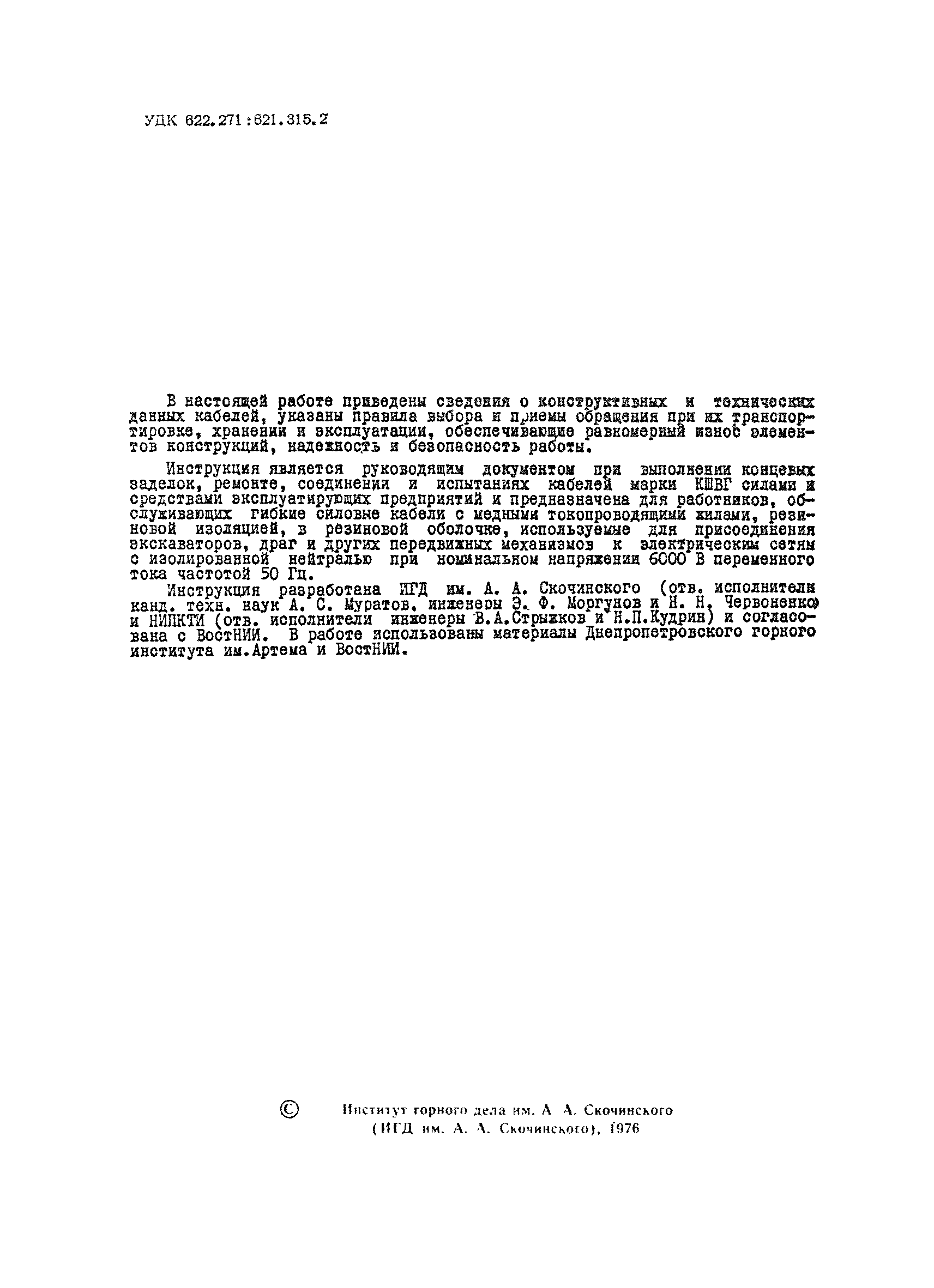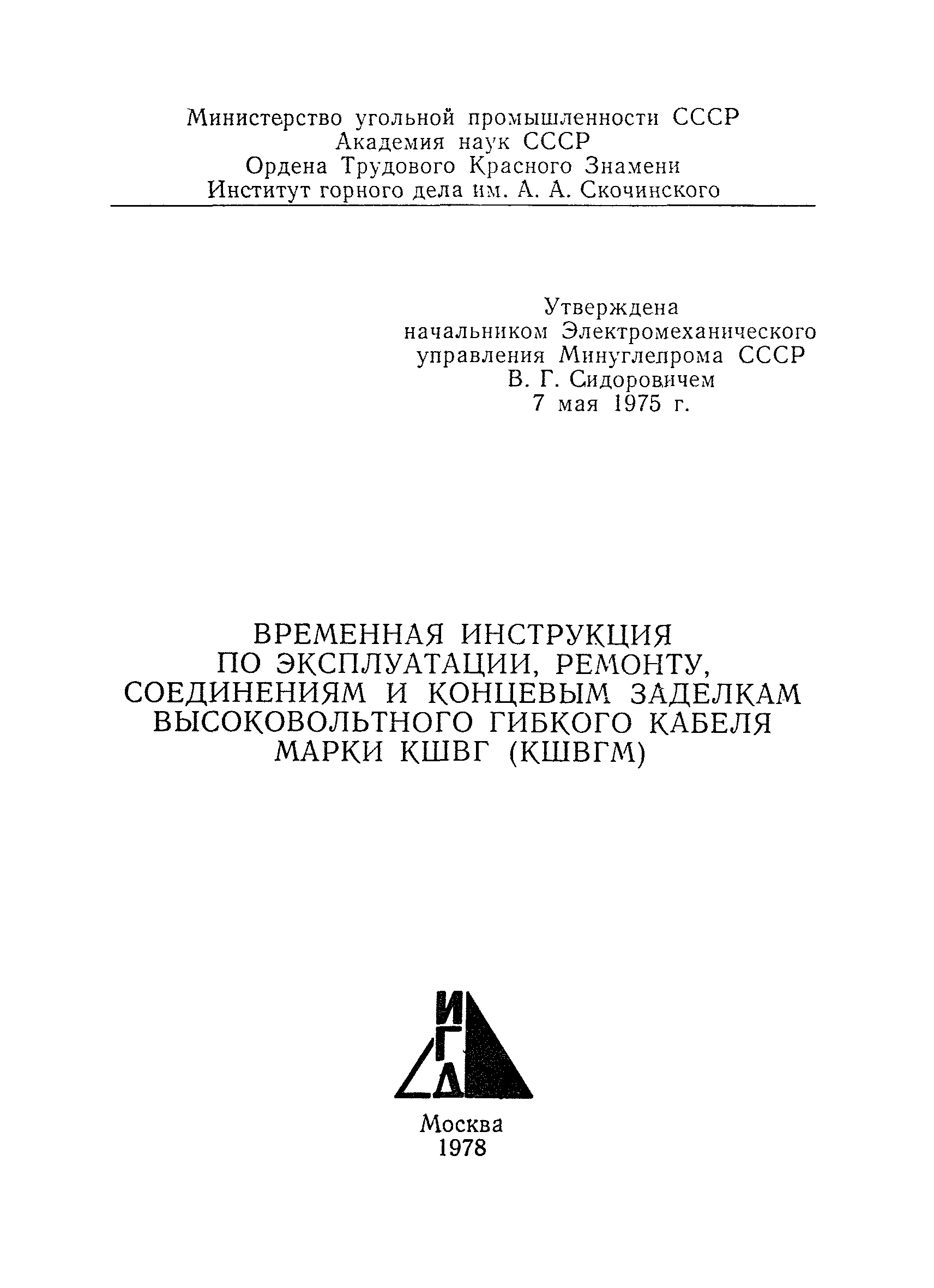 | | Утверждён: | 07.05.1975 Начальник электромеханического управления Минуглепрома СССР