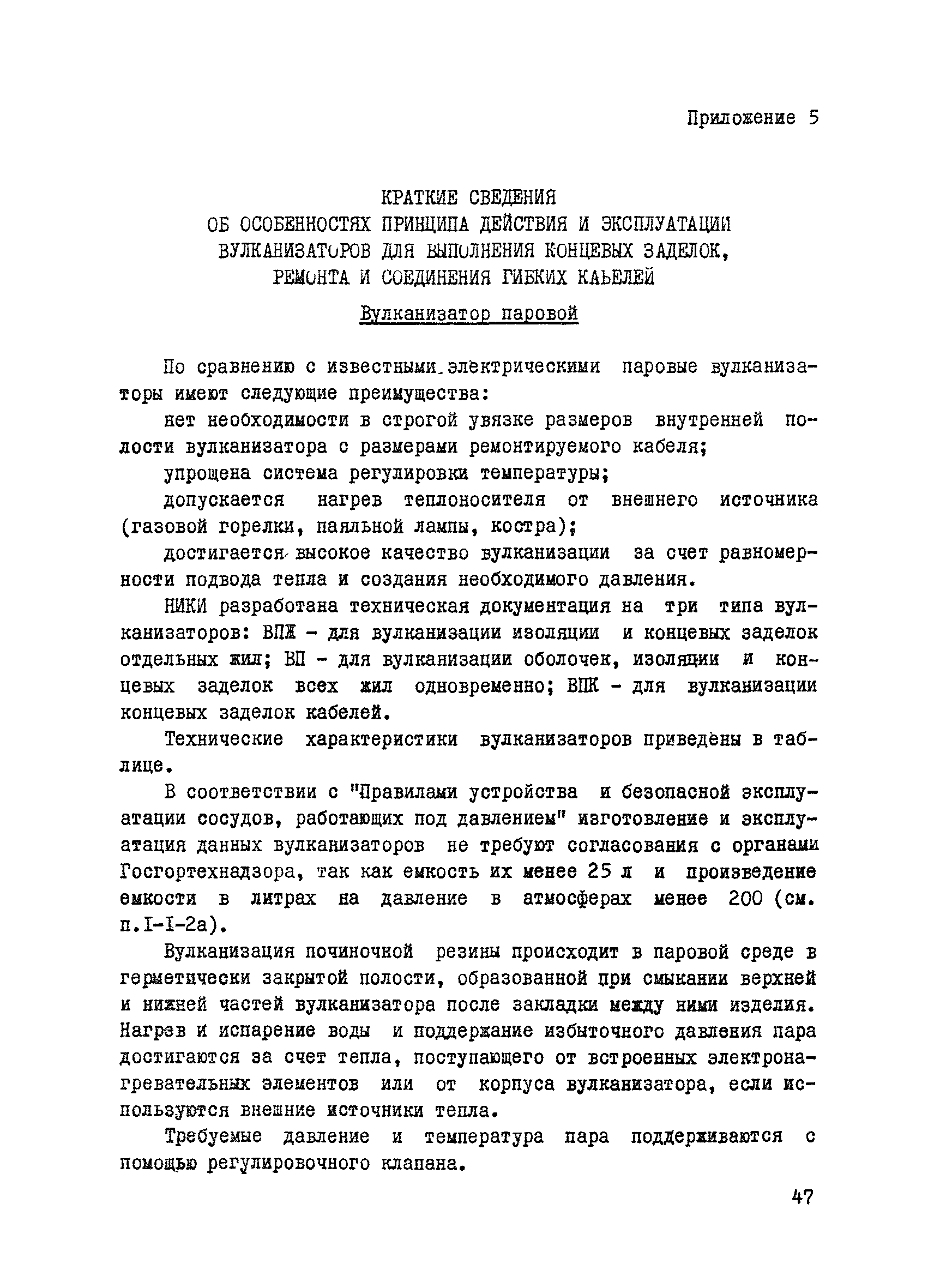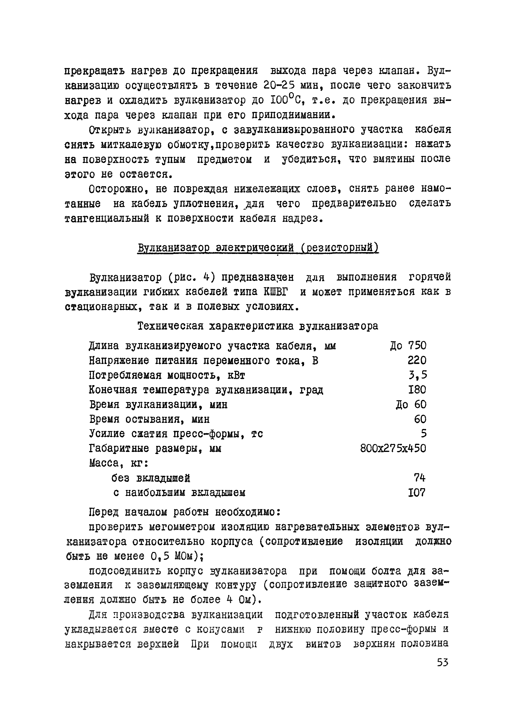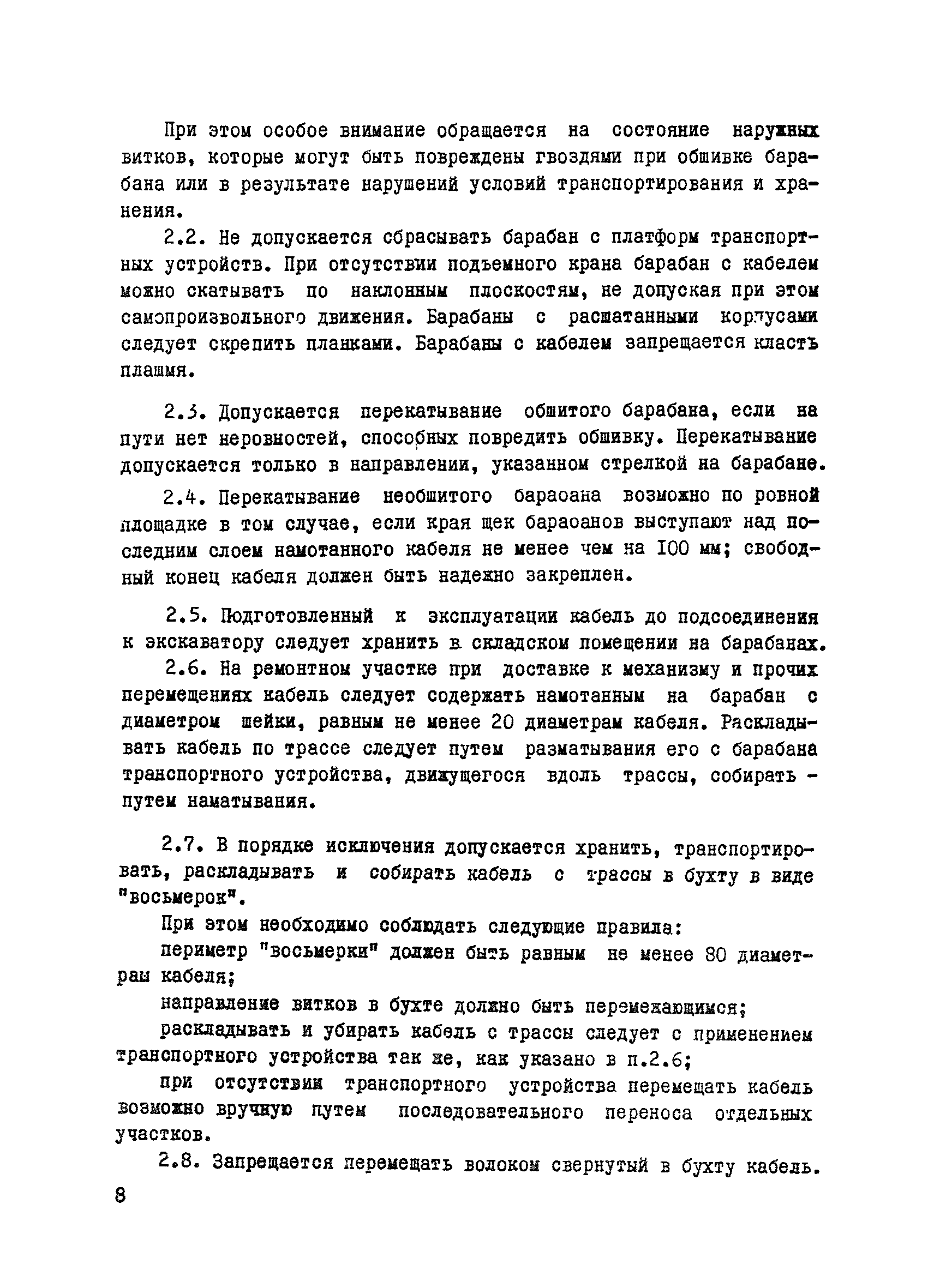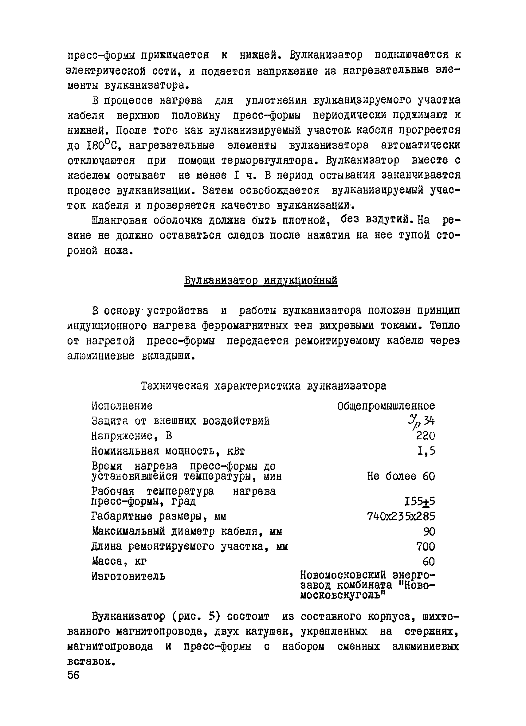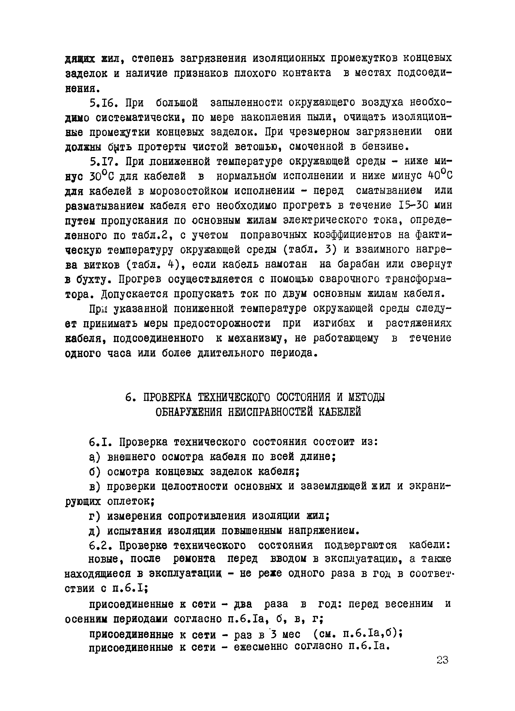 Временная инструкция по эксплуатации, ремонту, соединениям и концевым заделкам высоковольтного гибкого кабеля марки КШВГ (КШВГМ)| Статус: | справочные материалы, мп, тпр | | Название рус.: | Временная инструкция по эксплуатации, ремонту, соединениям и концевым заделкам высоковольтного гибкого кабеля марки КШВГ (КШВГМ) | | Дата добавления в базу: | 01.02.2017 | | Дата актуализации: | 01.01.2021 | | Область применения: | Инструкция является руководящим документом при выполнении концевых заделок, ремонте, соединений и испытаниях кабелей марки КШВГ силами и средствами эксплуатирующих предприятий и предназначена для работников, обслуживающих гибкие силовые кабели с медными токопроводящими жилами, резиновой изоляцией, в резиновой оболочке, используемые для присоединения экскаваторов, драг и других передвижных механизмов к электрическим сетям с изолированной нейтралью при номинальном напряжении 6000 В переменного тока частотой 50 Гц. | | Оглавление: | Введение 1. Конструкция и основные технические данные кабелей марки КШВГ 2. Транспортирование, хранение и проверка кабелей 3. Меры безопасности 4. Концевые заделки и присоединение кабелей 5. Присоединение, эксплуатация и осмотр кабелей 6. Проверка технического состояния и методы обнаружения неисправностей кабелей 7. Ремонт и соединение отрезков кабелей Приложение 1. Перечень оборудования, инструмента и спецодежды, необходимых при ремонте, соединении и концевых заделках кабелей КШВГ Приложение 2. Перечень материалов, необходимых для выполнения ремонта, соединений и концевых заделок кабелей Приложение 3. Нормы расхода основных материалов (кг) на выполнение 100 ремонтов или соединение кабелей КШВГ (без учета отходов) Приложение 4. Нормы расхода основных материалов (кг) на выполнение 100 концевых заделок КШВГ (без учета отходов) Приложение 5. Краткие сведения об особенностях принципа действия и эксплуатации вулканизаторов для выполнения концевых заделок, ремонта и соединения гибких кабелей | | Разработан: | Институт горного дела им. А.А. Скочинского НИПКТИ