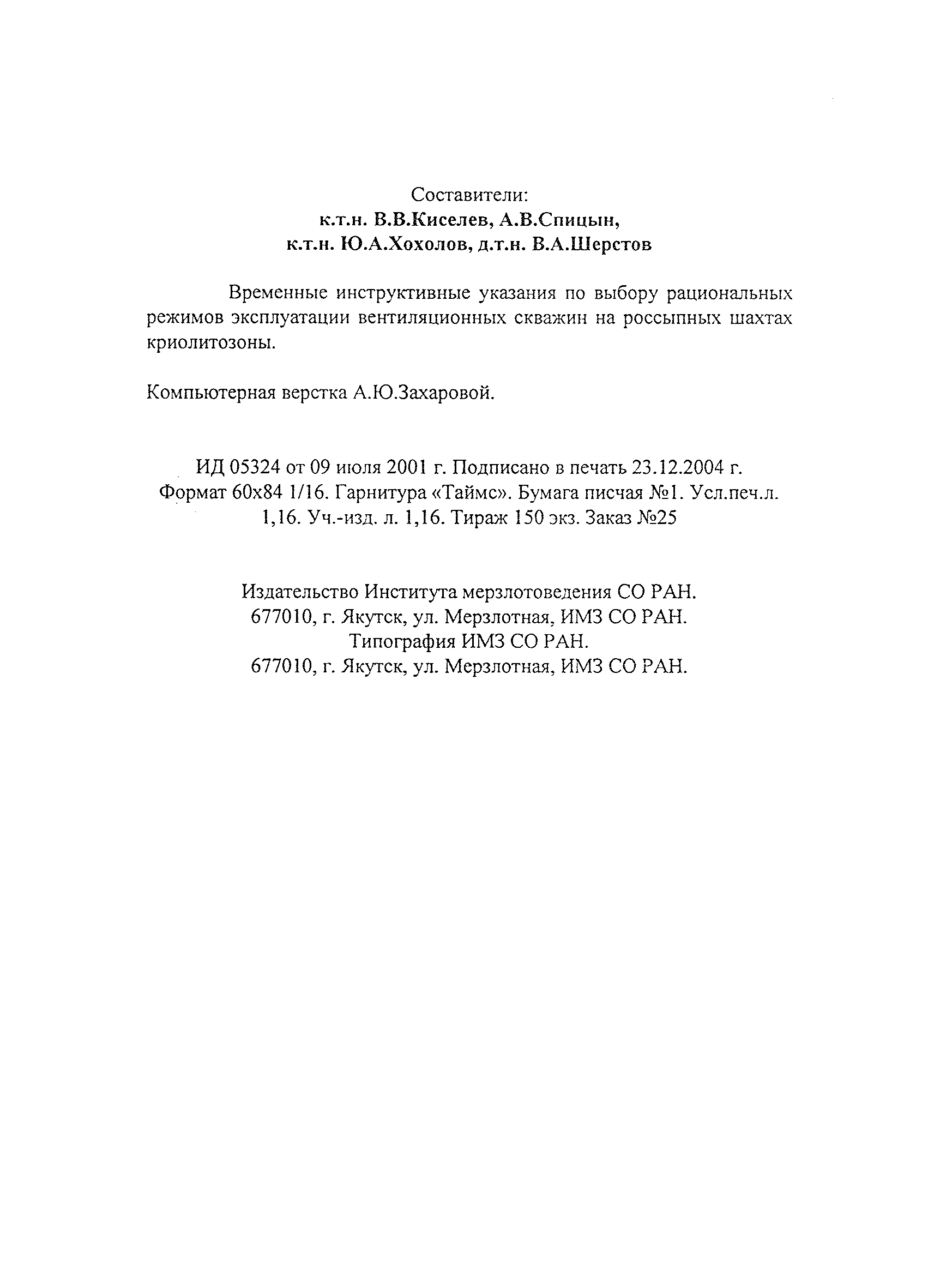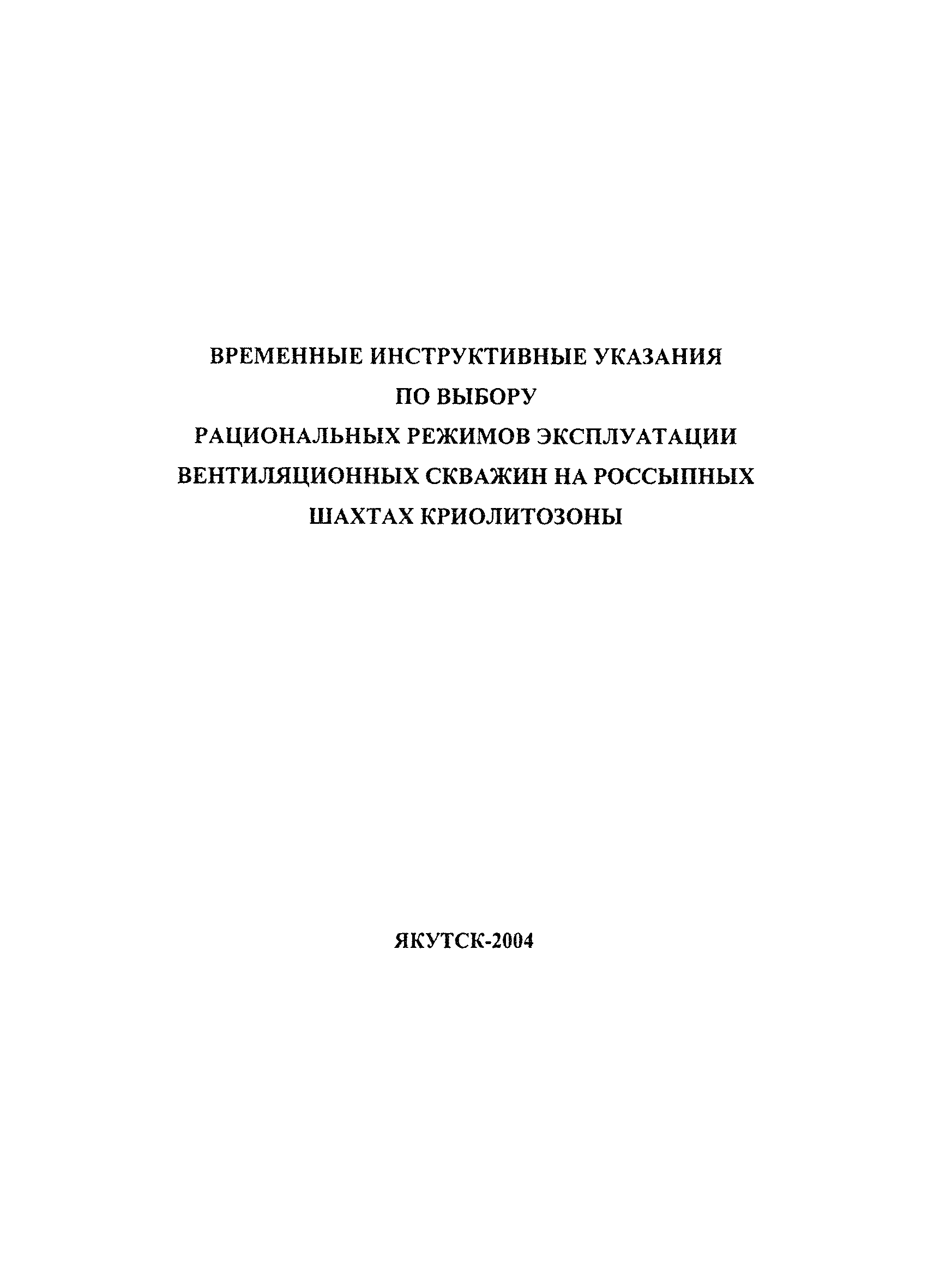 | Название рус.: | Временные инструктивные указания по выбору рациональных режимов эксплуатации вентиляционных скважин на россыпных шахтах криолитозоны |