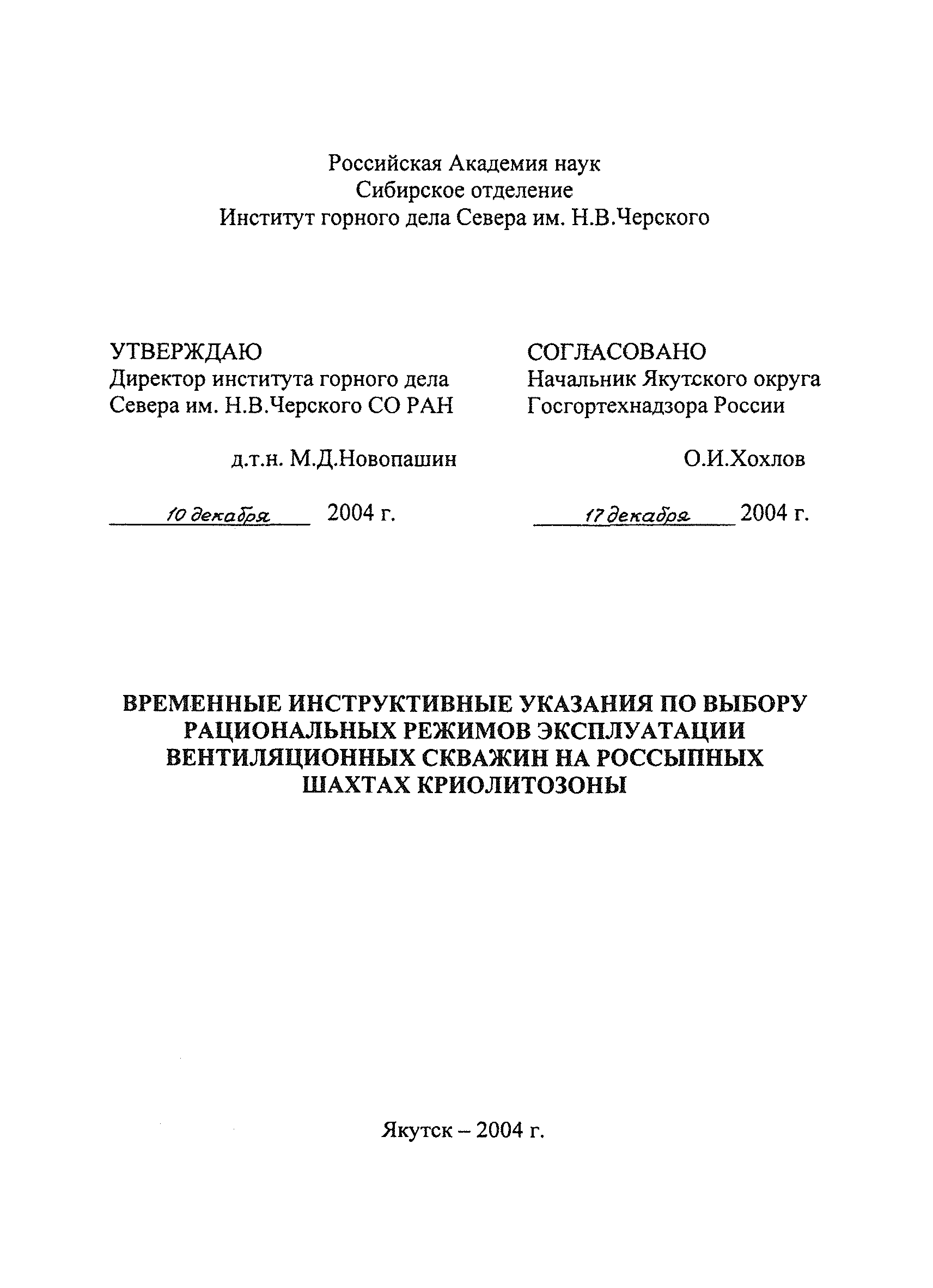 | Принят: | 17.12.2004 Начальник Якутского округа Госгортехнадзора России
