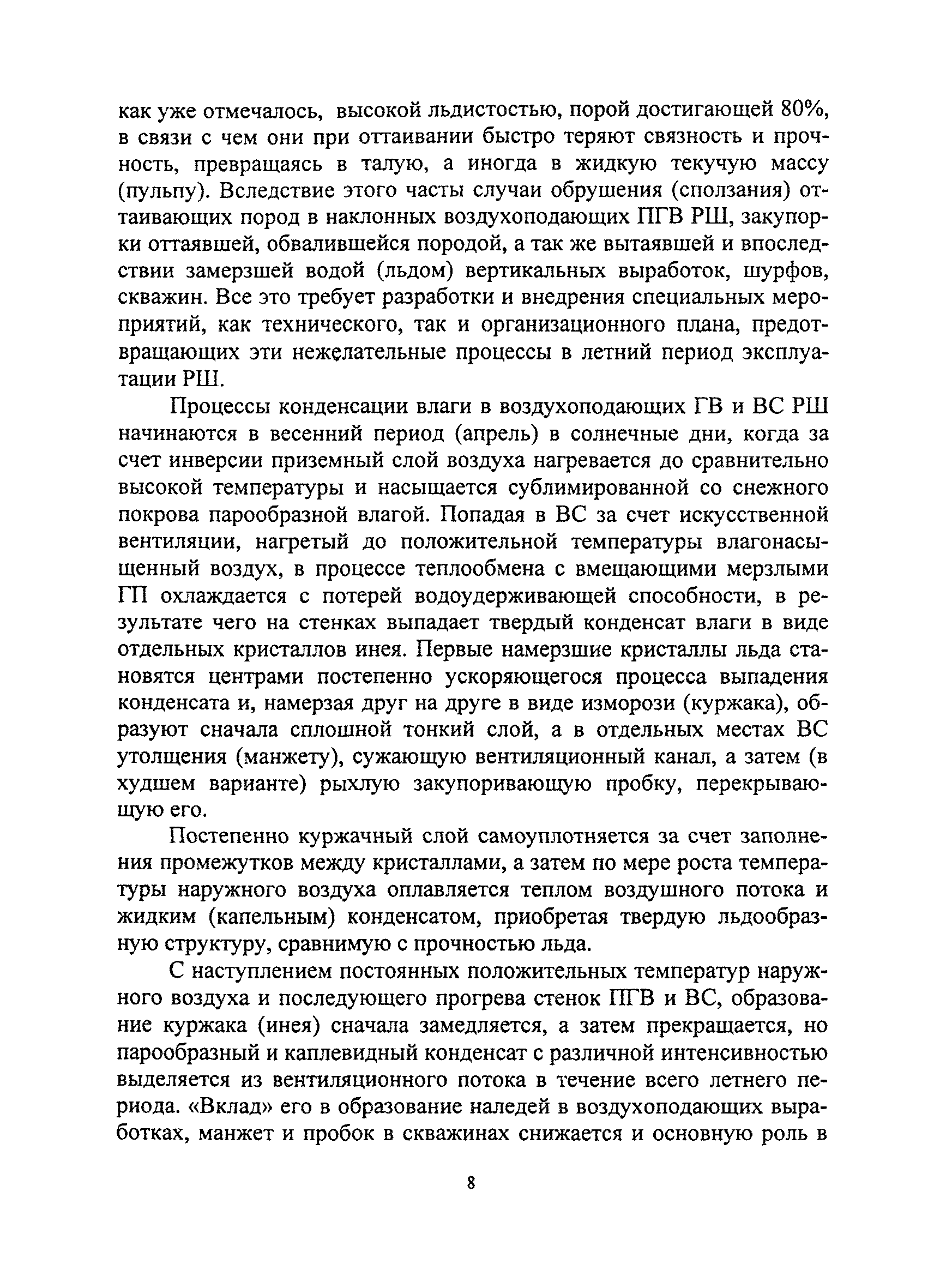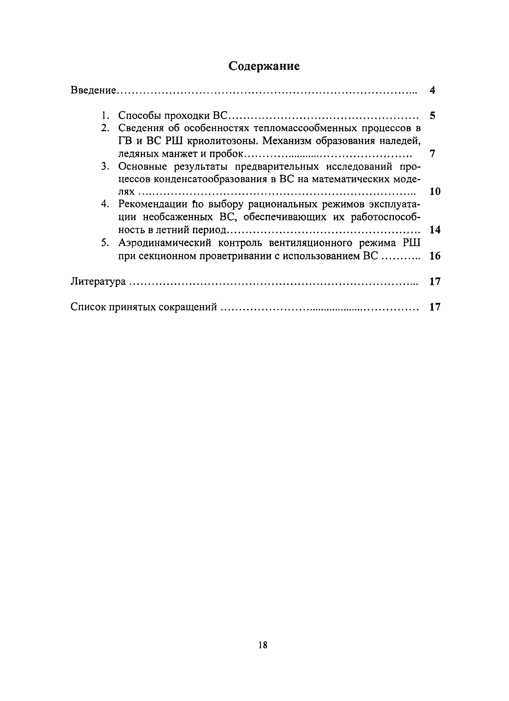 | Оглавление: | Введение 1. Способы проходки ВС 2. Сведения об особенностях тепломассообменных процессов в ГВ и ВС РШ криолитозоны. Механизм образования наледей, ледяных манжет и пробок 3. Основные результаты предварительных исследований процессов конденсатообразования в ВС на математических моделях 4. Рекомендации по выбору рациональных режимов эксплуатации необсаженных ВС, обеспечивающих их работоспособность в летний период 5. Аэродинамический контроль вентиляционного режима РШ при секционном проветривании с использованием ВС Литература Список принятых сокращений |