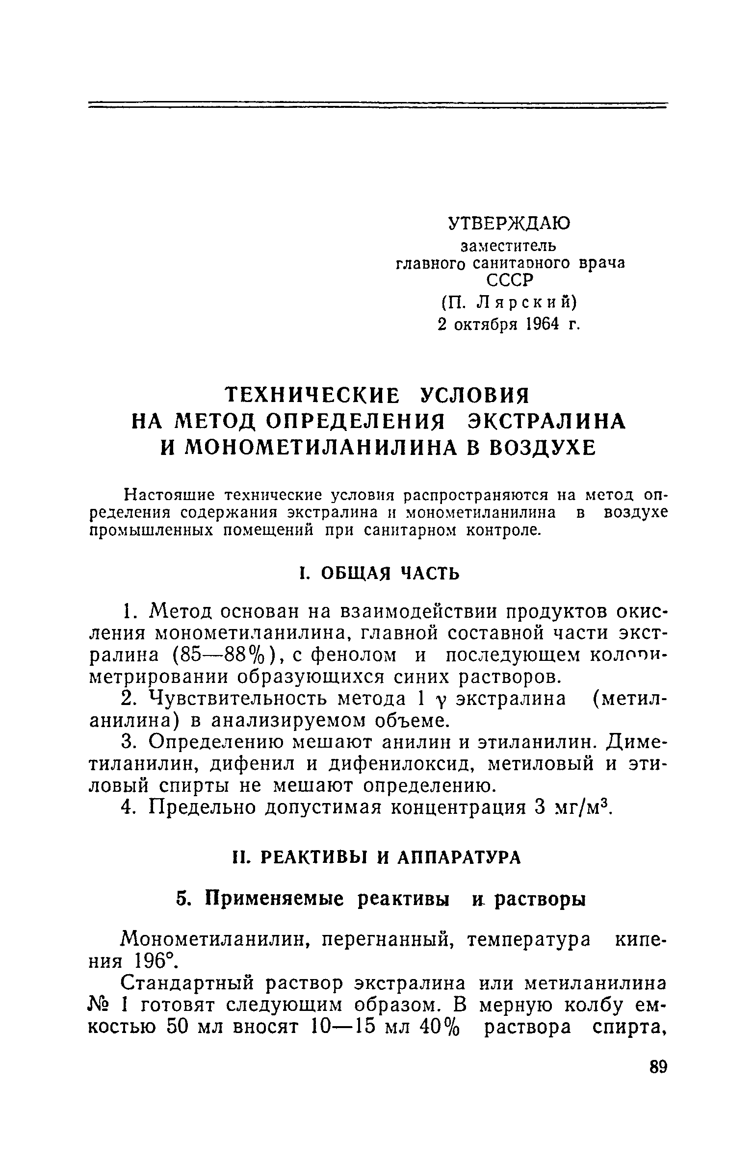 | Название рус.: | Технические условия на метод определения экстралина и монометиланилина в воздухе |