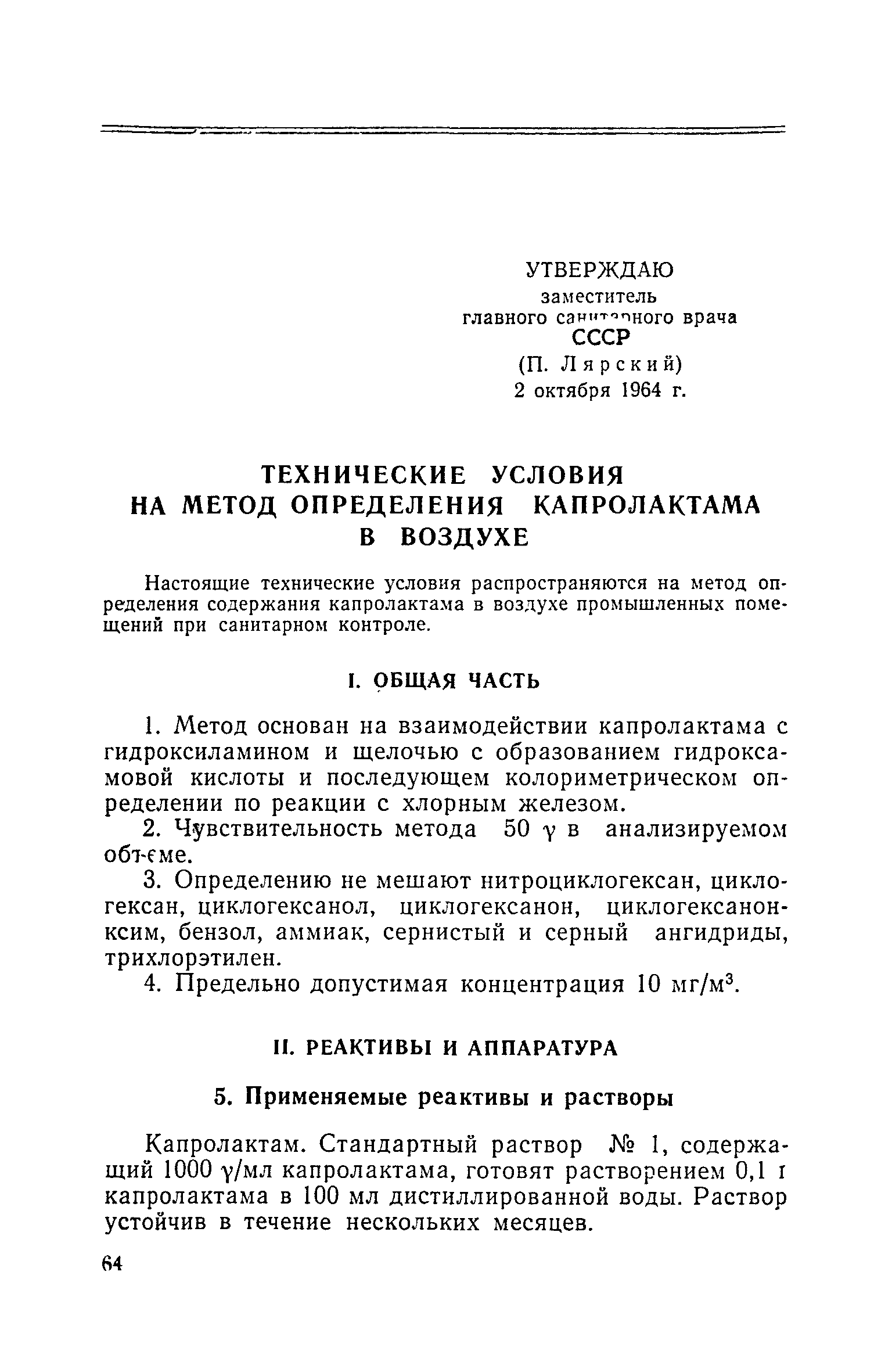 | Утверждён: | 02.10.1964 Заместитель главного санитарного врача СССР