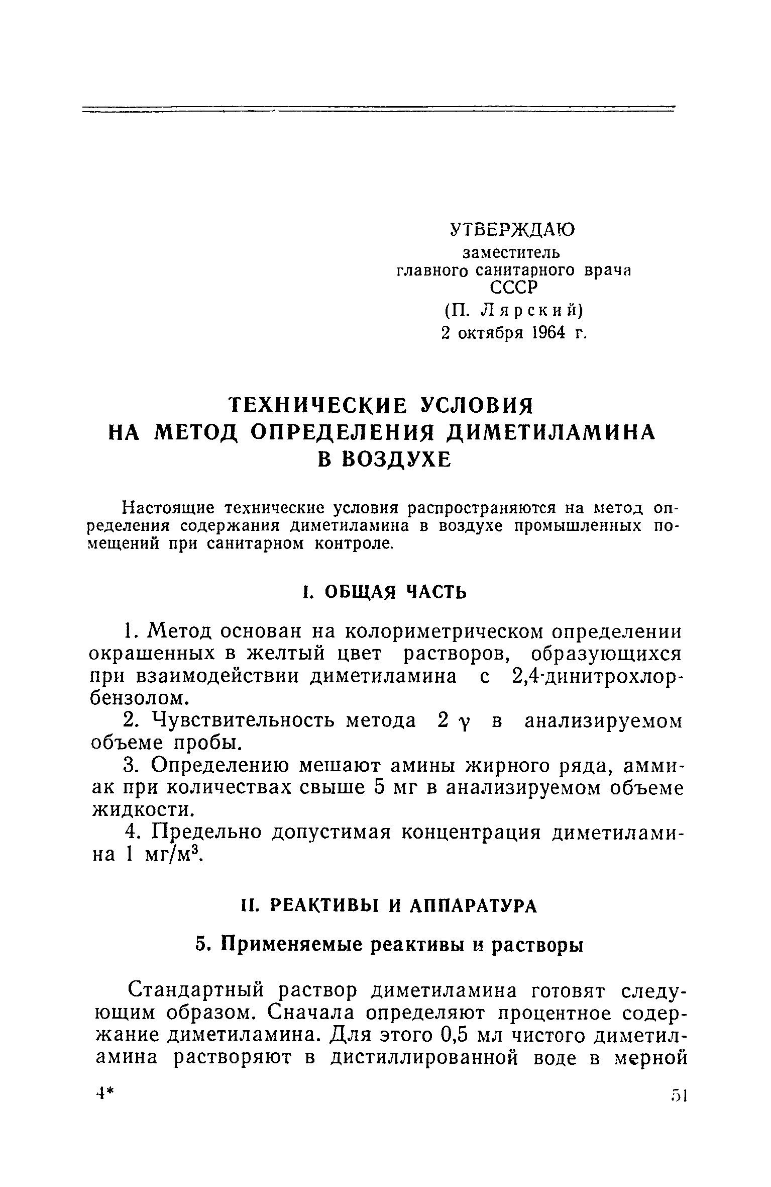 | Область применения: | Технические условия распространяются на метод определения содержания диметиламина в воздухе промышленных помещений при санитарном контроле. |