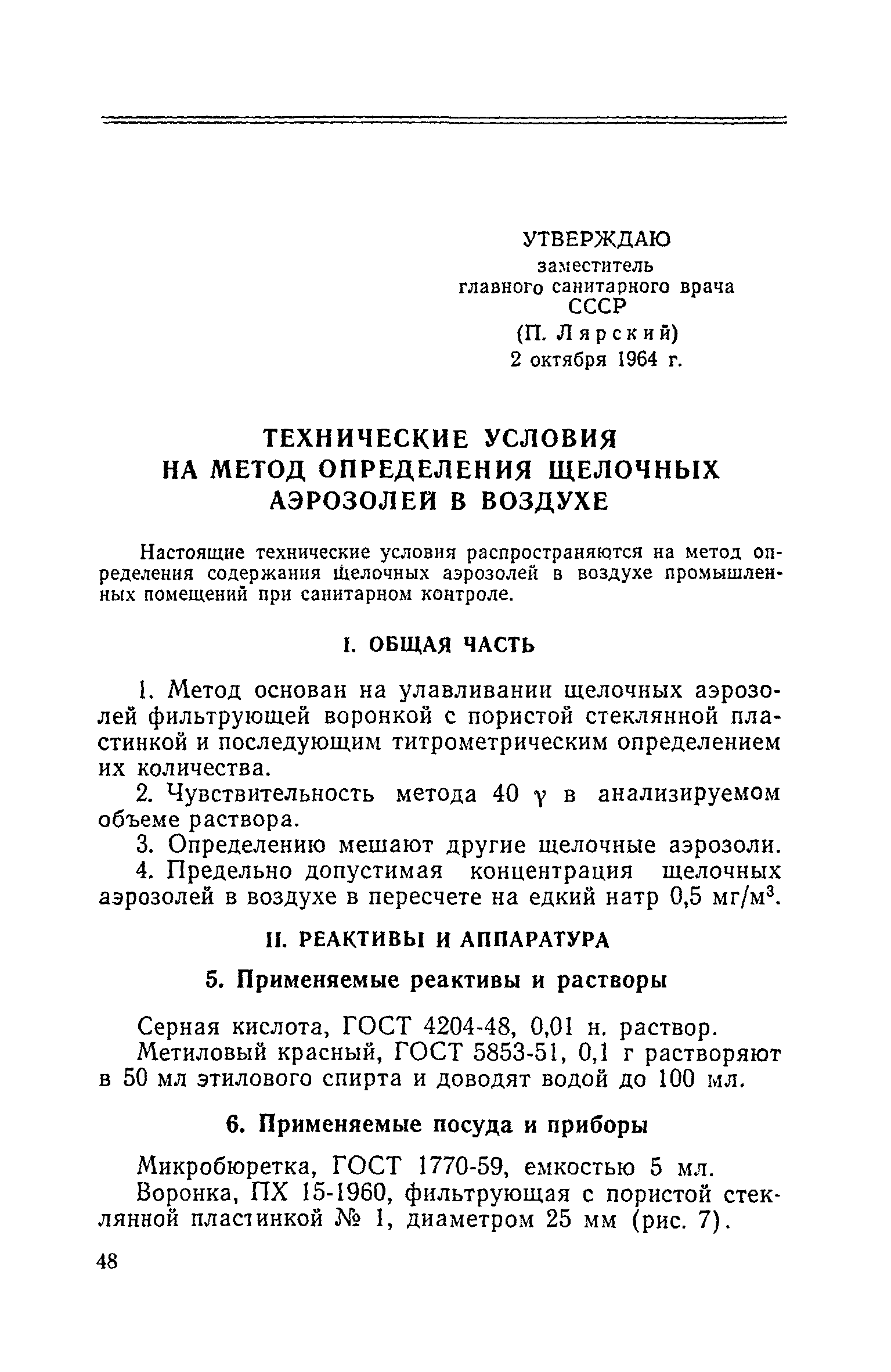 | Название рус.: | Технические условия на метод определения щелочных аэрозолей в воздухе |