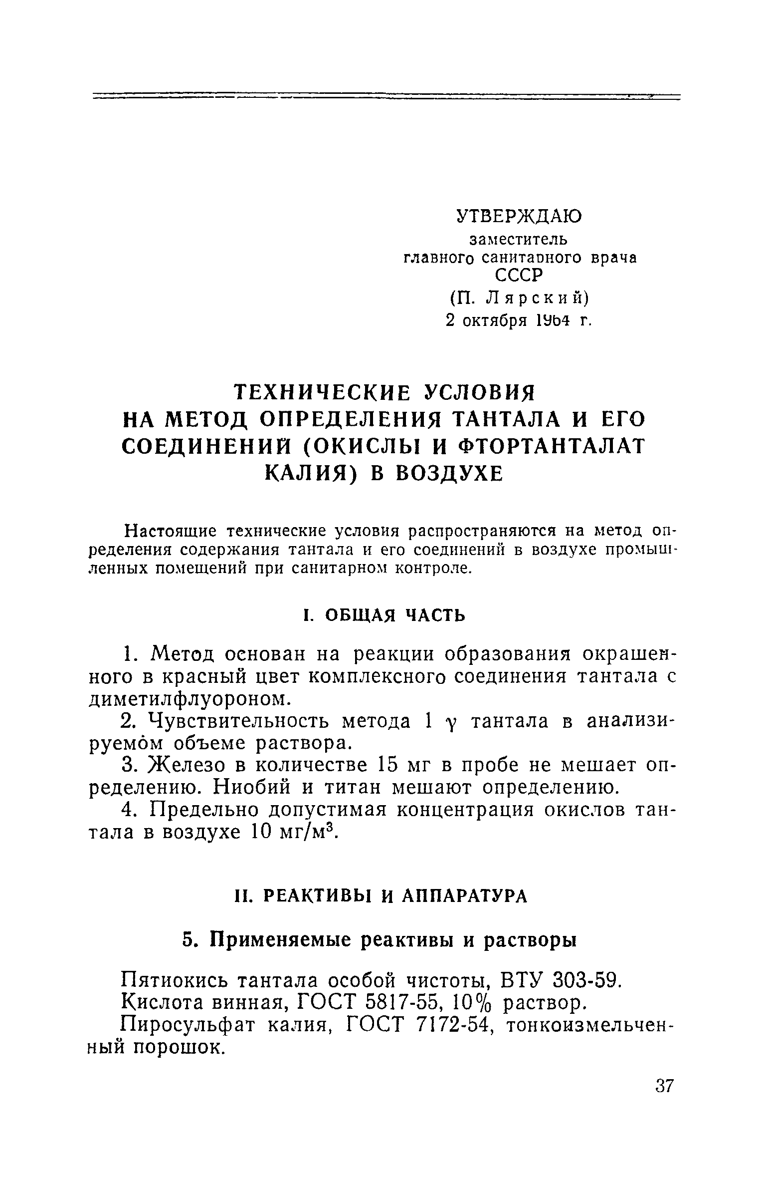 | Название рус.: | Технические условия на метод определения тантала и его соединений (окислы и фтортанталат калия) в воздухе |