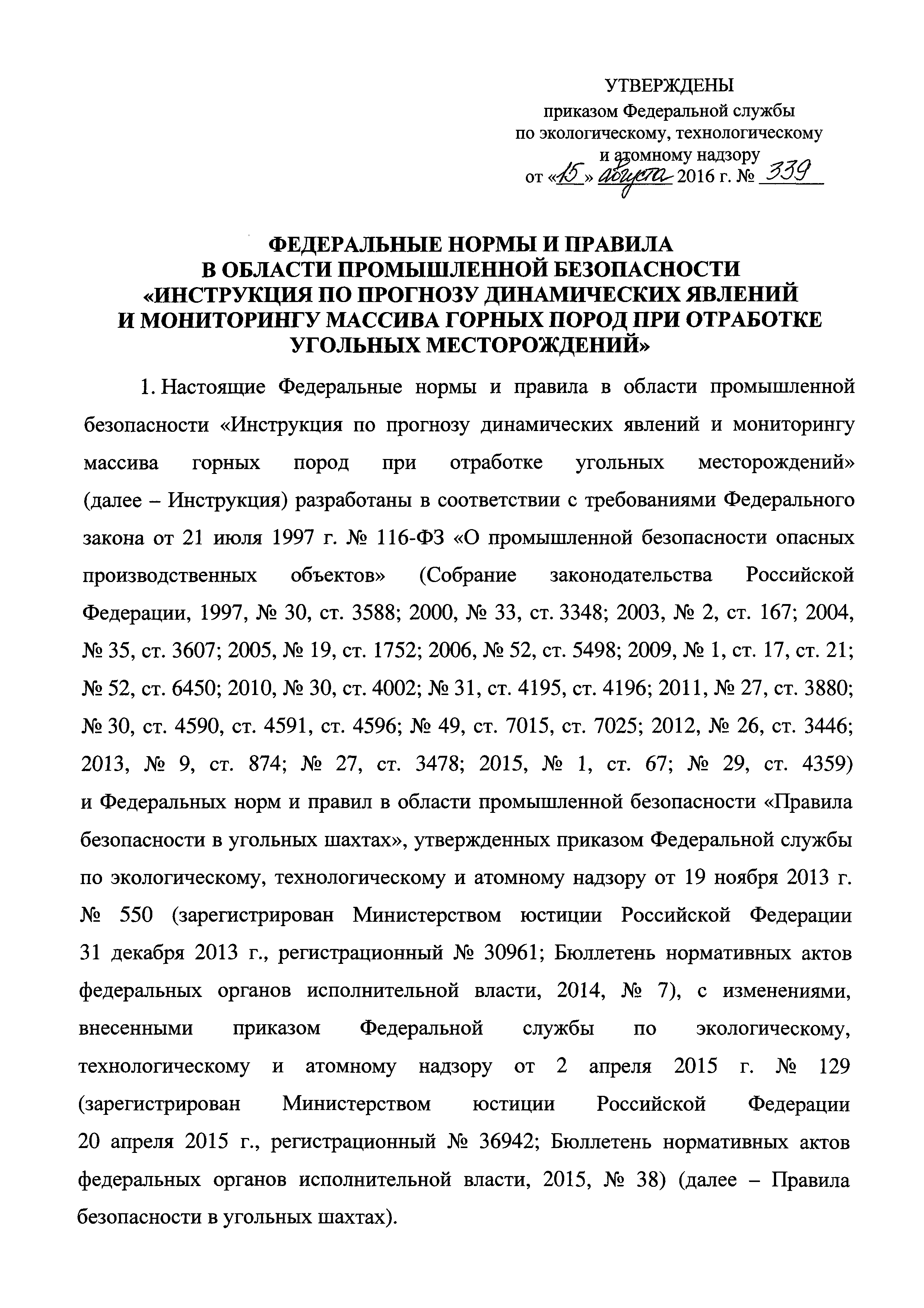 | Утверждён: | 15.08.2016 Федеральная служба по экологическому, технологическому и атомному надзору (339) |