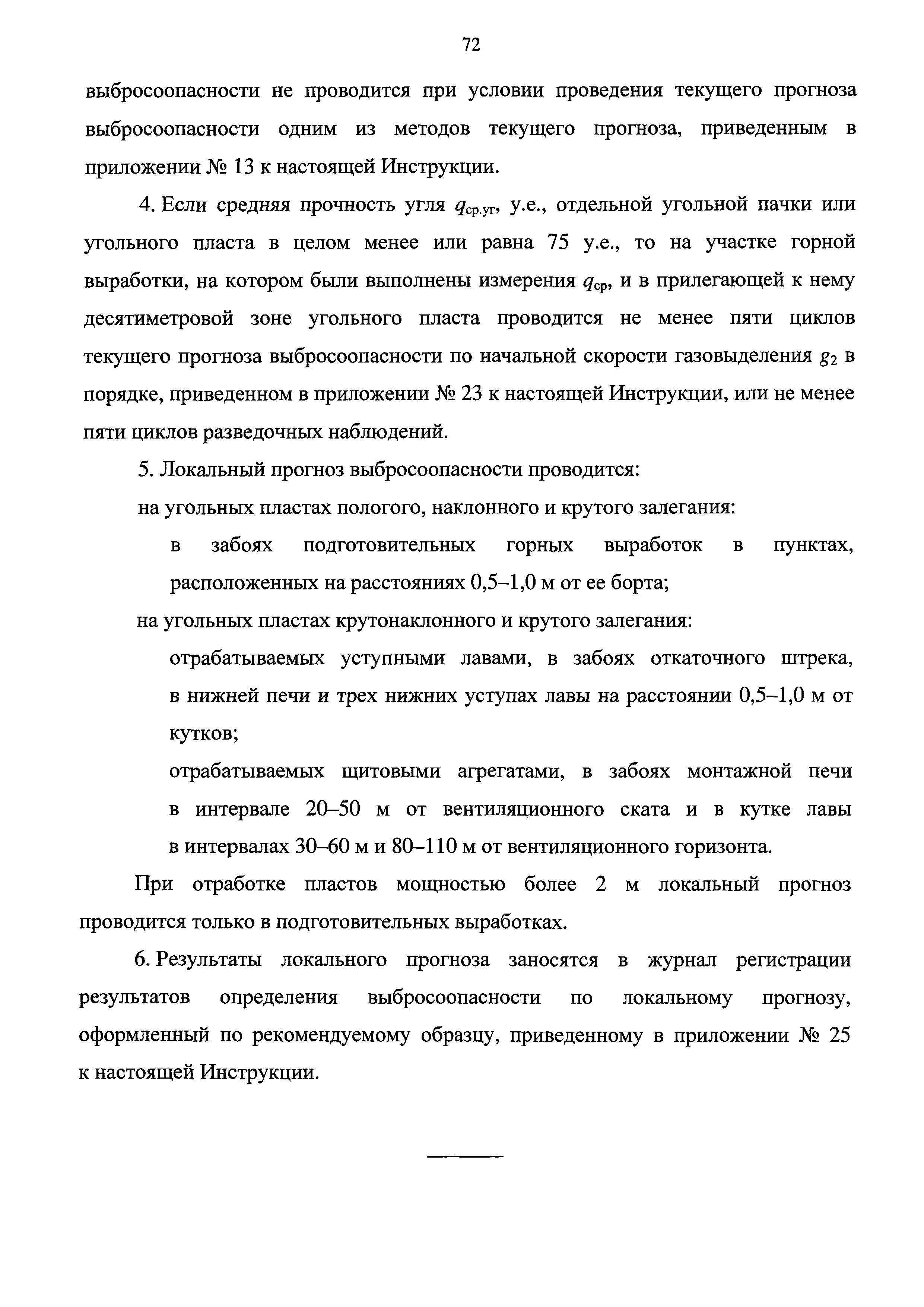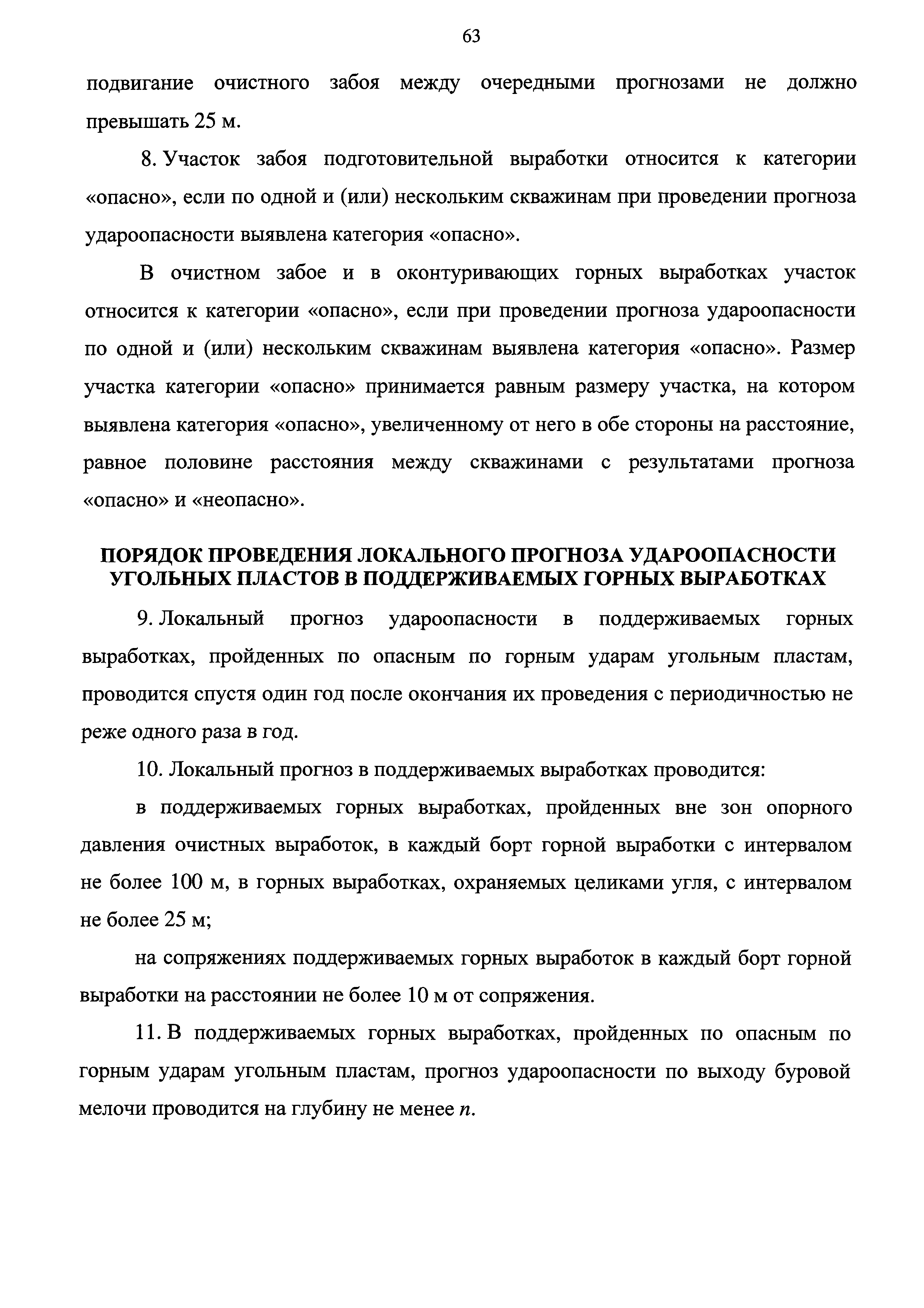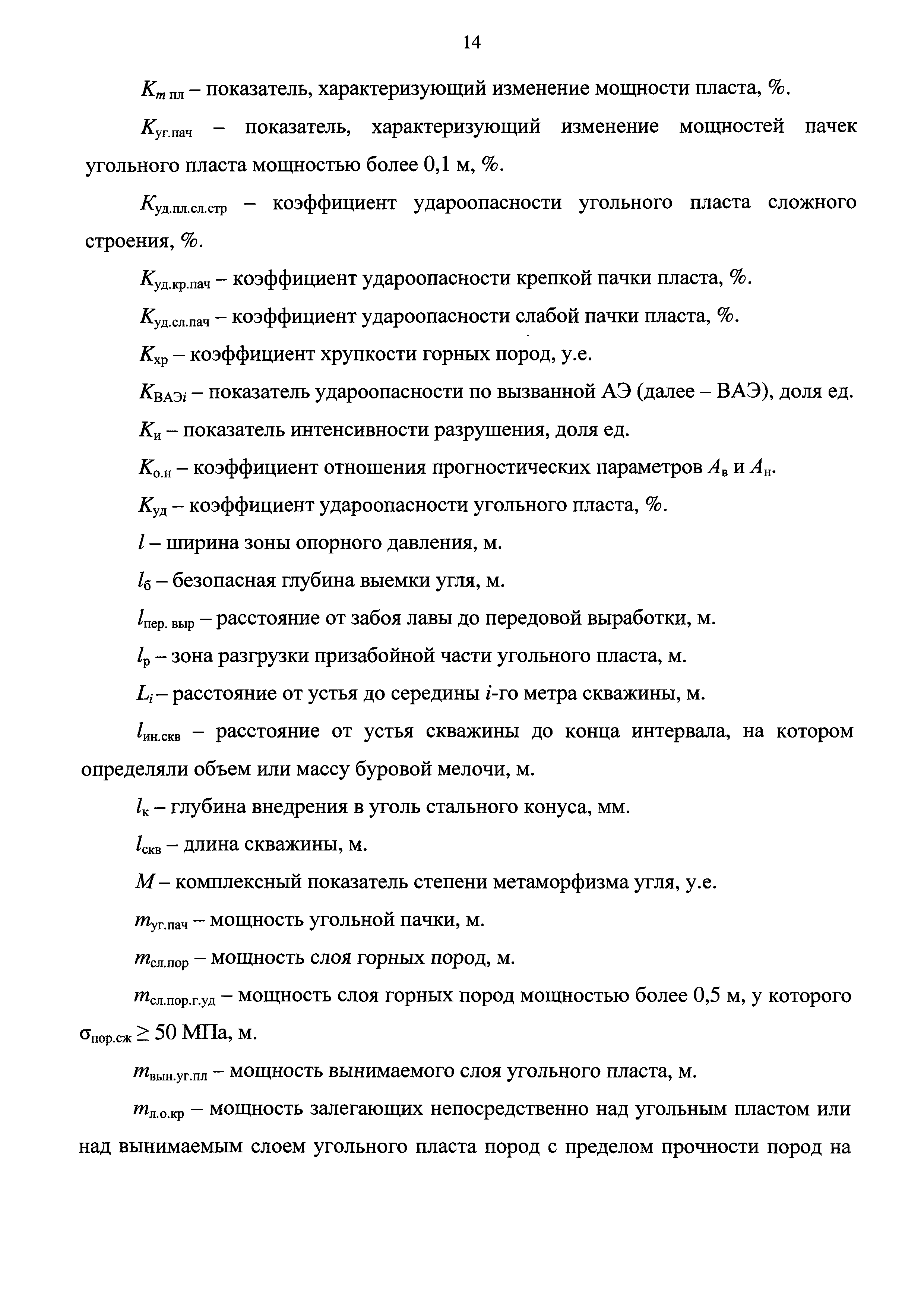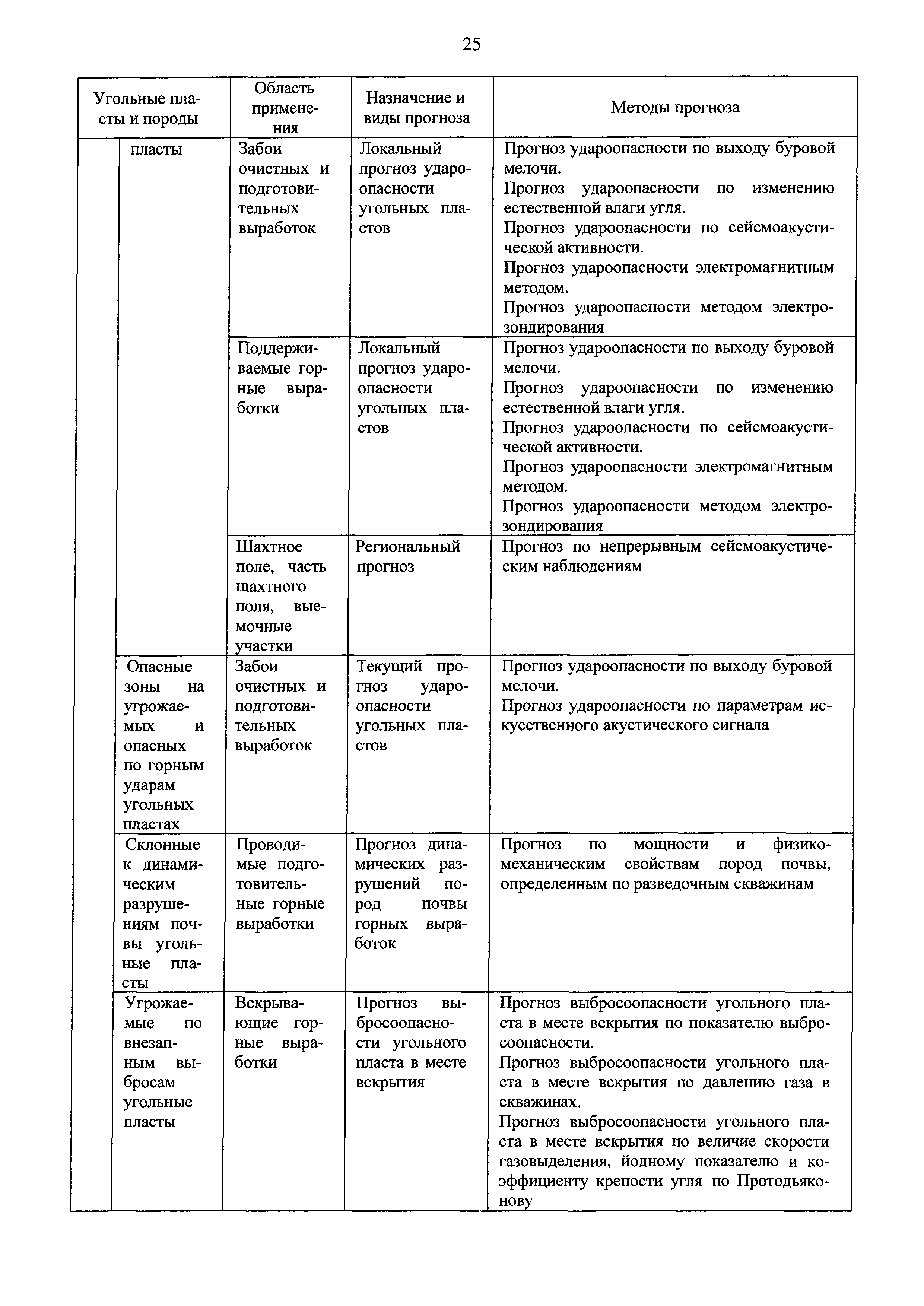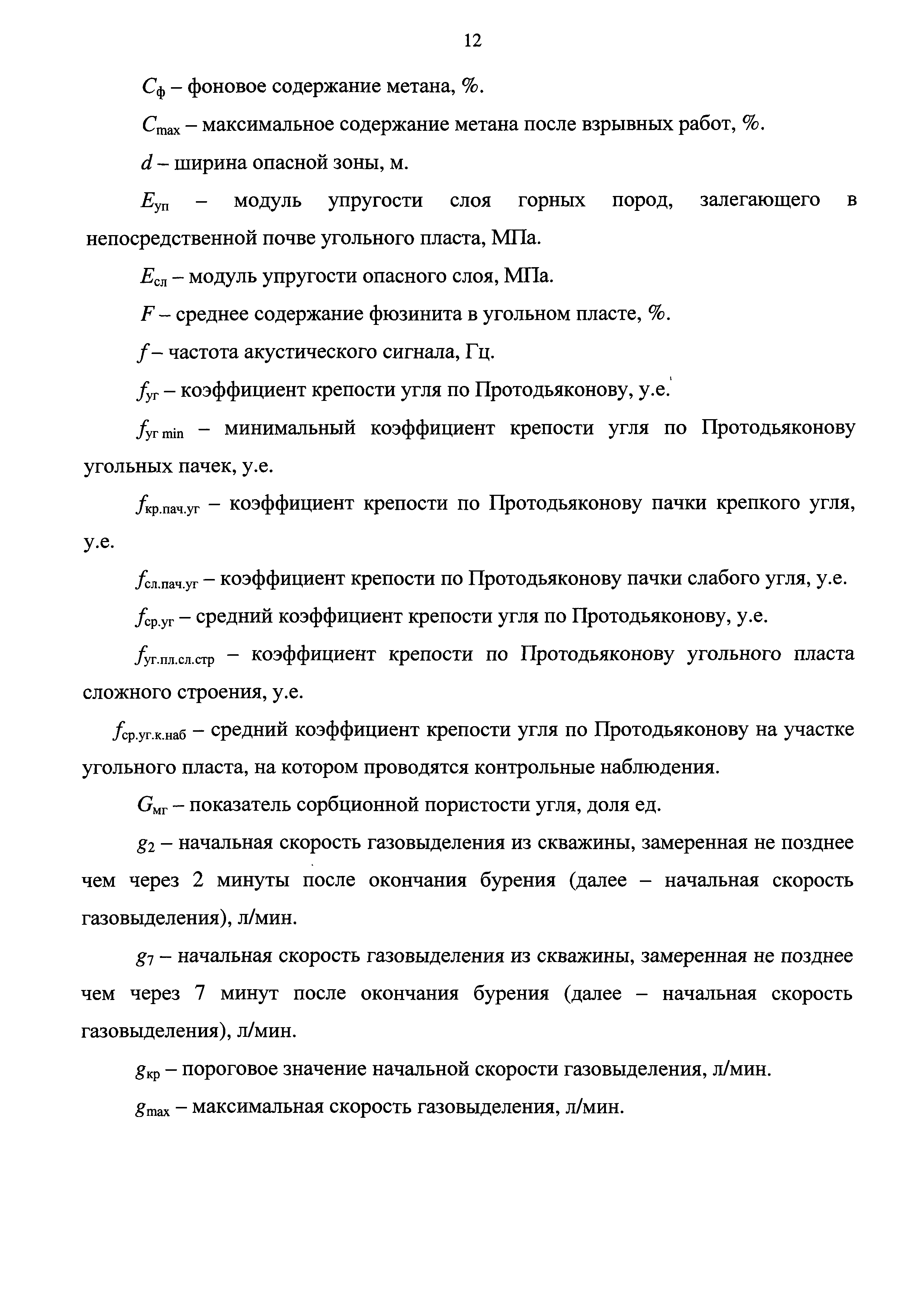 | Оглавление: | Приложение № 1. Условные обозначения Приложение № 2. Признаки динамических явлений и события, предшествующие динамическим явлениям Приложение № 3. Геодинамическое районирование участка недр Приложение № 4. Область применения, назначения, виды и методы прогноза динамических явлений в угольных шахтах Приложение № 5. Порядок проведения регионального прогноза по данным, полученным при ведении геолого-разведочных работ Приложение № 6. Порядок проведения регионального прогноза по непрерывным сейсмоакустическим наблюдениям Приложение № 7. Порядок проведения прогноза динамических явлений в месте вскрытия склонных к динамическим явления угольных пластов и склонных к динамическим явлениям горных пород Приложение № 8. Методы локального прогноза Приложение № 9. Порядок проведения локального прогноза удароопасности угольных пластов Приложение № 10. Методы текущего прогноза удароопасности угольных пластов Приложение № 11. Методы прогноза удароопасности горных пород Приложение № 12. Порядок проведения локального прогноза выбросоопасных угольных пластов Приложение № 13. Методы текущего прогноза выбросоопасности угольных пластов Приложение № 14. Порядок и методы прогноза выбросоопасности горных пород Приложение № 15. Методы и порядок проведения прогноза динамических разрушений пород почвы горных выработок Приложение № 16. Метод прогноза внезапных выдавливаний угля Приложение № 17. Метод прогноза динамических разрушений пород почвы с интенсивным газовыделением Приложение № 18. Порядок мониторинга массива горных пород Приложение № 19. Меры предотвращения динамических явлений Приложение № 20. Порядок и методы контроля эффективности мер по предотвращению динамических явлений Приложение № 21. Порядок определения выхода буровой мелочи Приложение № 22. Определение прочности и коэффициента крепости угля по Протодьяконову Приложение № 23. Порядок определения начальной скорости газовыделения Приложение № 24. Порядок проведения разведочных и контрольных наблюдений на склонных к внезапным выбросам угля и газа угольных пластах Приложение № 25. Акт определения выбросоопасности пласта в месте вскрытия угольного пласта |