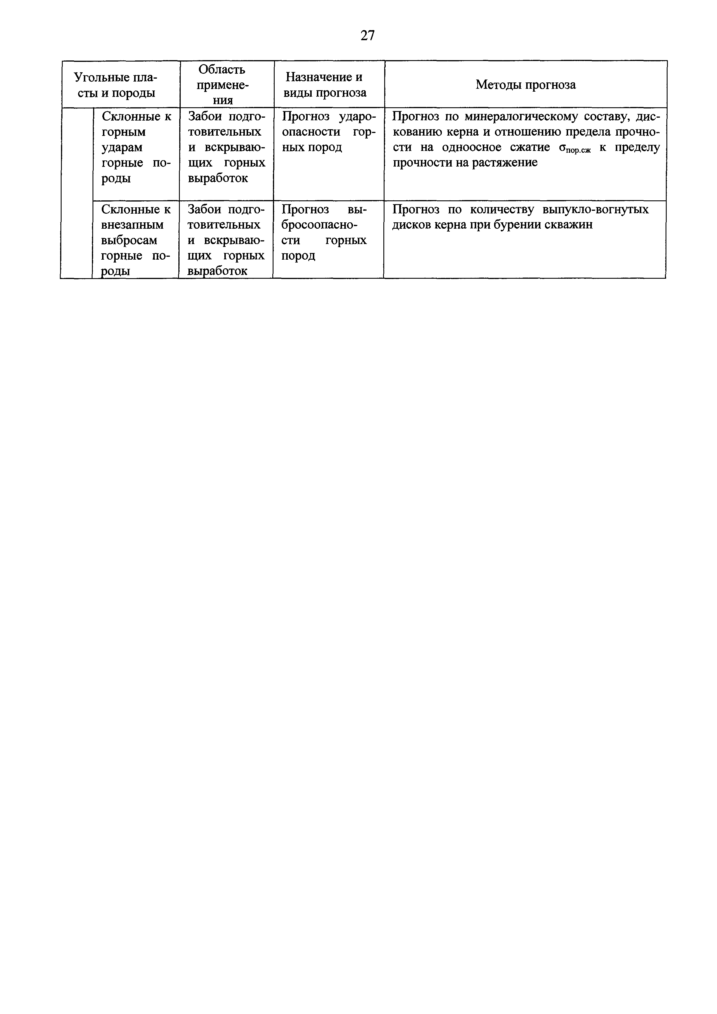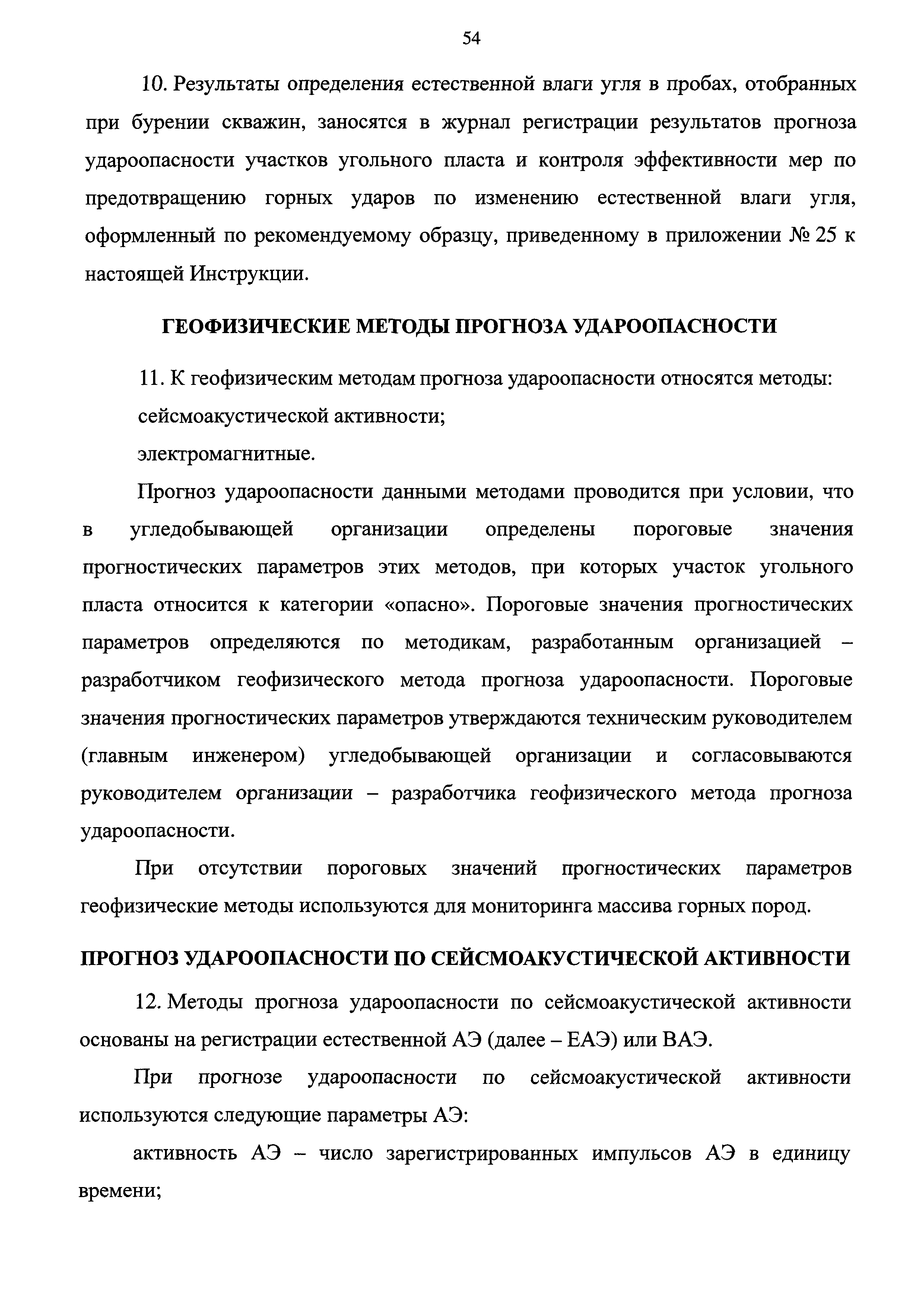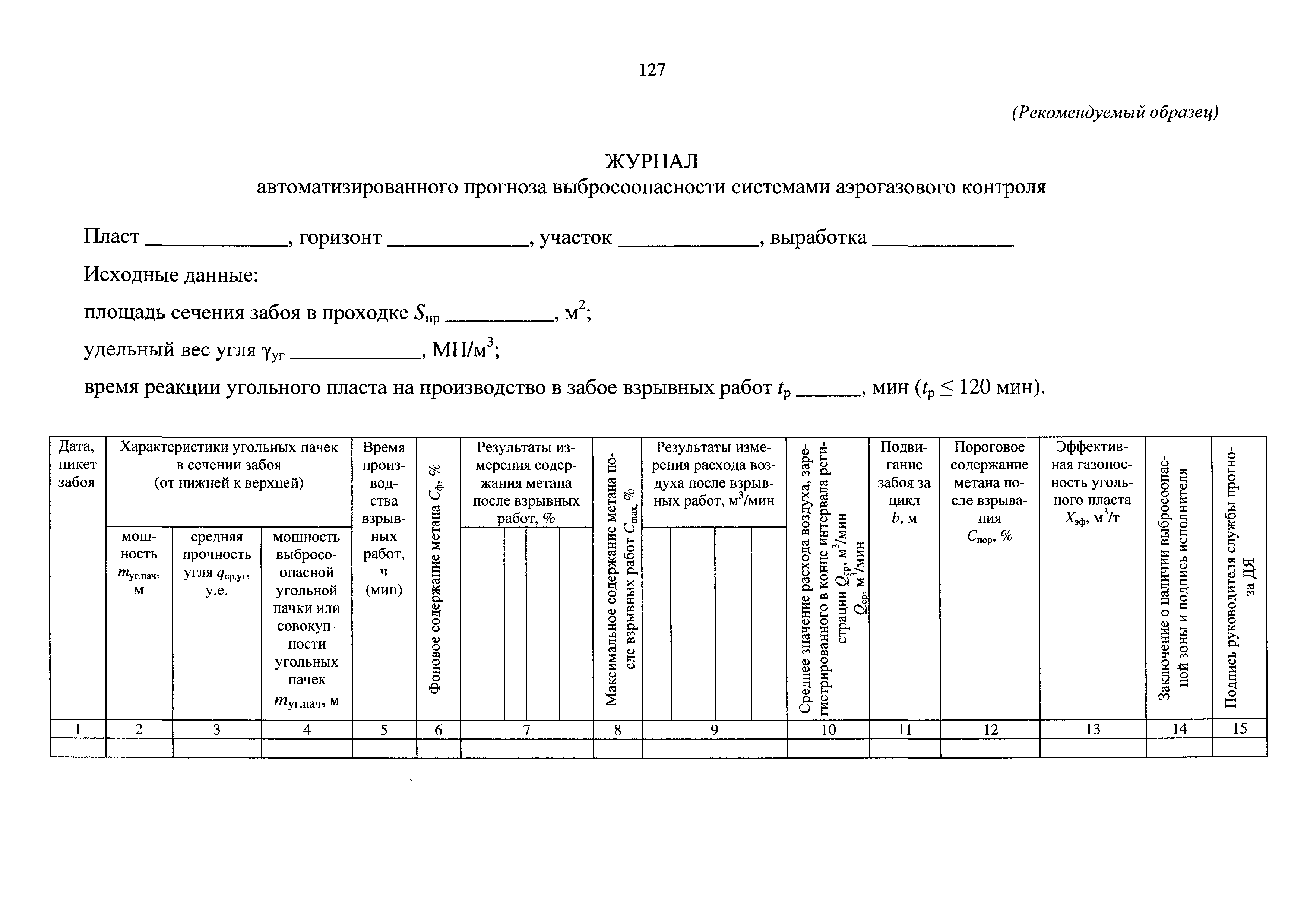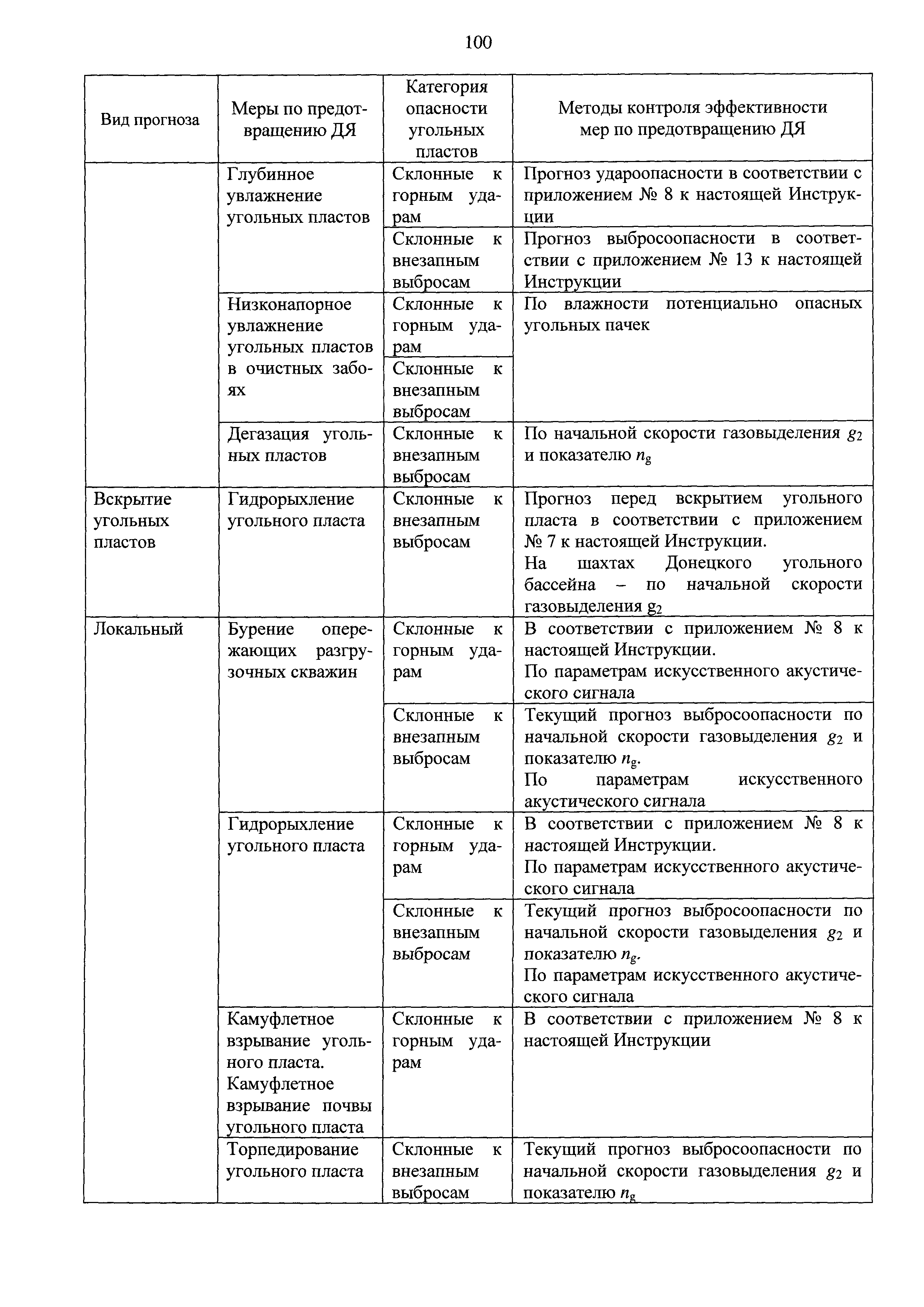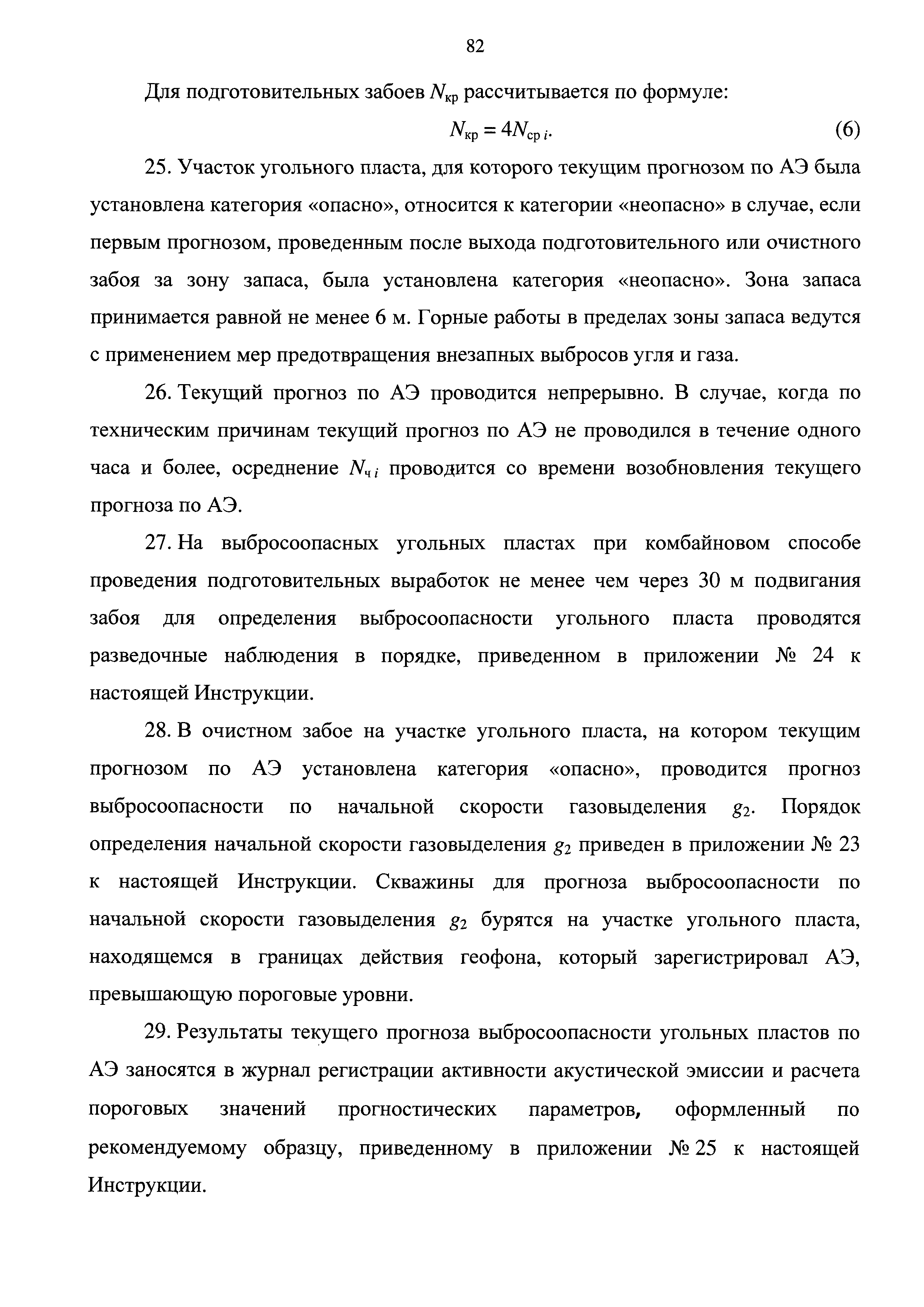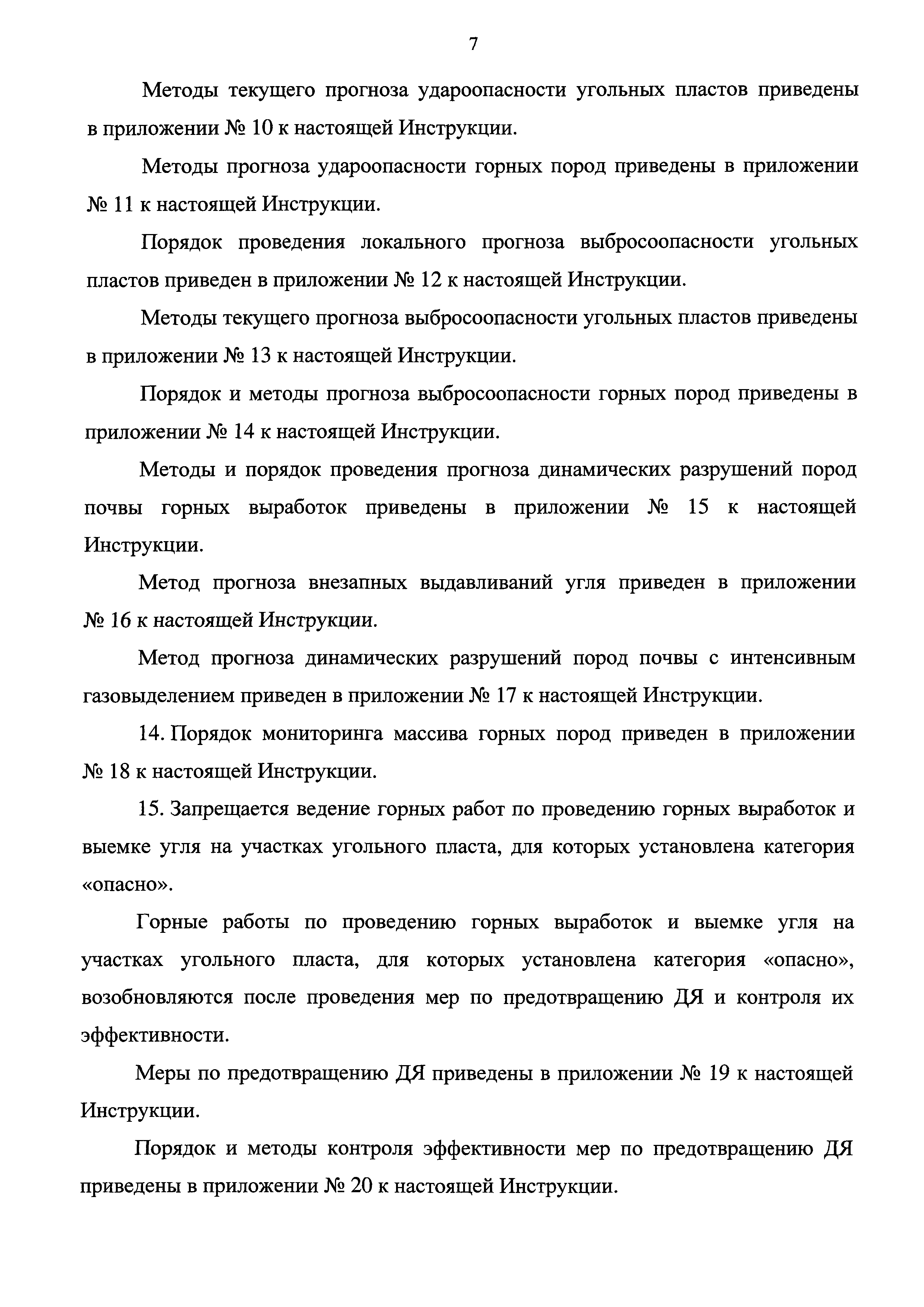 | Оглавление: | Приложение № 1. Условные обозначения Приложение № 2. Признаки динамических явлений и события, предшествующие динамическим явлениям Приложение № 3. Геодинамическое районирование участка недр Приложение № 4. Область применения, назначения, виды и методы прогноза динамических явлений в угольных шахтах Приложение № 5. Порядок проведения регионального прогноза по данным, полученным при ведении геолого-разведочных работ Приложение № 6. Порядок проведения регионального прогноза по непрерывным сейсмоакустическим наблюдениям Приложение № 7. Порядок проведения прогноза динамических явлений в месте вскрытия склонных к динамическим явления угольных пластов и склонных к динамическим явлениям горных пород Приложение № 8. Методы локального прогноза Приложение № 9. Порядок проведения локального прогноза удароопасности угольных пластов Приложение № 10. Методы текущего прогноза удароопасности угольных пластов Приложение № 11. Методы прогноза удароопасности горных пород Приложение № 12. Порядок проведения локального прогноза выбросоопасных угольных пластов Приложение № 13. Методы текущего прогноза выбросоопасности угольных пластов Приложение № 14. Порядок и методы прогноза выбросоопасности горных пород Приложение № 15. Методы и порядок проведения прогноза динамических разрушений пород почвы горных выработок Приложение № 16. Метод прогноза внезапных выдавливаний угля Приложение № 17. Метод прогноза динамических разрушений пород почвы с интенсивным газовыделением Приложение № 18. Порядок мониторинга массива горных пород Приложение № 19. Меры предотвращения динамических явлений Приложение № 20. Порядок и методы контроля эффективности мер по предотвращению динамических явлений Приложение № 21. Порядок определения выхода буровой мелочи Приложение № 22. Определение прочности и коэффициента крепости угля по Протодьяконову Приложение № 23. Порядок определения начальной скорости газовыделения Приложение № 24. Порядок проведения разведочных и контрольных наблюдений на склонных к внезапным выбросам угля и газа угольных пластах Приложение № 25. Акт определения выбросоопасности пласта в месте вскрытия угольного пласта |